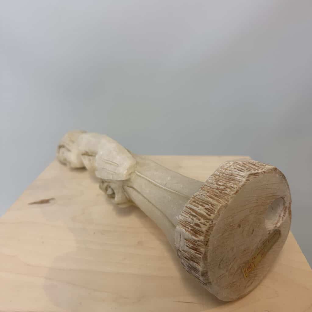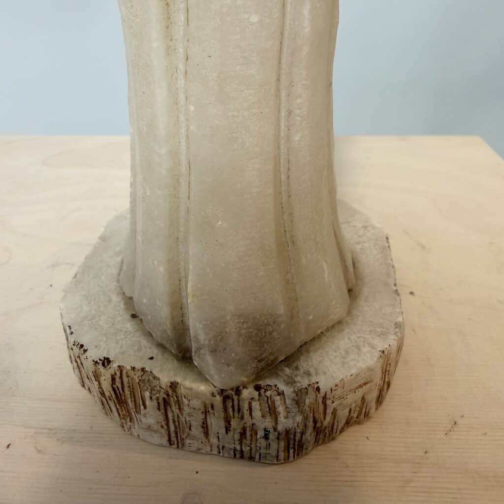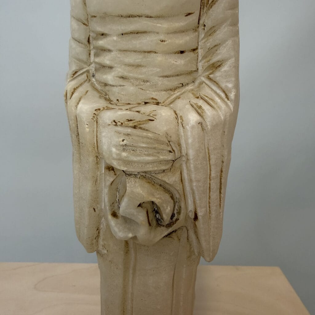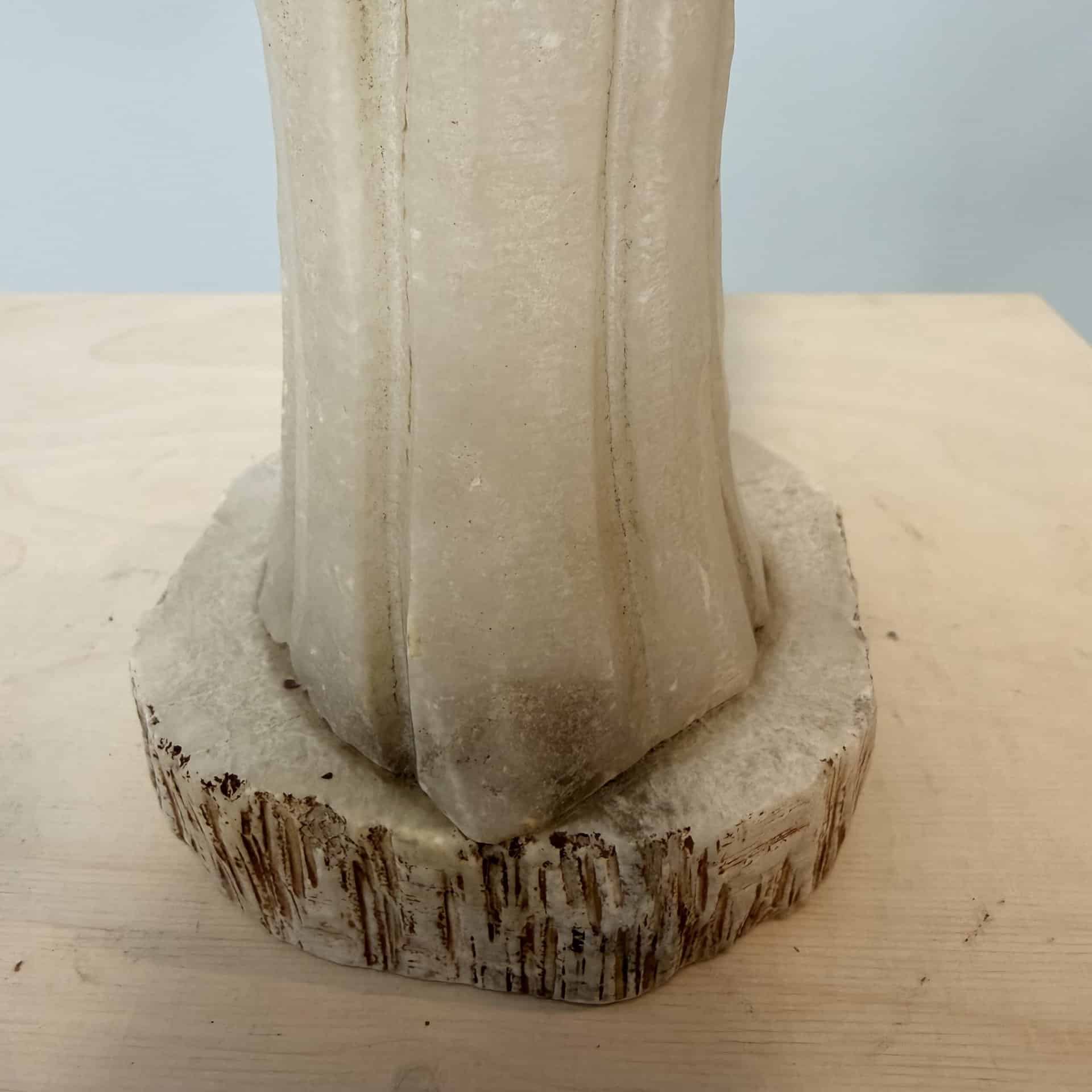 This statue is made of Spanish alabaster, a soft stone often used for decorative objects and sculptures