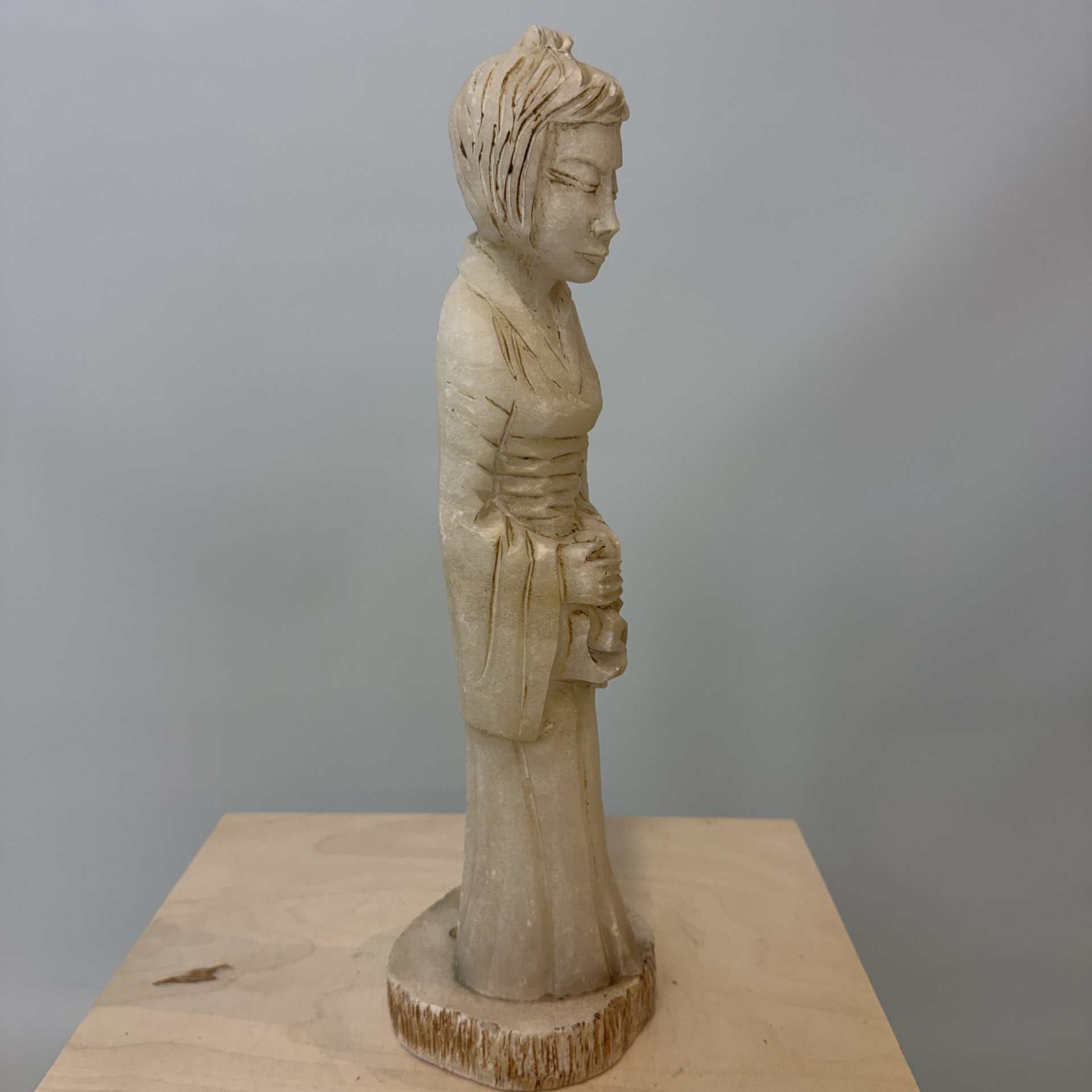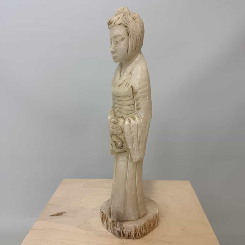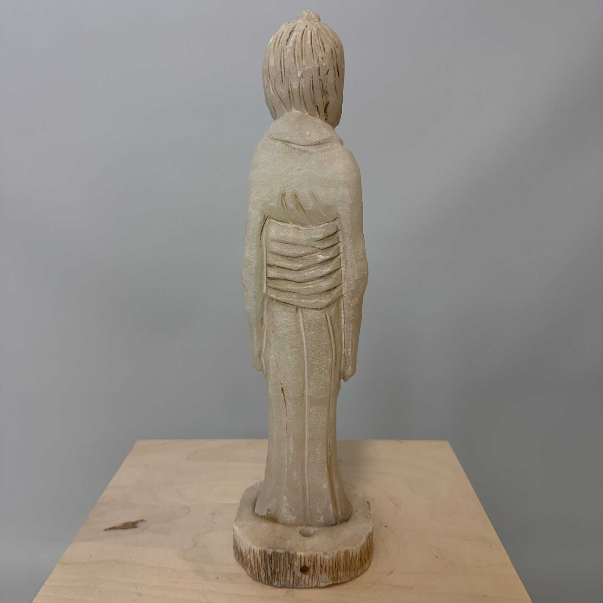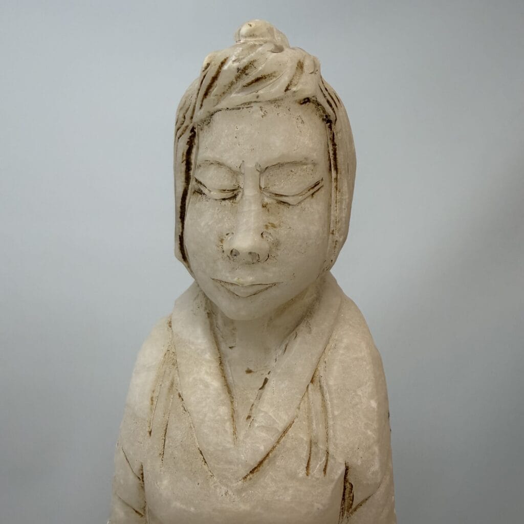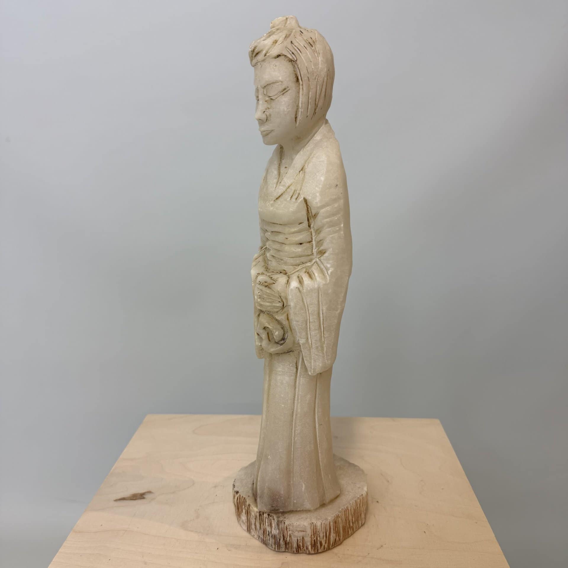 This statue is made of Spanish alabaster, a soft stone often used for decorative objects and sculptures