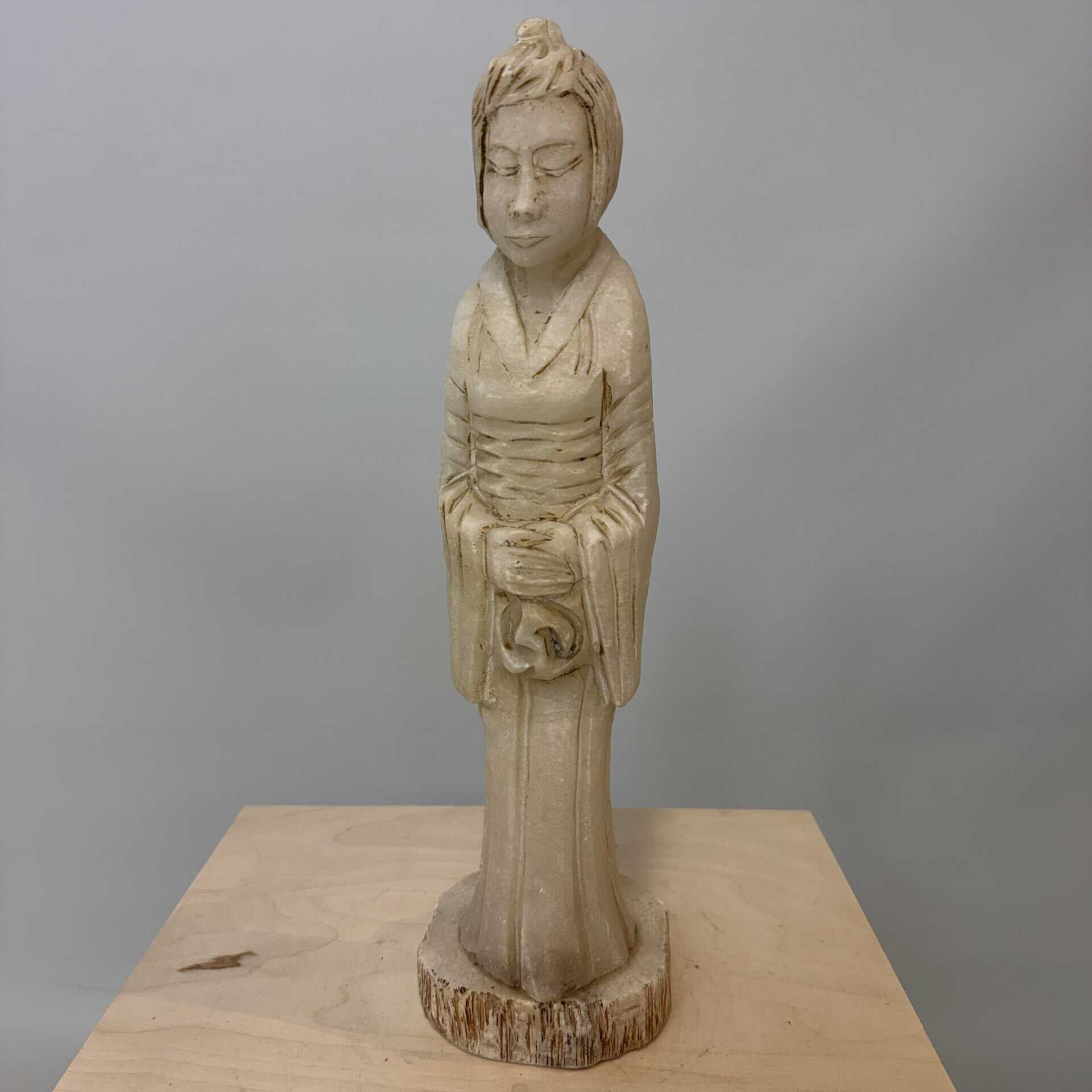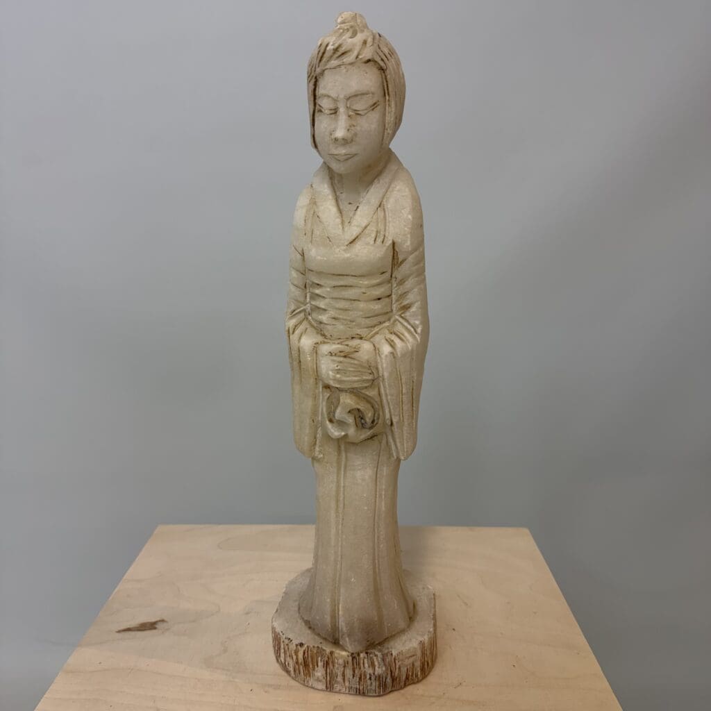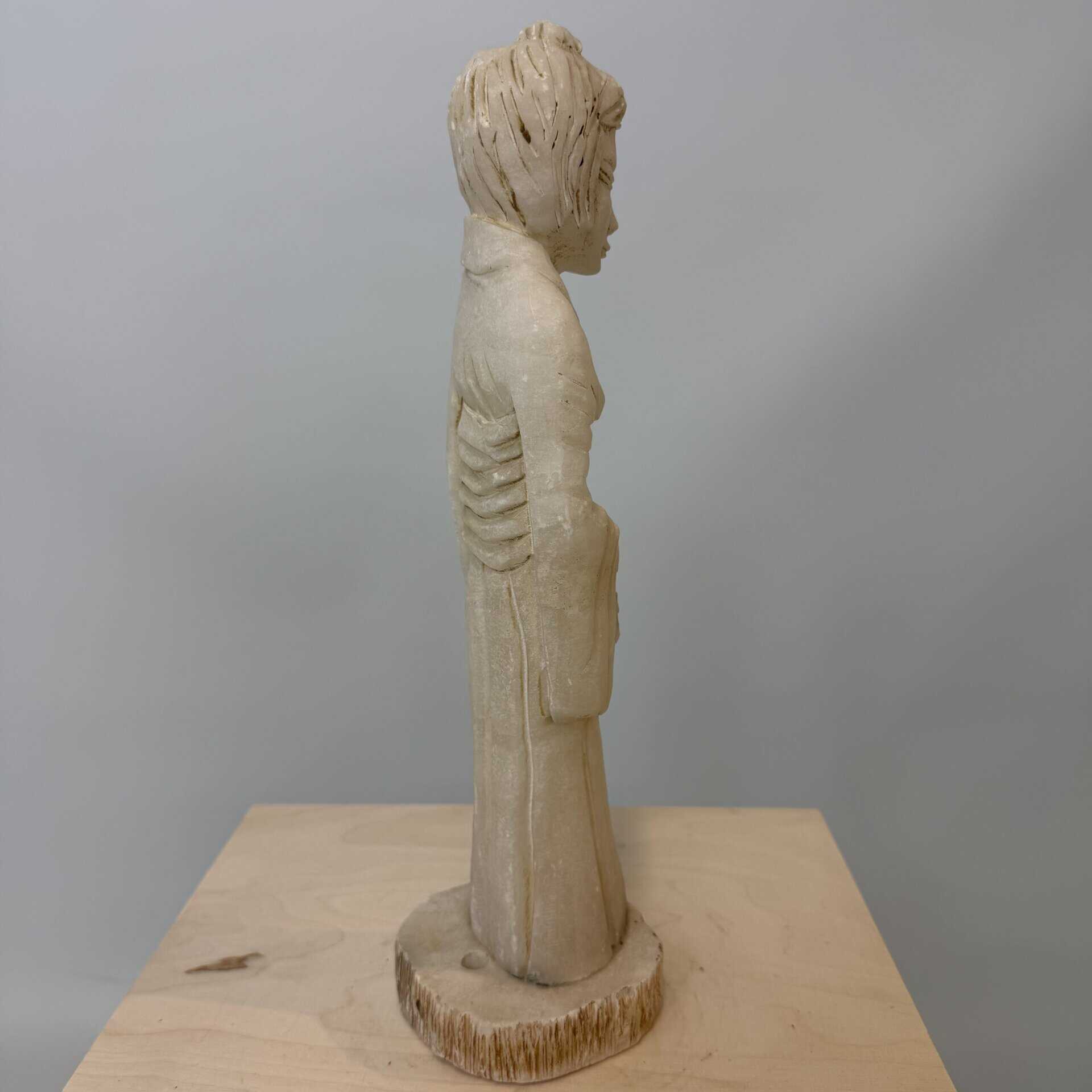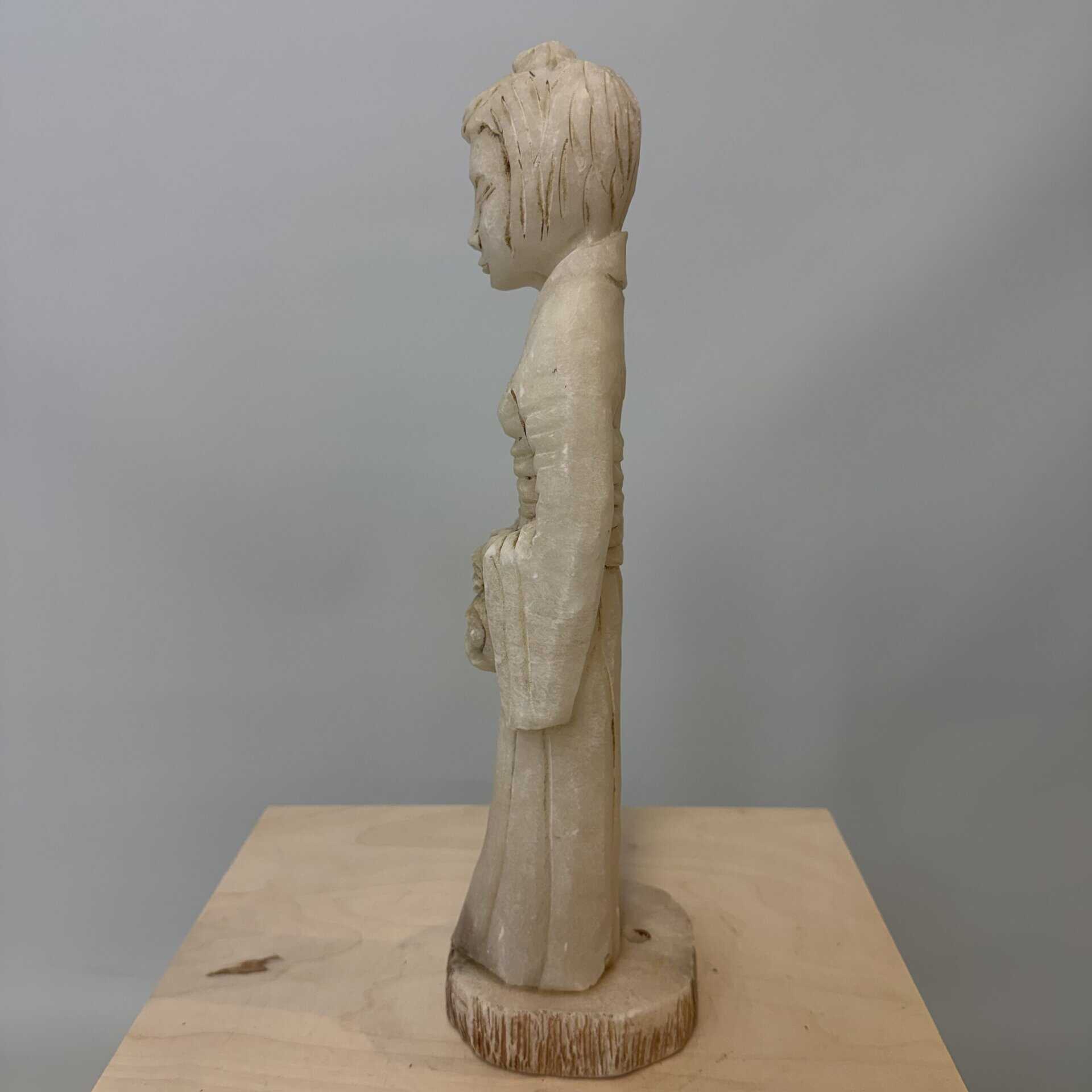 This statue is made of Spanish alabaster, a soft stone often used for decorative objects and sculptures