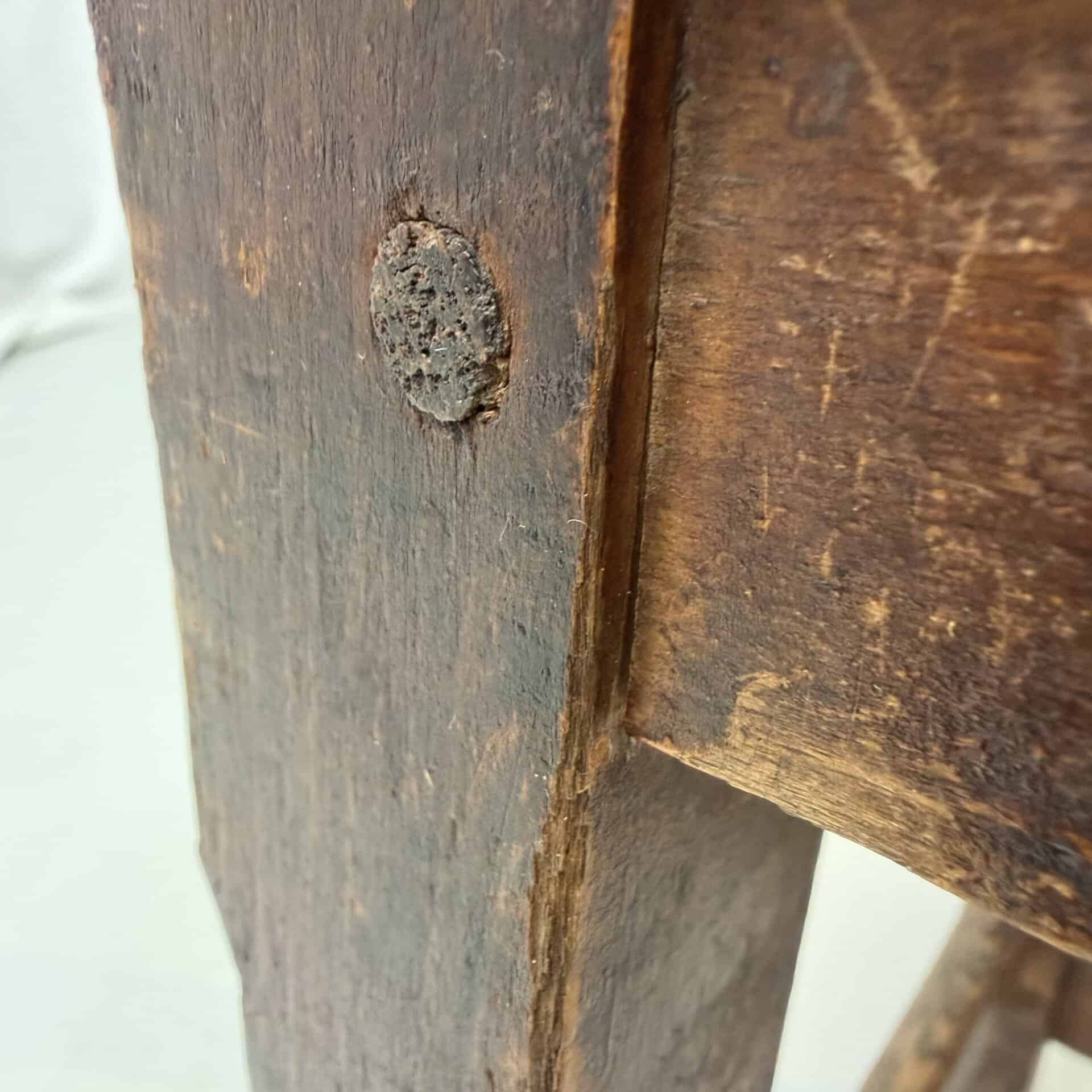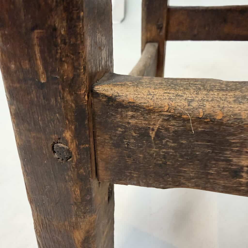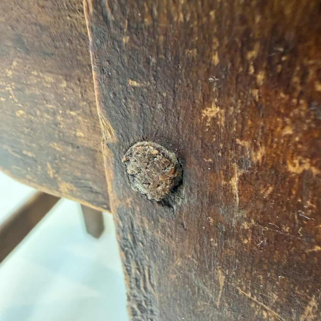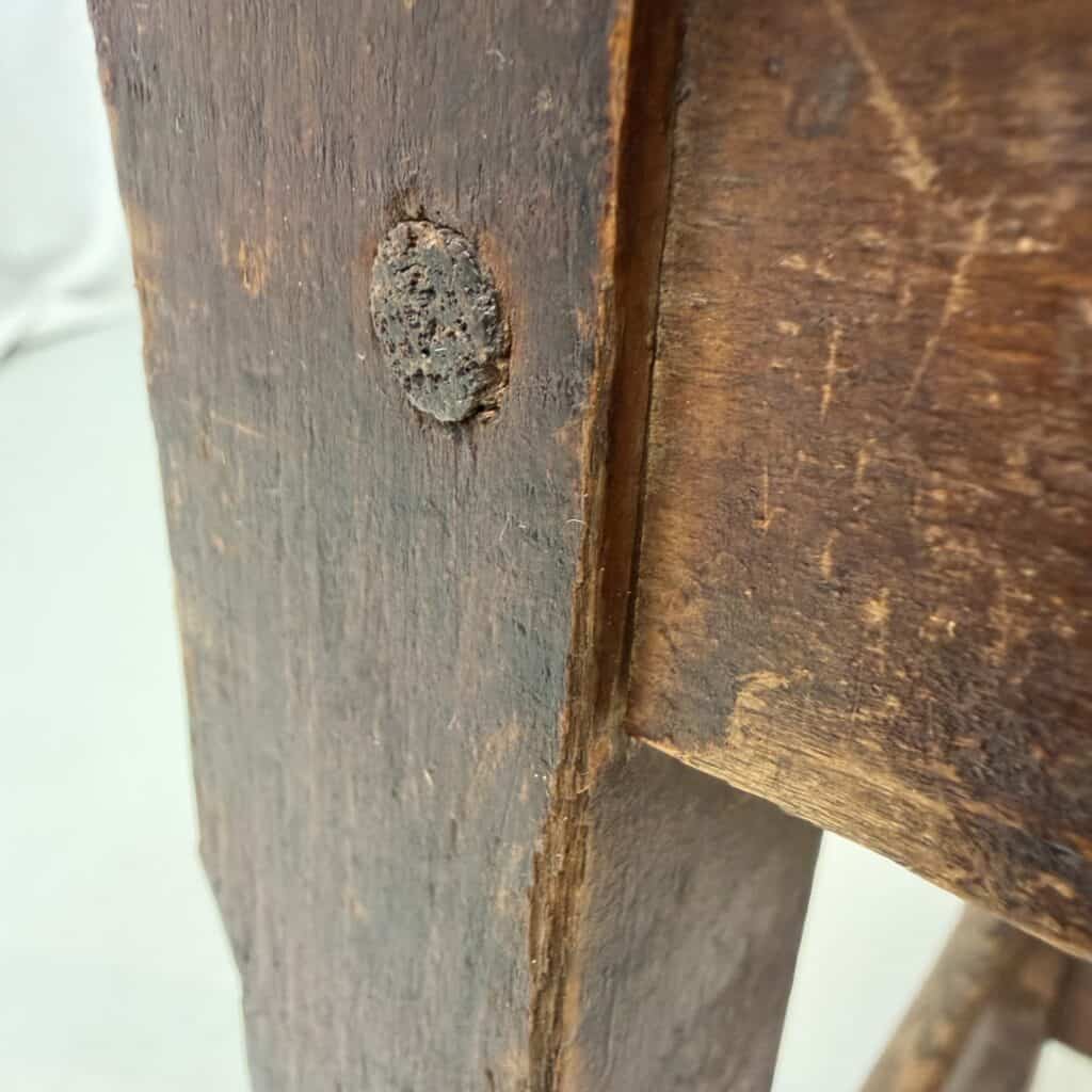 Victorian period craftsmanship, known for their durable pegged mortise-and-tenon construction. The wooden joints of the seat have decayed and were replaced by screws.