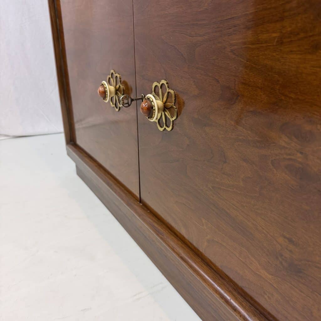 Mahogany sideboard with clean lines and geometric shapes