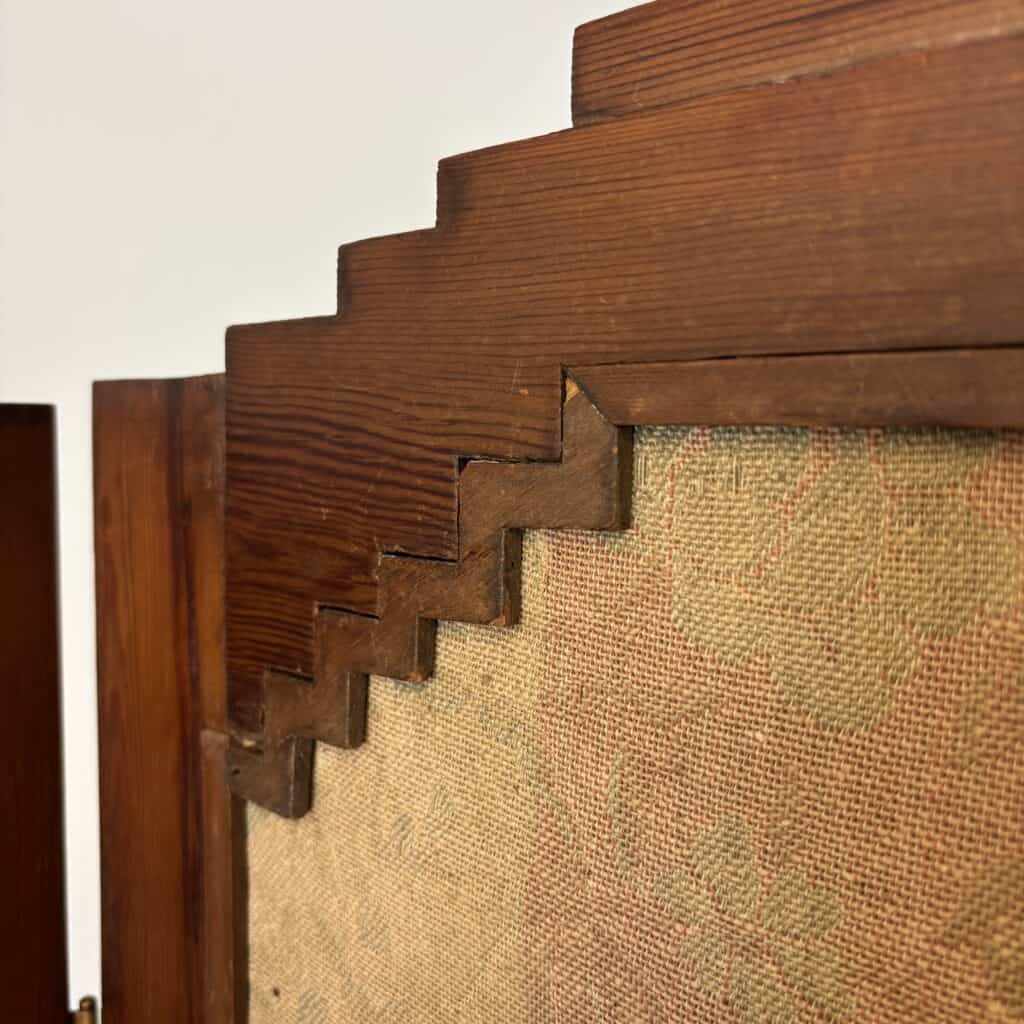 Folding screen in solid wood with stepped geometric motif along the top edge