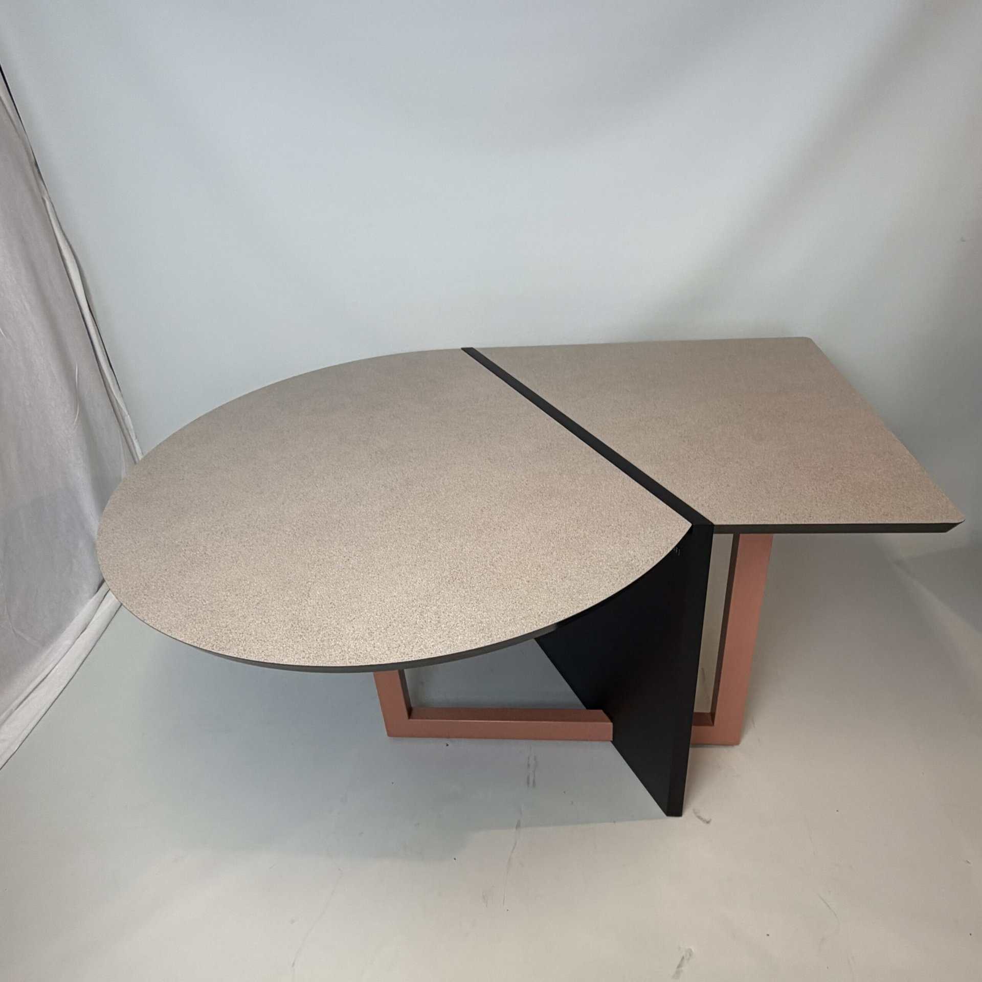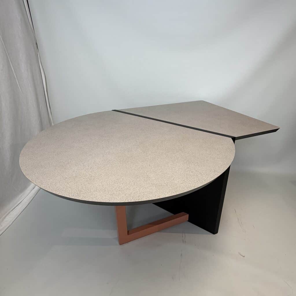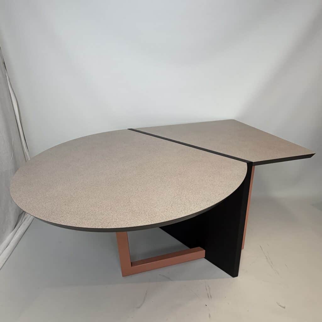 This playful piece of furniture combines a desk and a meeting table.