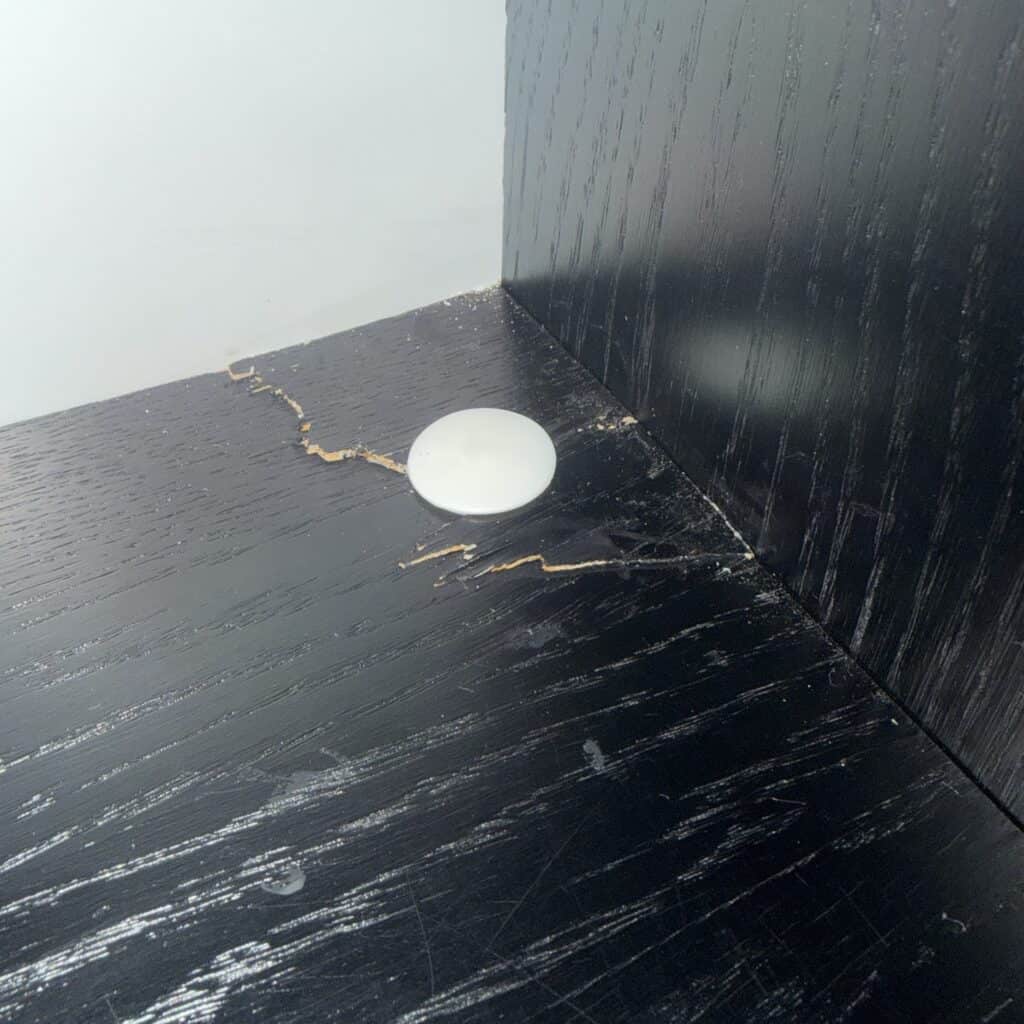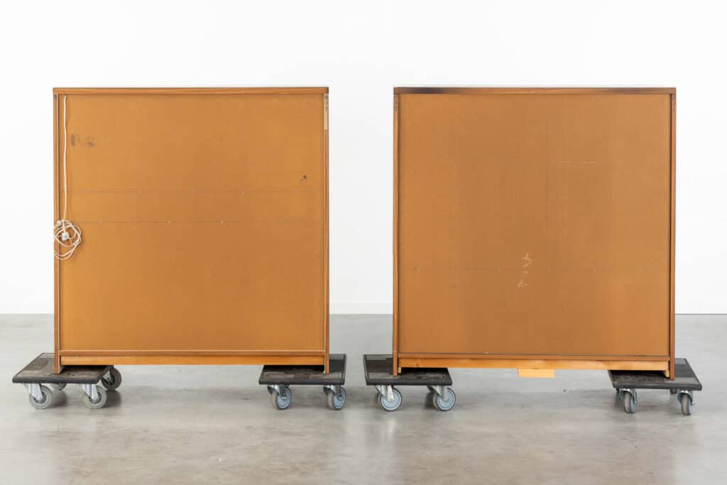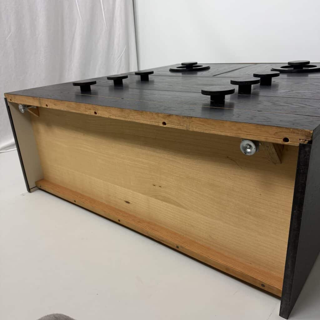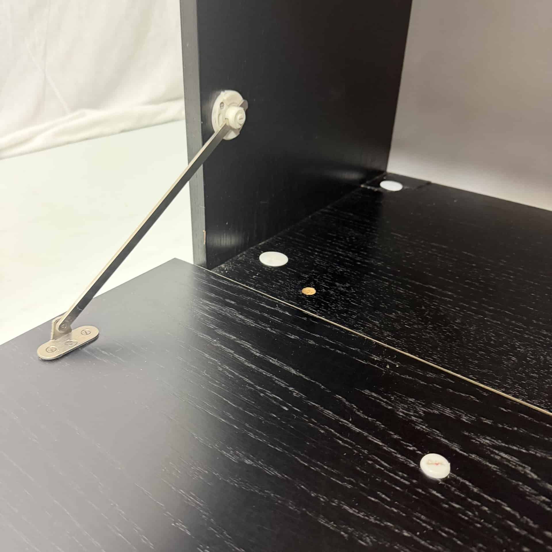 The inside corners on the back of the dropdown leaf cabinet show little cracks (see close-up pictures), otherwhise only minimal wear consistent with age and use