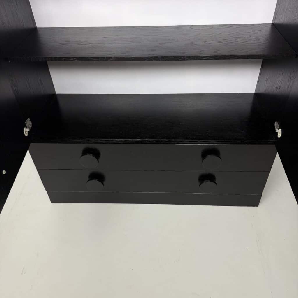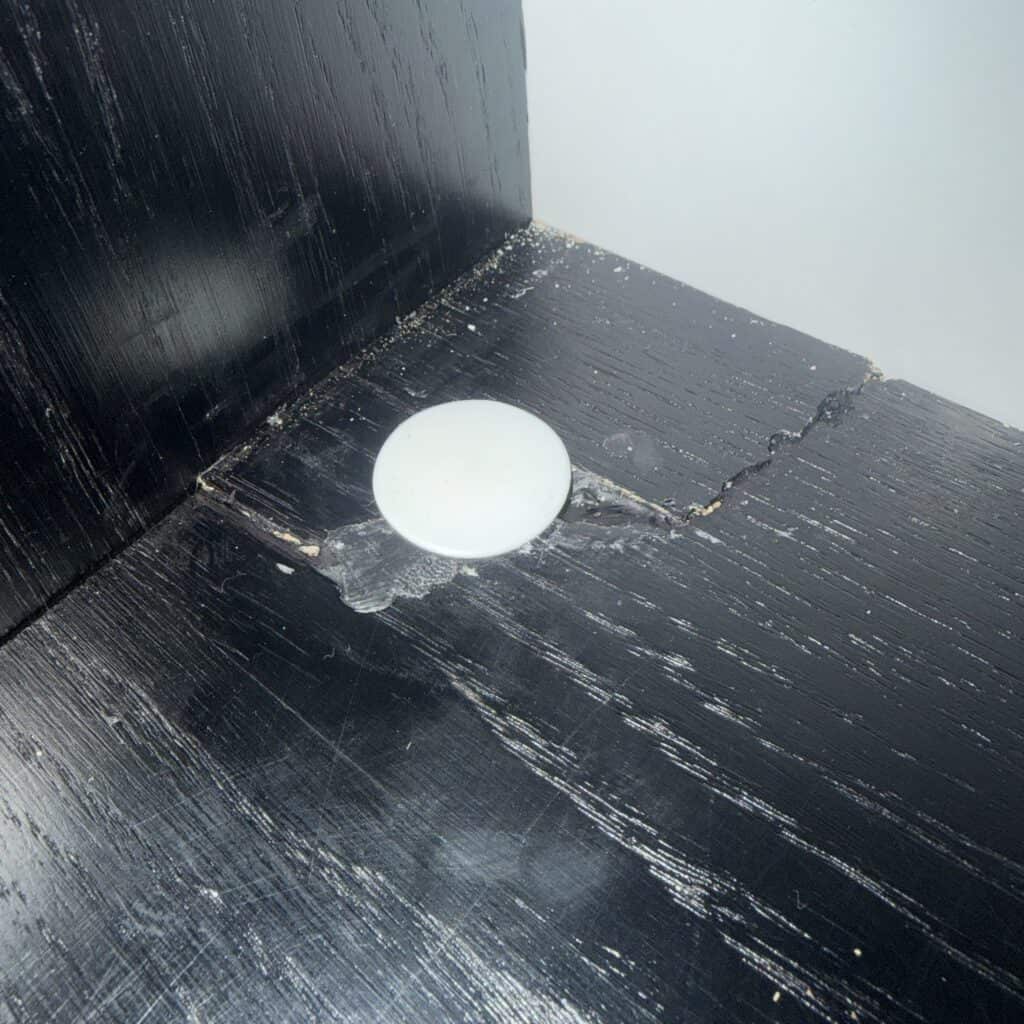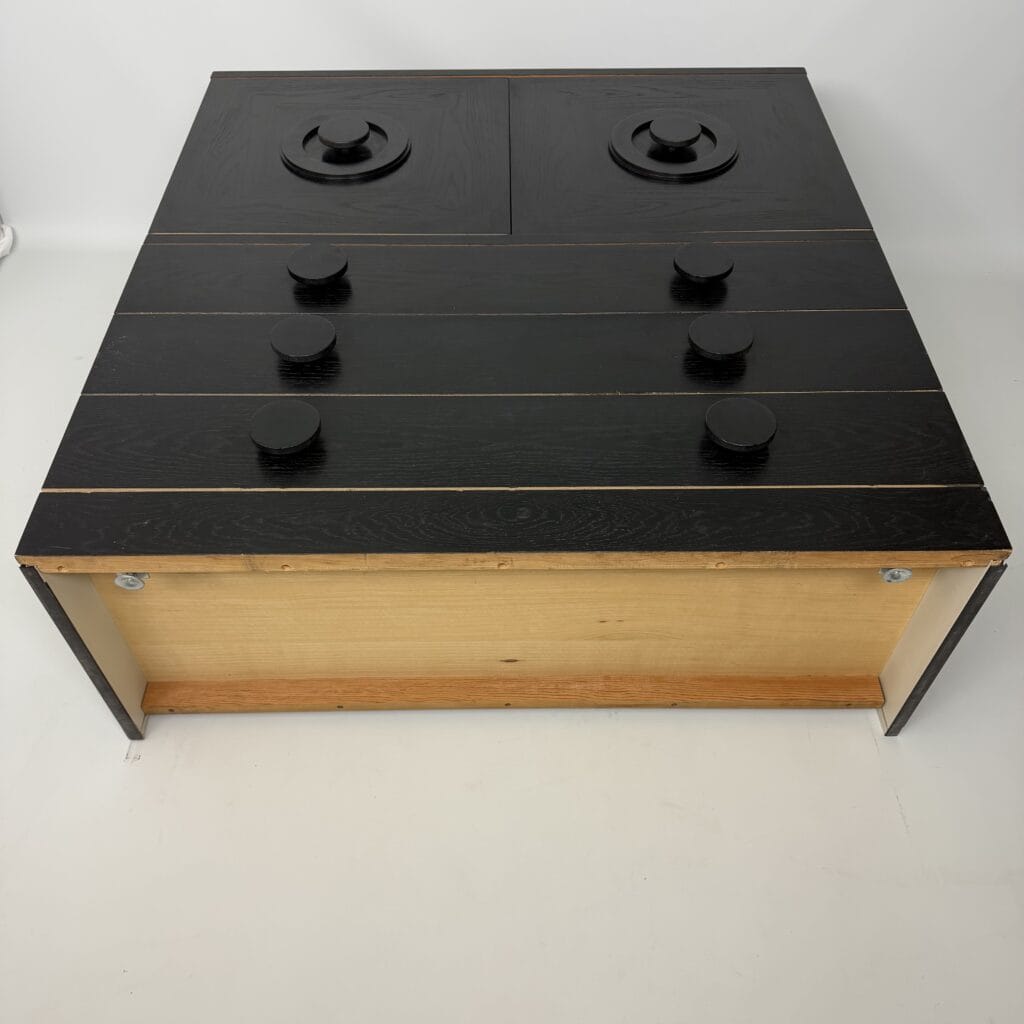 The inside corners on the back of the dropdown leaf cabinet show little cracks (see close-up pictures), otherwhise only minimal wear consistent with age and use