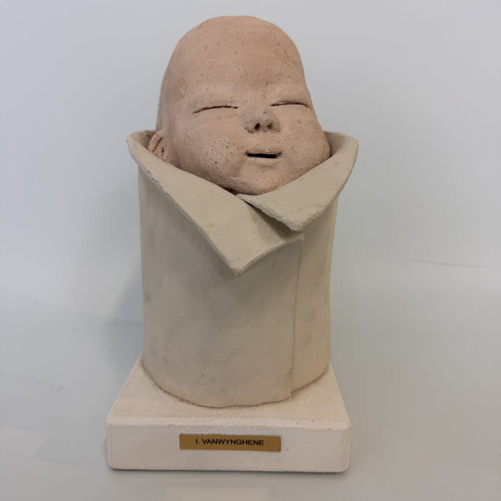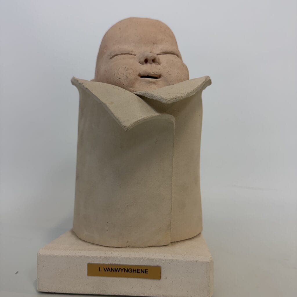 Isabelle Vanwynghene is a Belgian artist who creates sculptures from ceramic and terracotta, with the human figure at the centre of her work. Her work is characterised by a gentle, emotional depiction of human figures, often babies or portraits.