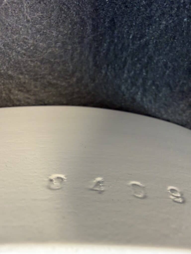 Attribution marks and year designation under the seat