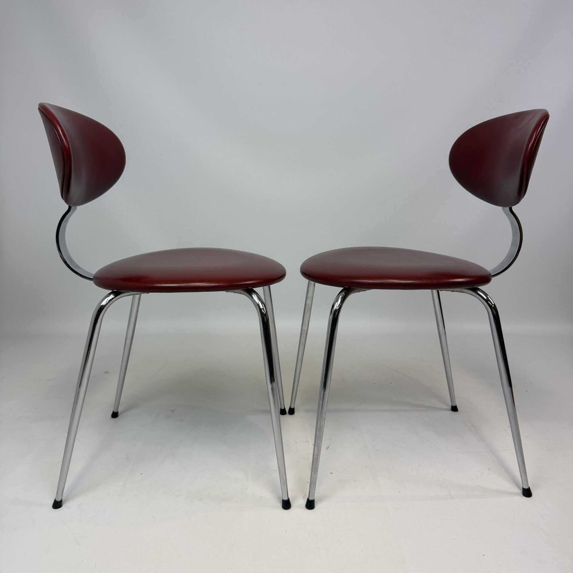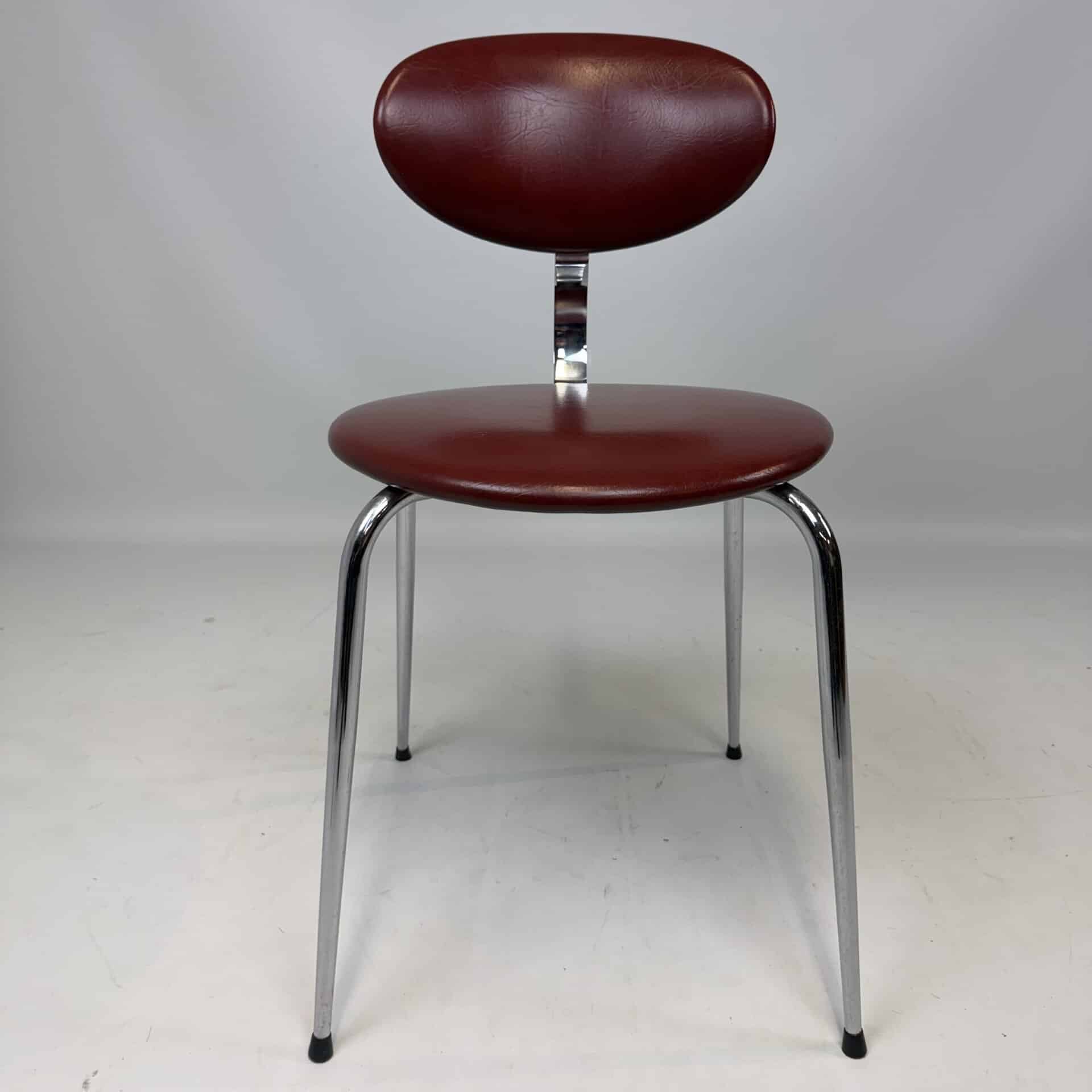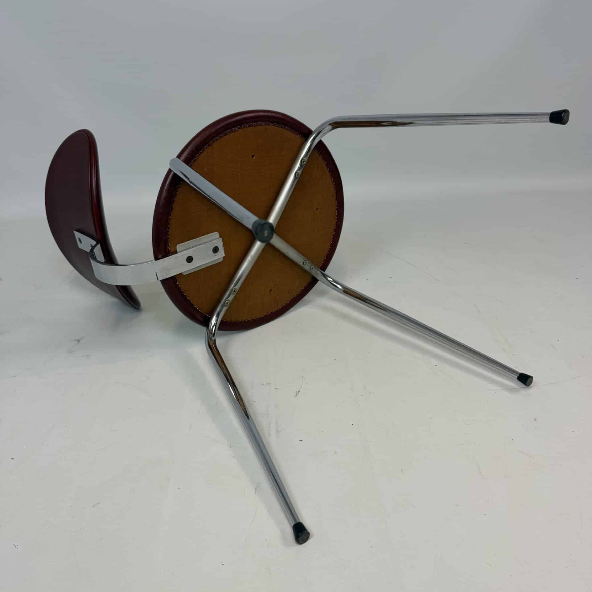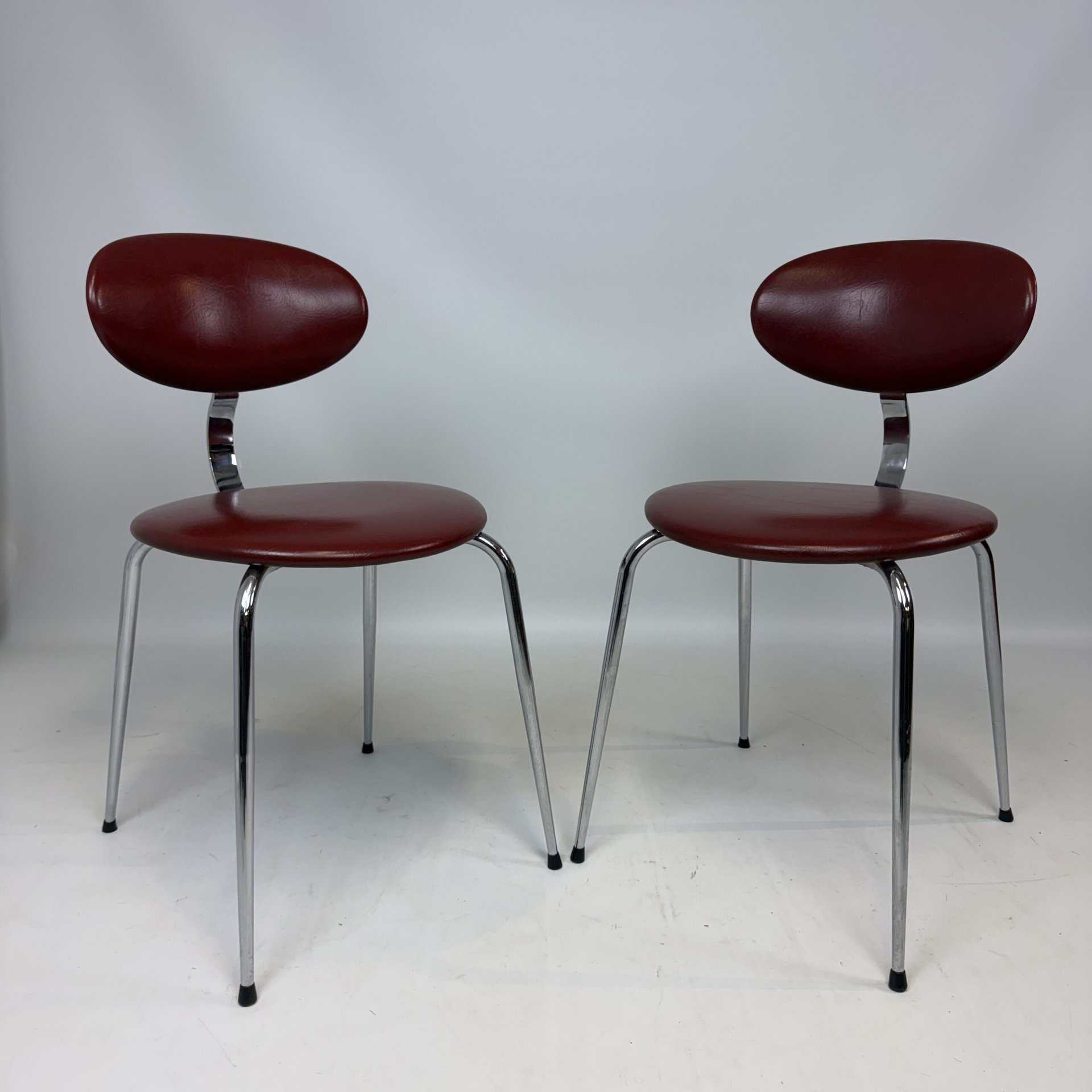 4 vintage chairs with chrome-plated legs and burgundy skai seat and back