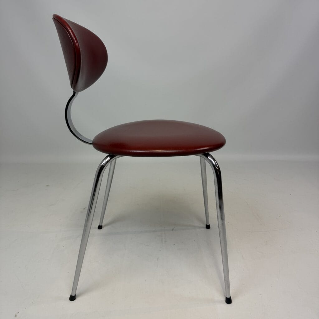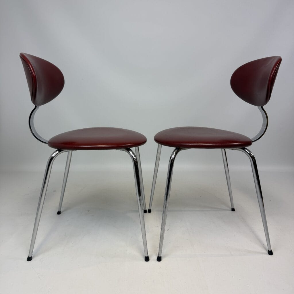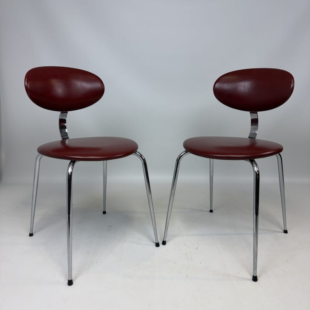 Verelst was known for his attention to simplicity and geometric clarity, giving his designs a timeless quality that feels both modern and nostalgic. These chairs clearly demonstrate this, as the chrome forms a sleek interplay of lines and the soft shapes of the seat provide an elegant counterbalance.
