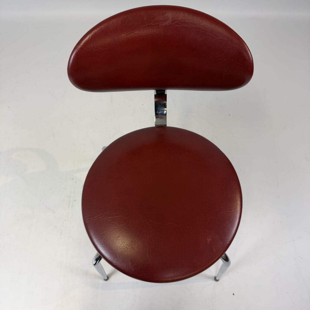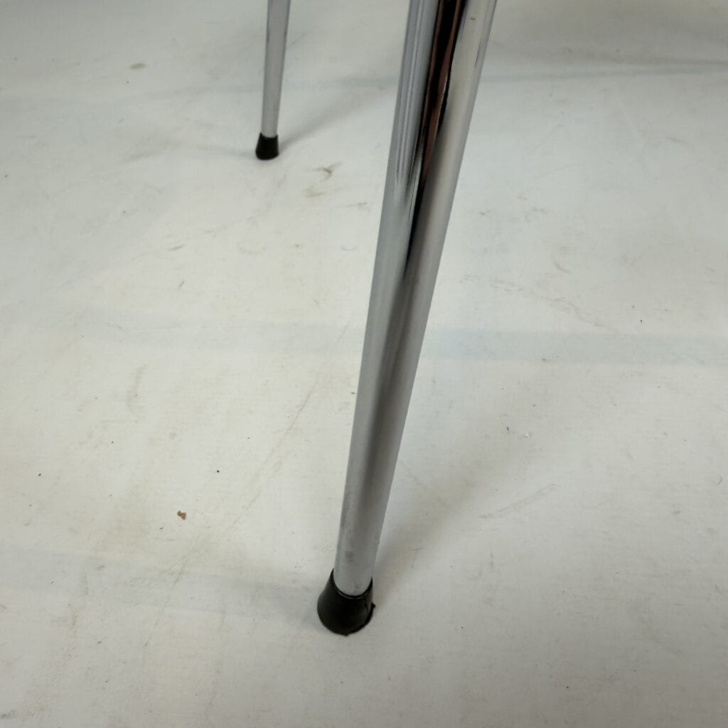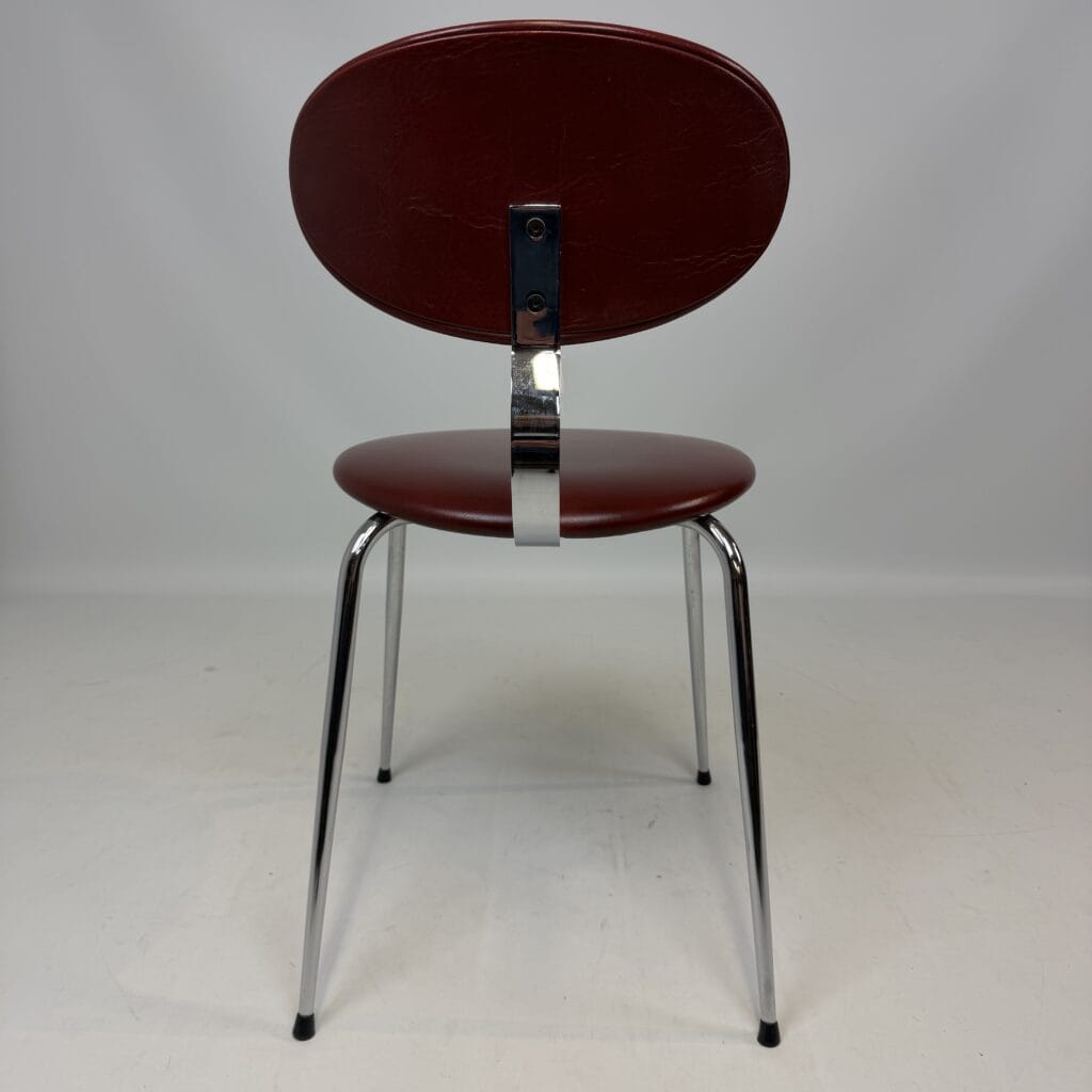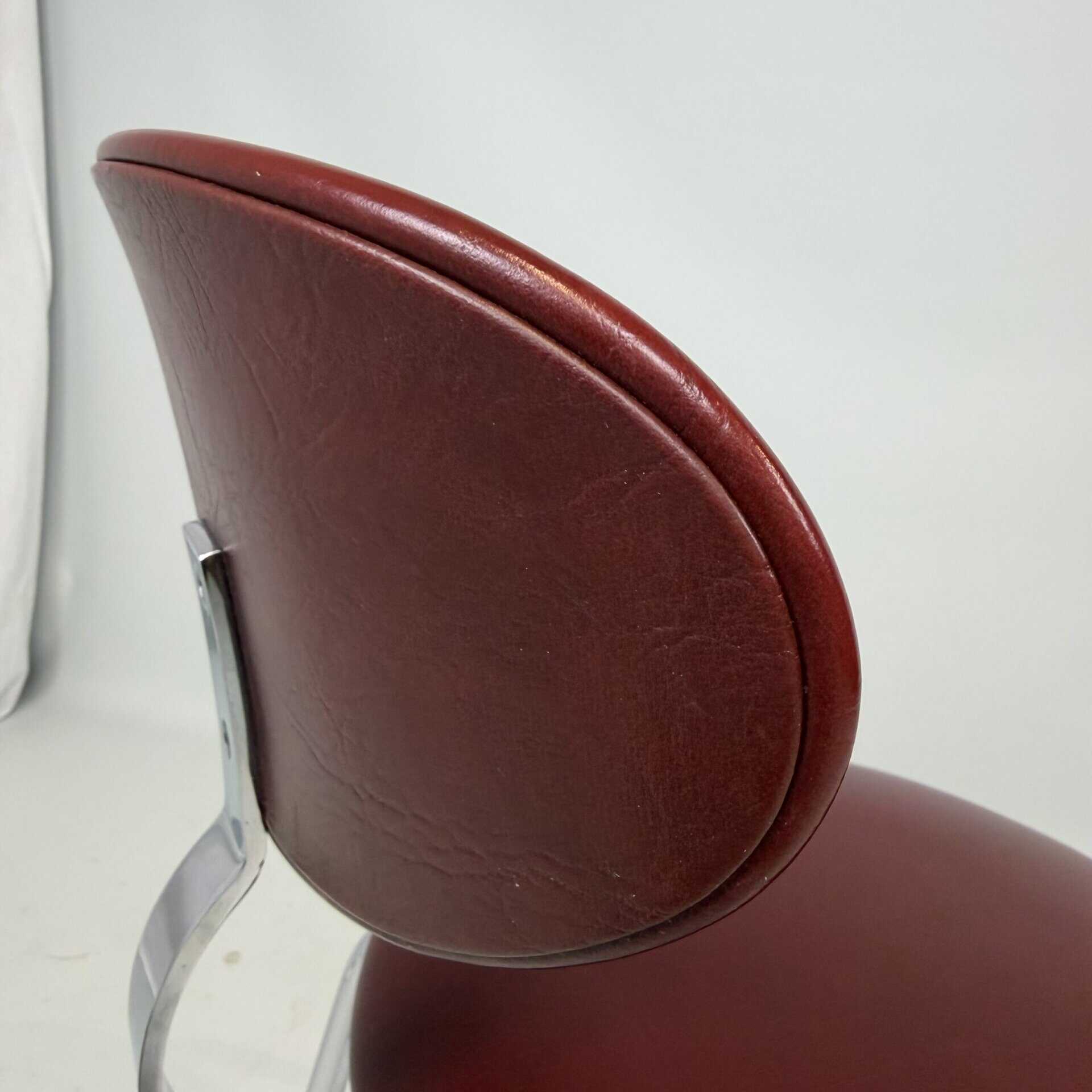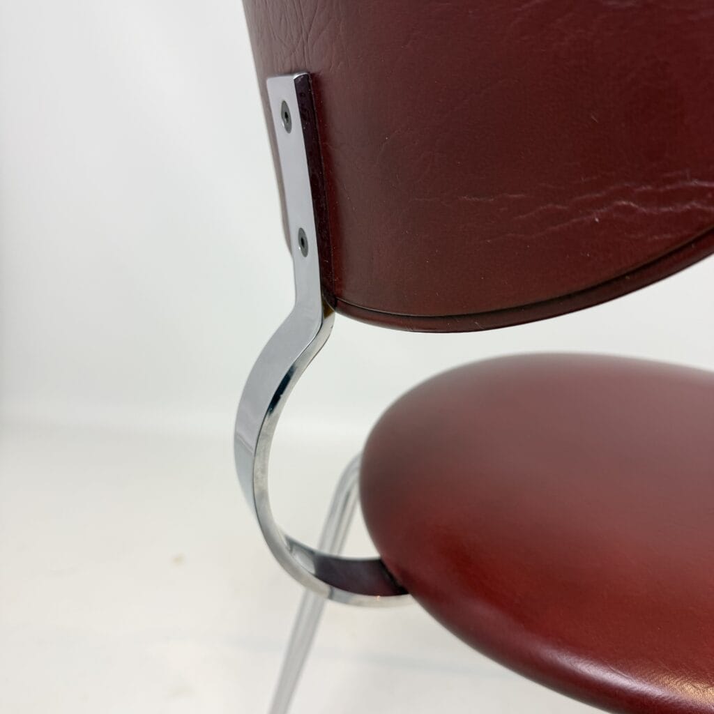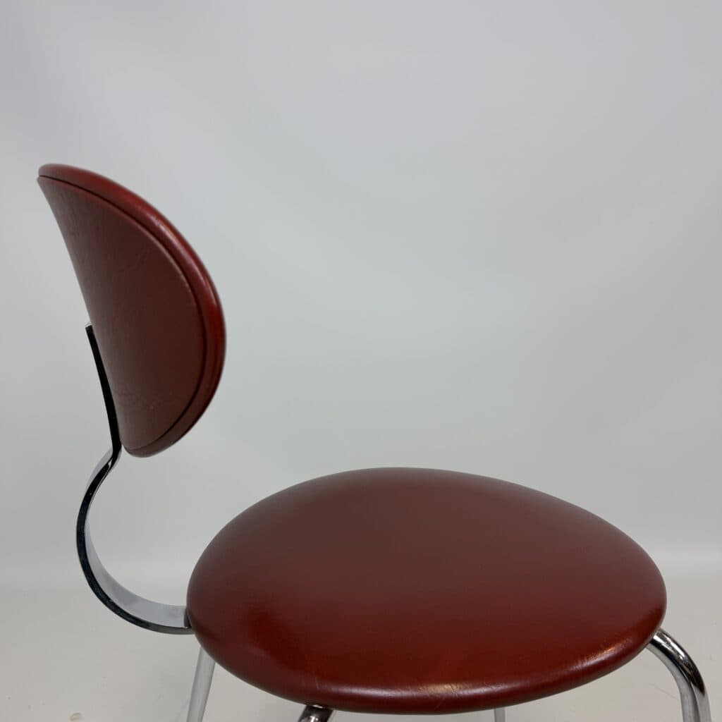 The skai upholstery has very slight signs of wear, but remains neat and uniform, while the chrome looks surprisingly fresh. Thanks to their robust construction, the chairs are also ideal for everyday use without compromising on aesthetics.