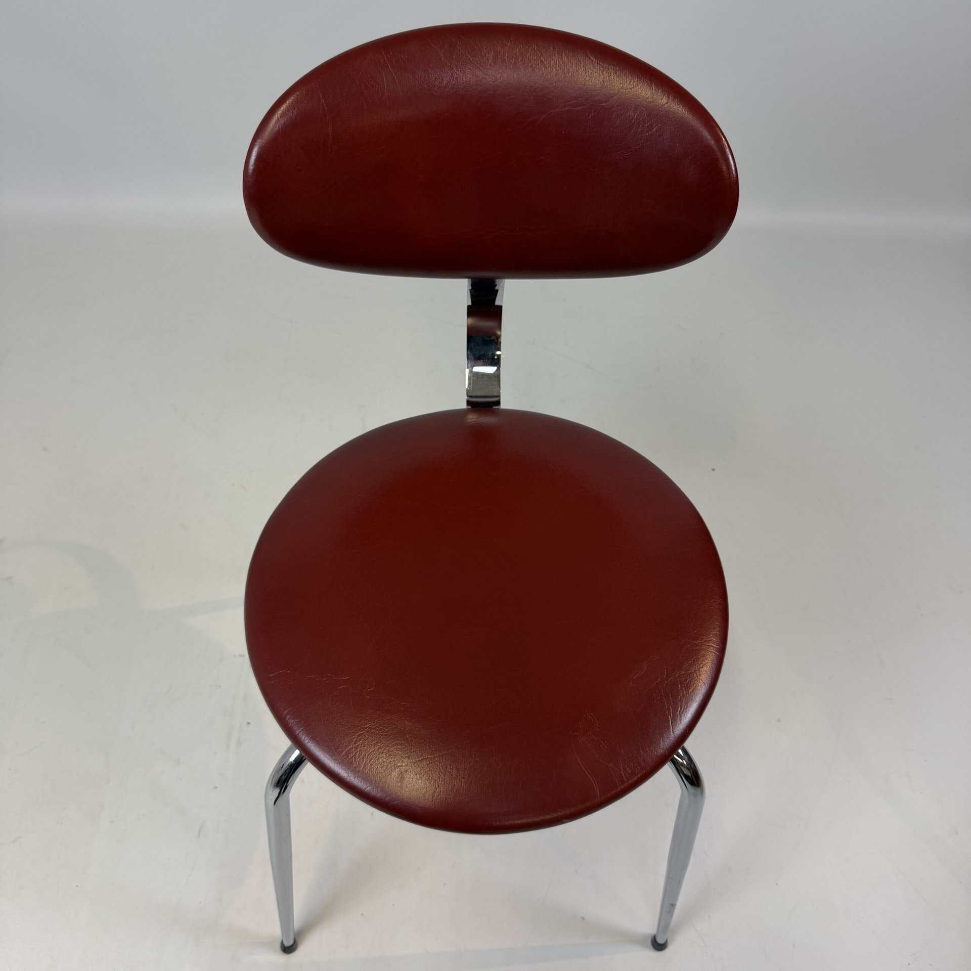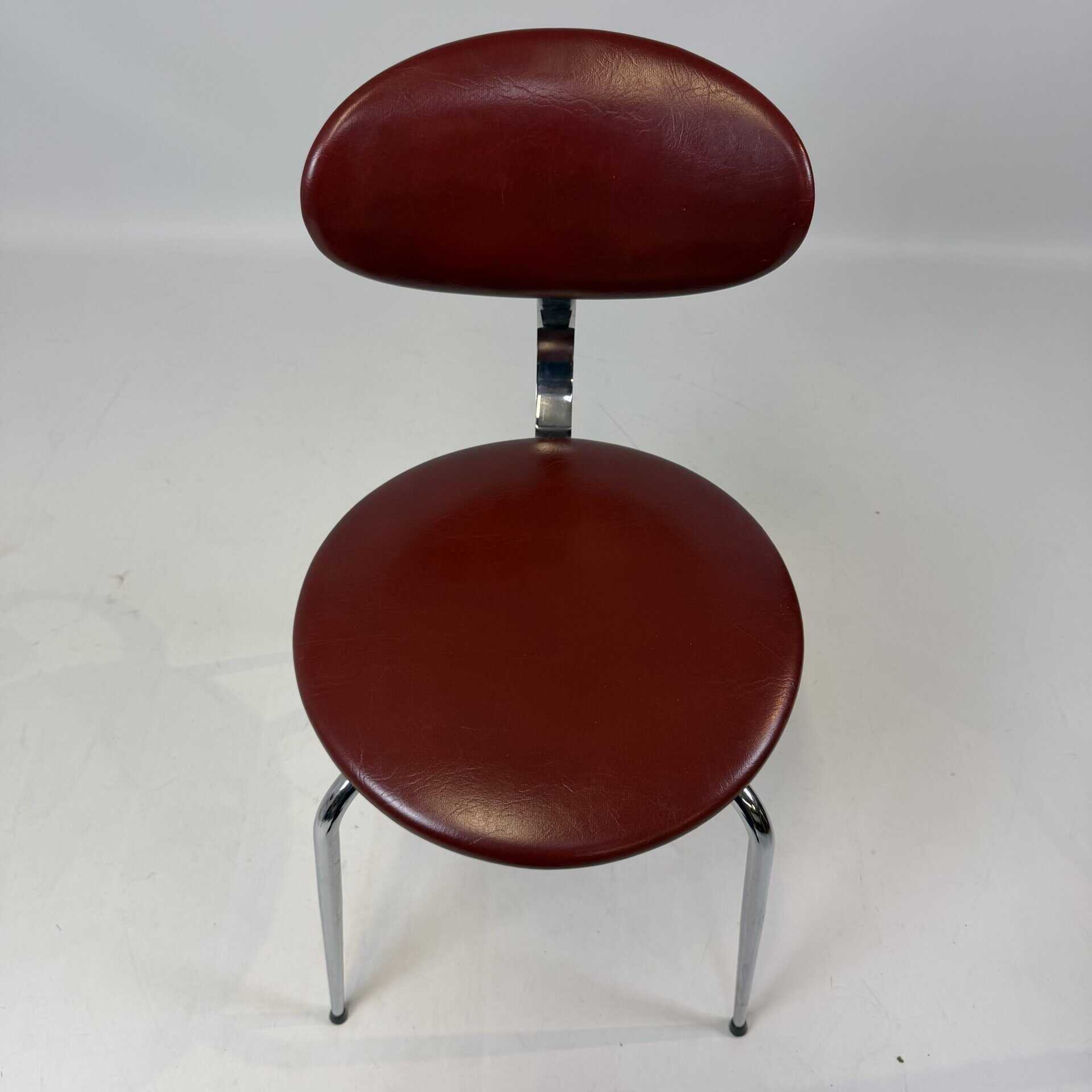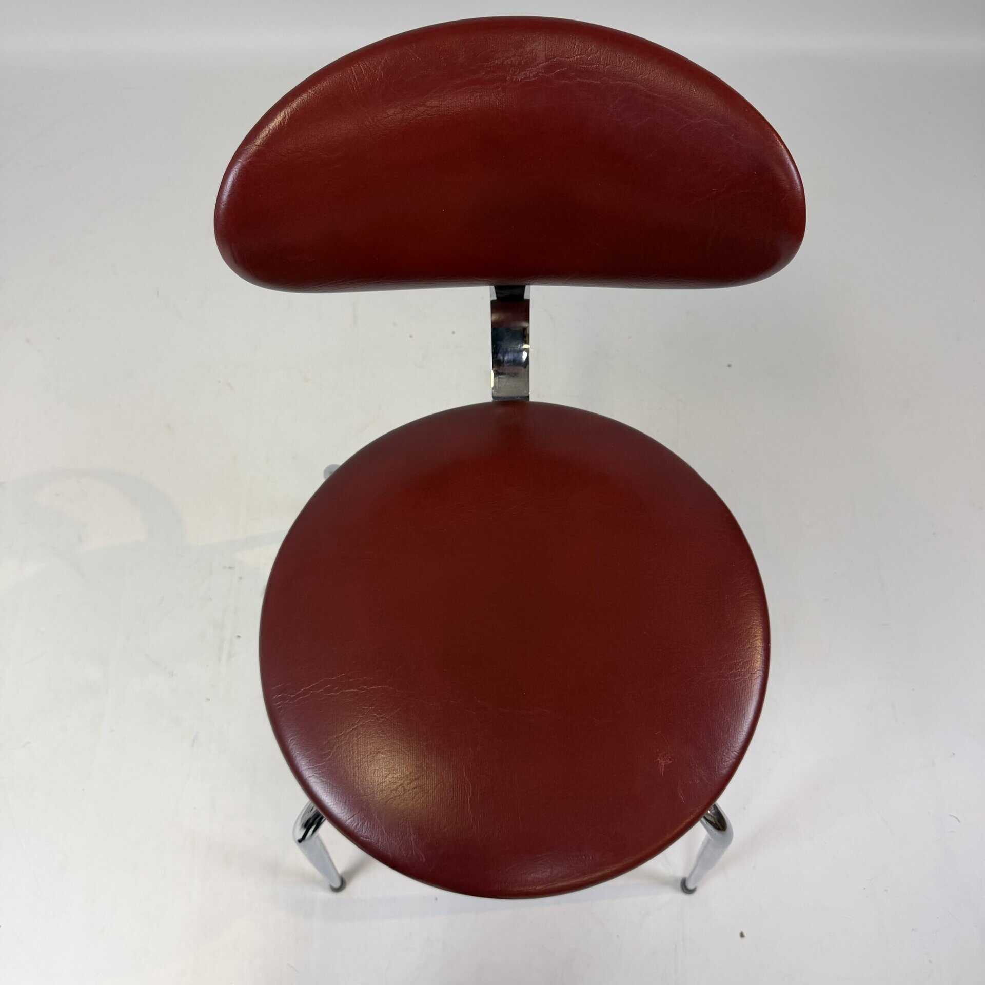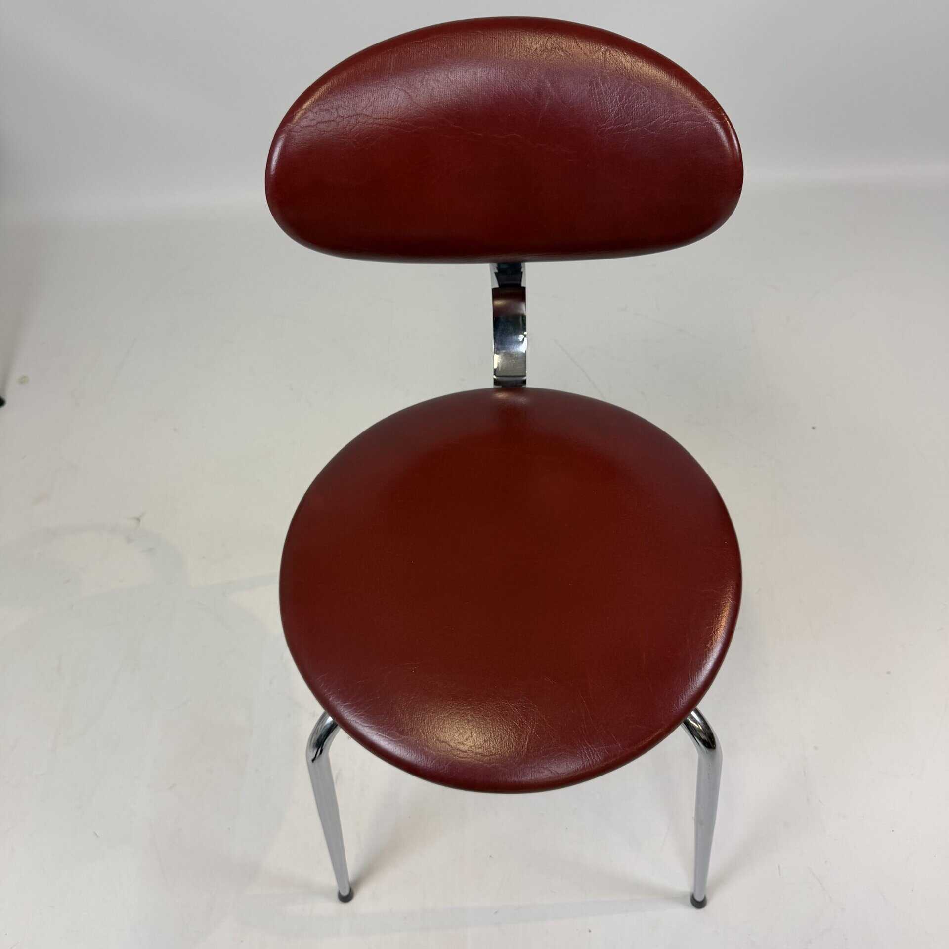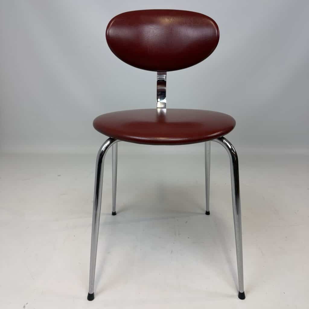 The skai upholstery has very slight signs of wear, but remains neat and uniform, while the chrome looks surprisingly fresh. Thanks to their robust construction, the chairs are also ideal for everyday use without compromising on aesthetics.