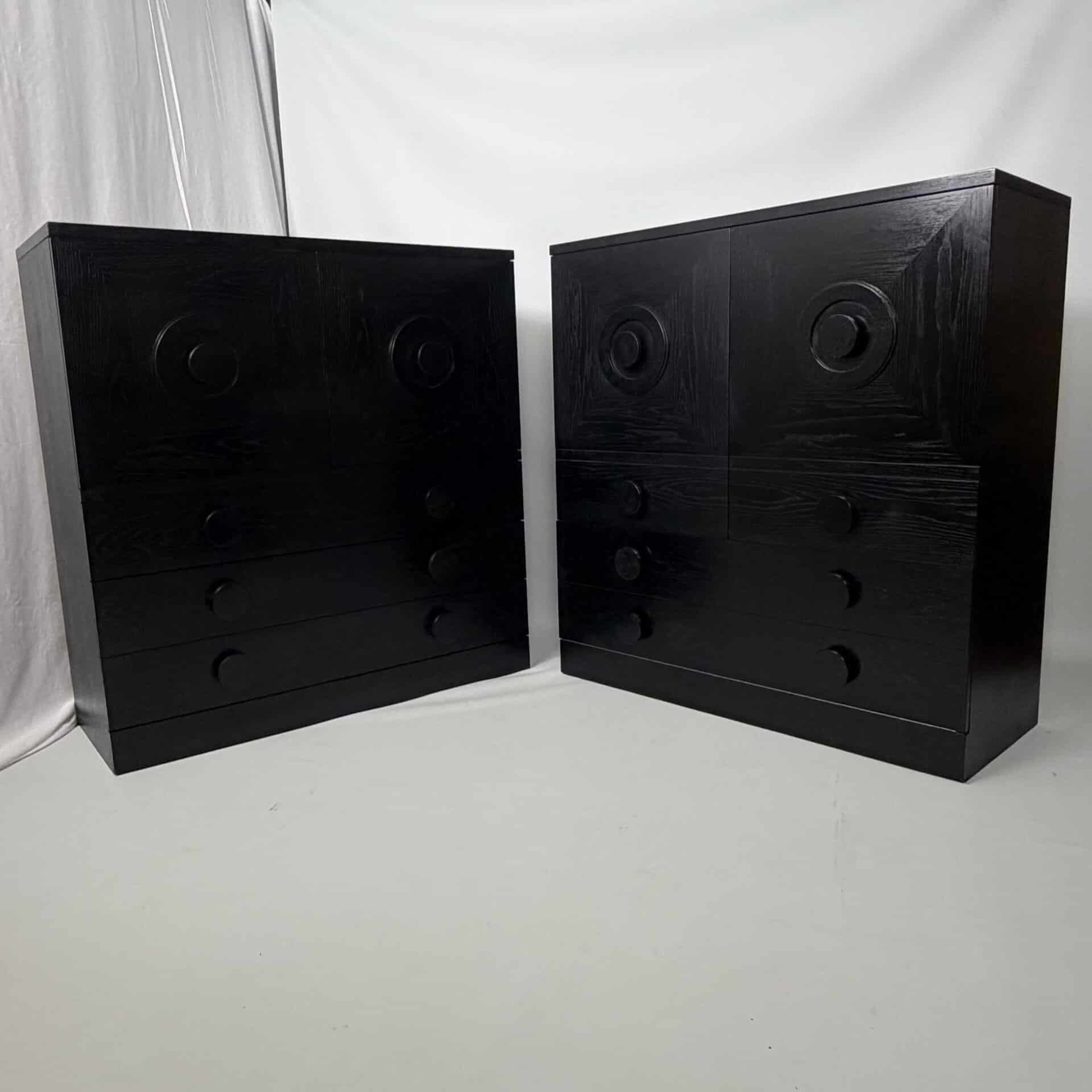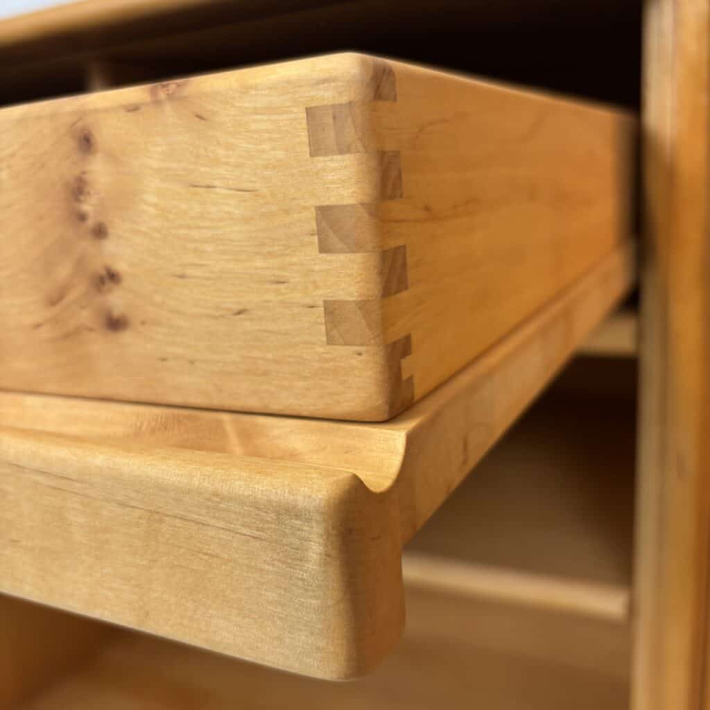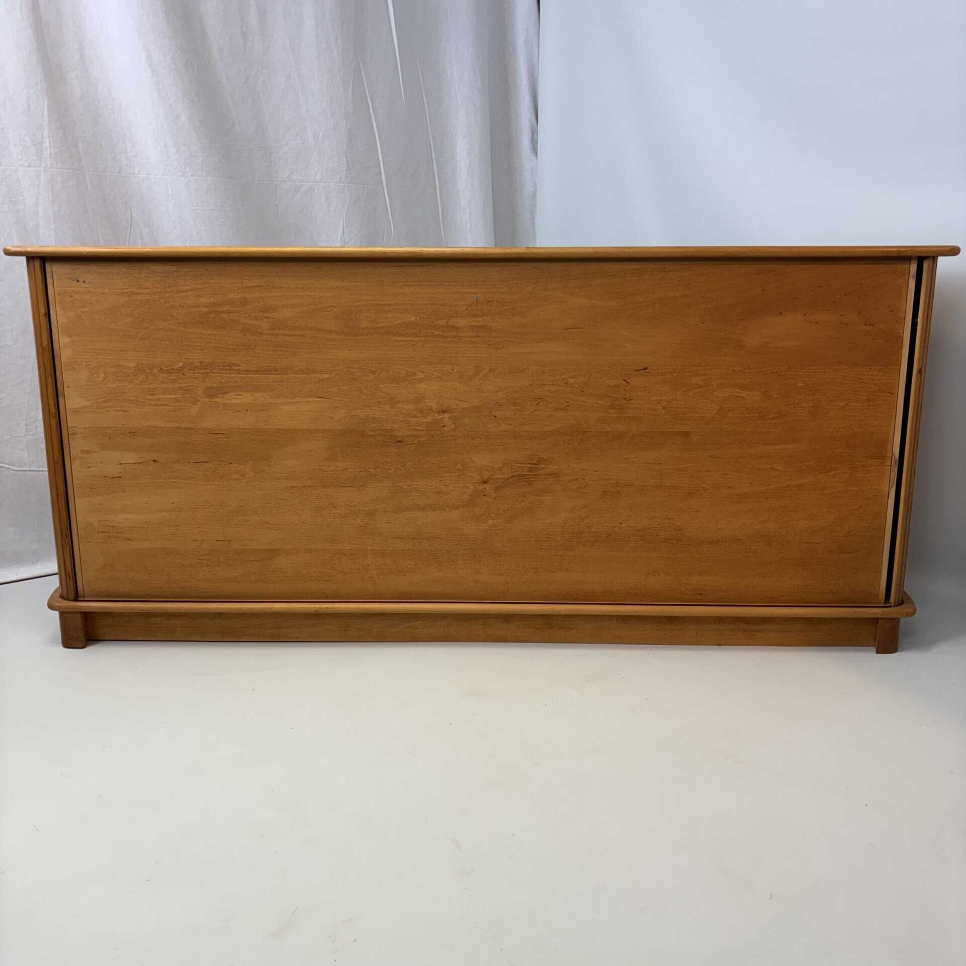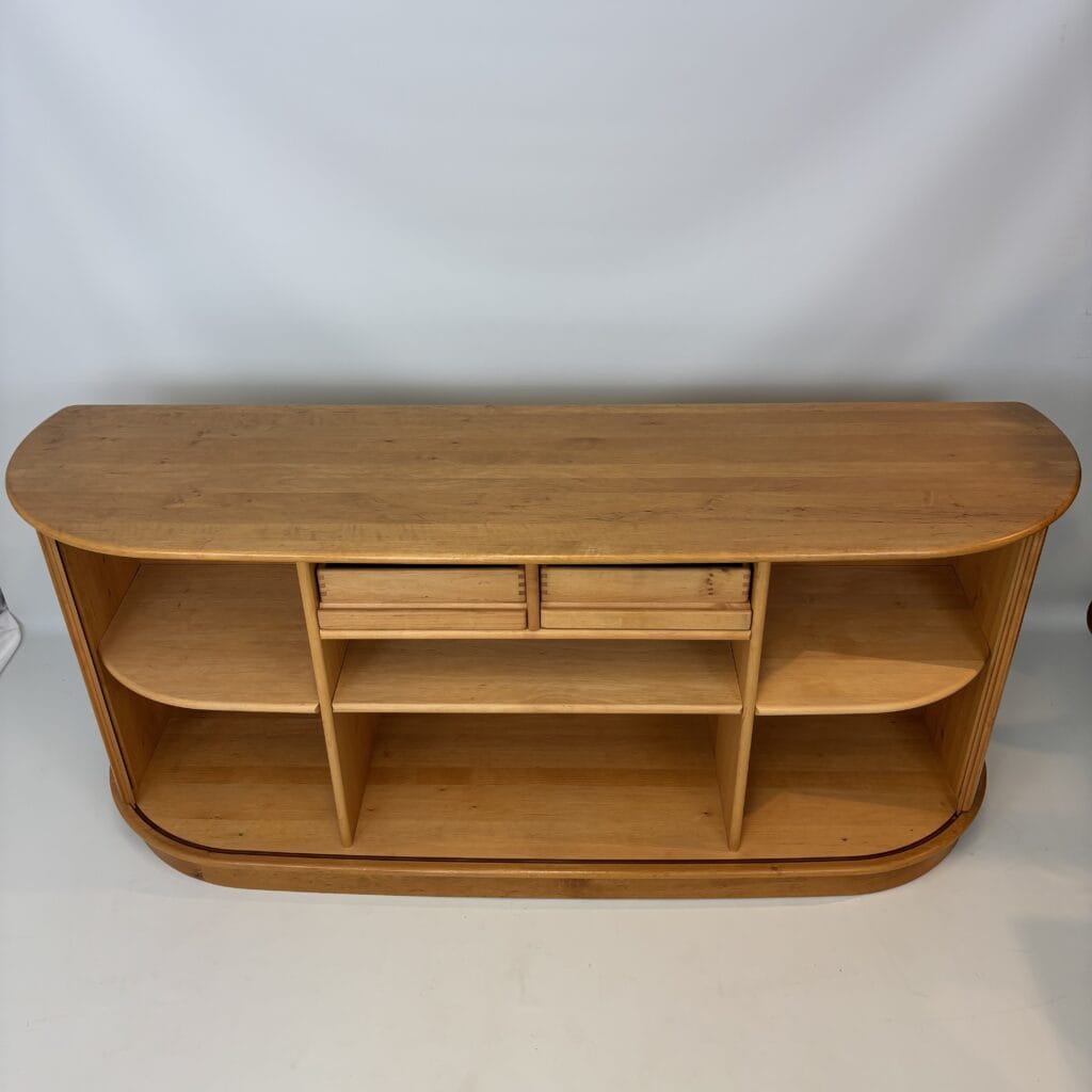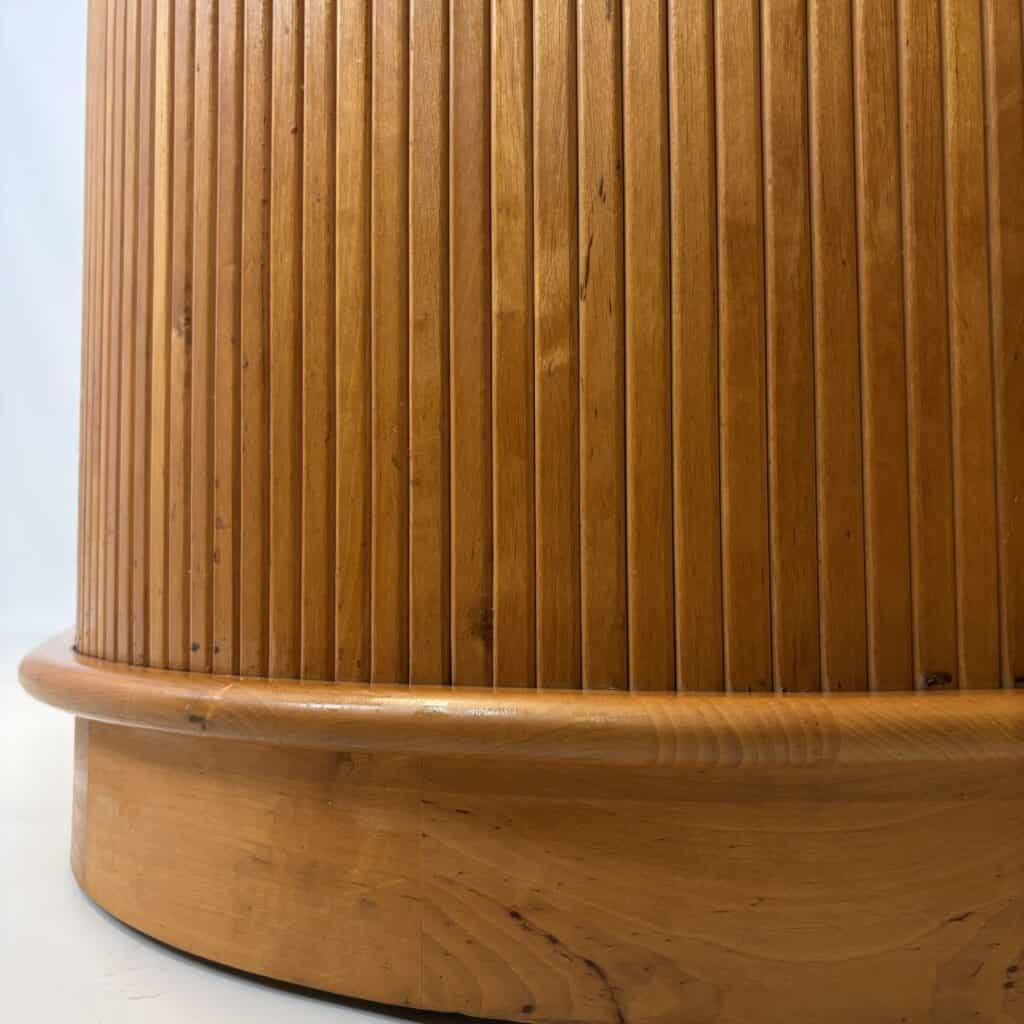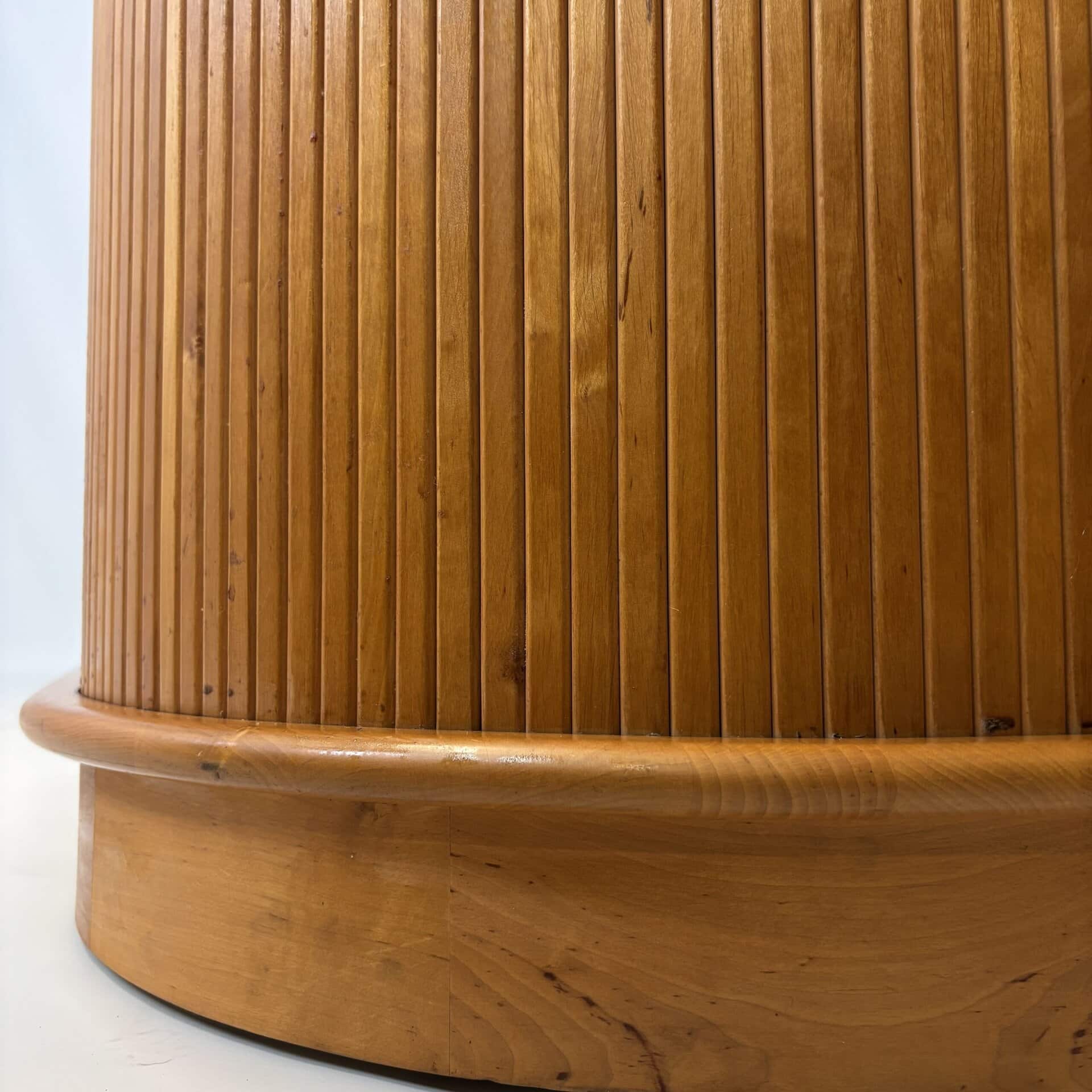 The tambour doors slide smoothly to the back of the cabinet rather than swinging open