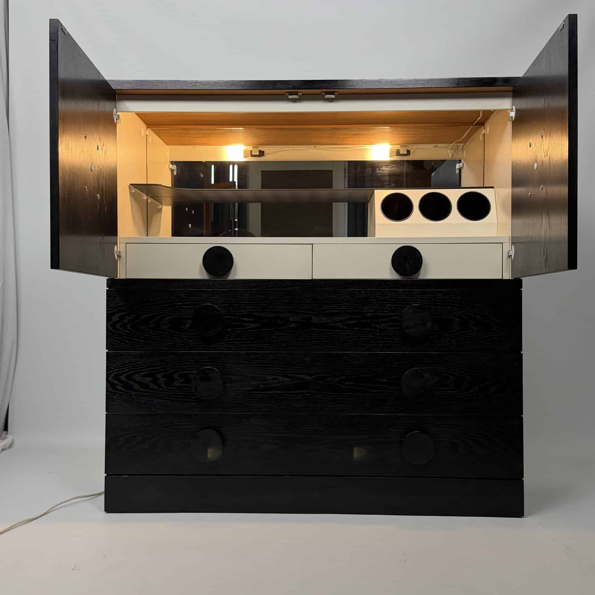 This design is a hallmark of Danish modern craftsmanship, providing a clean look and saving space