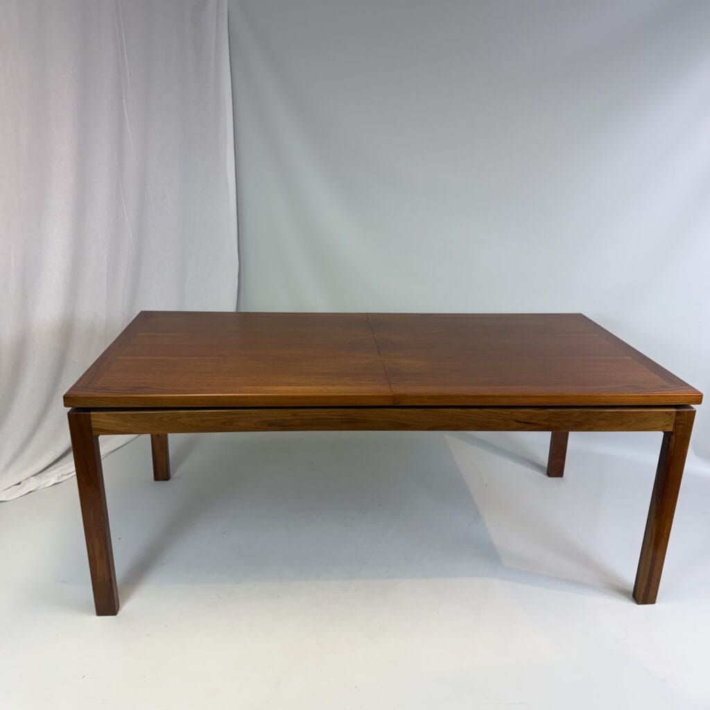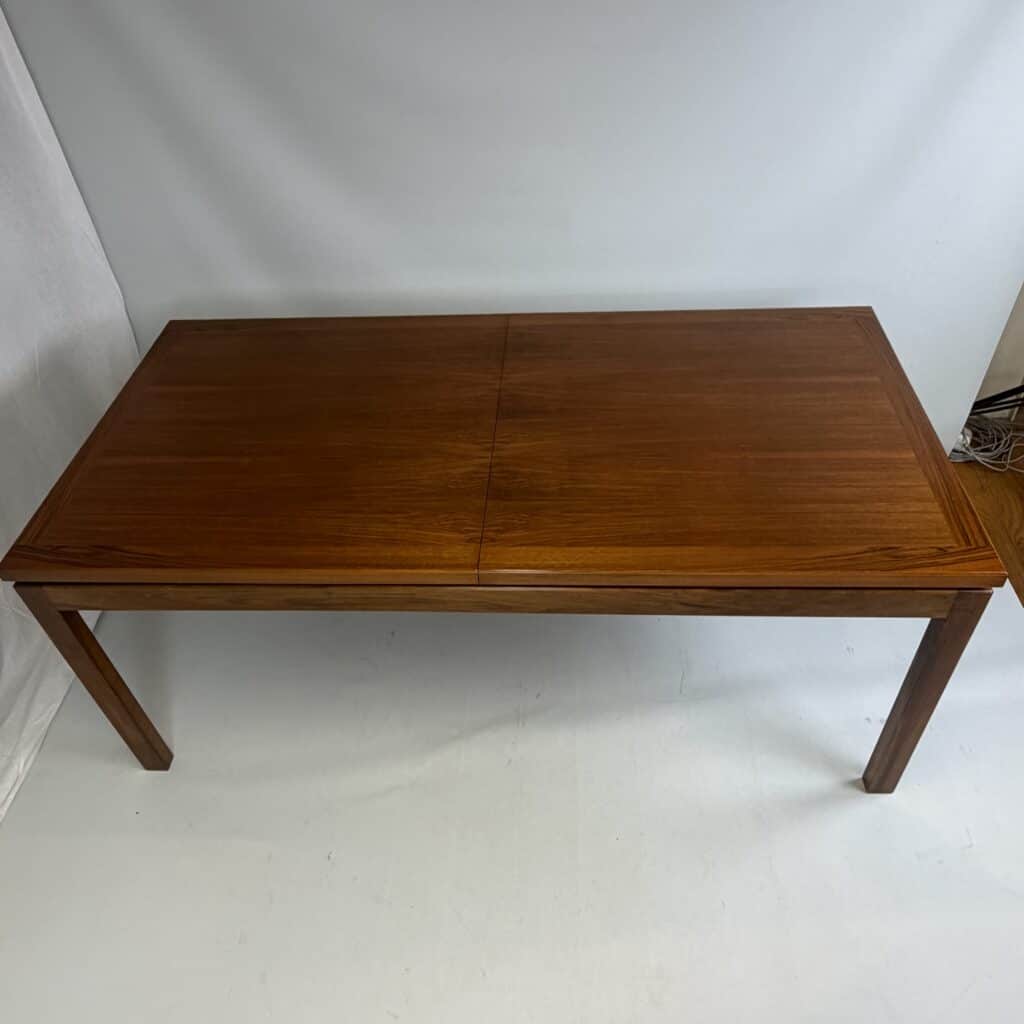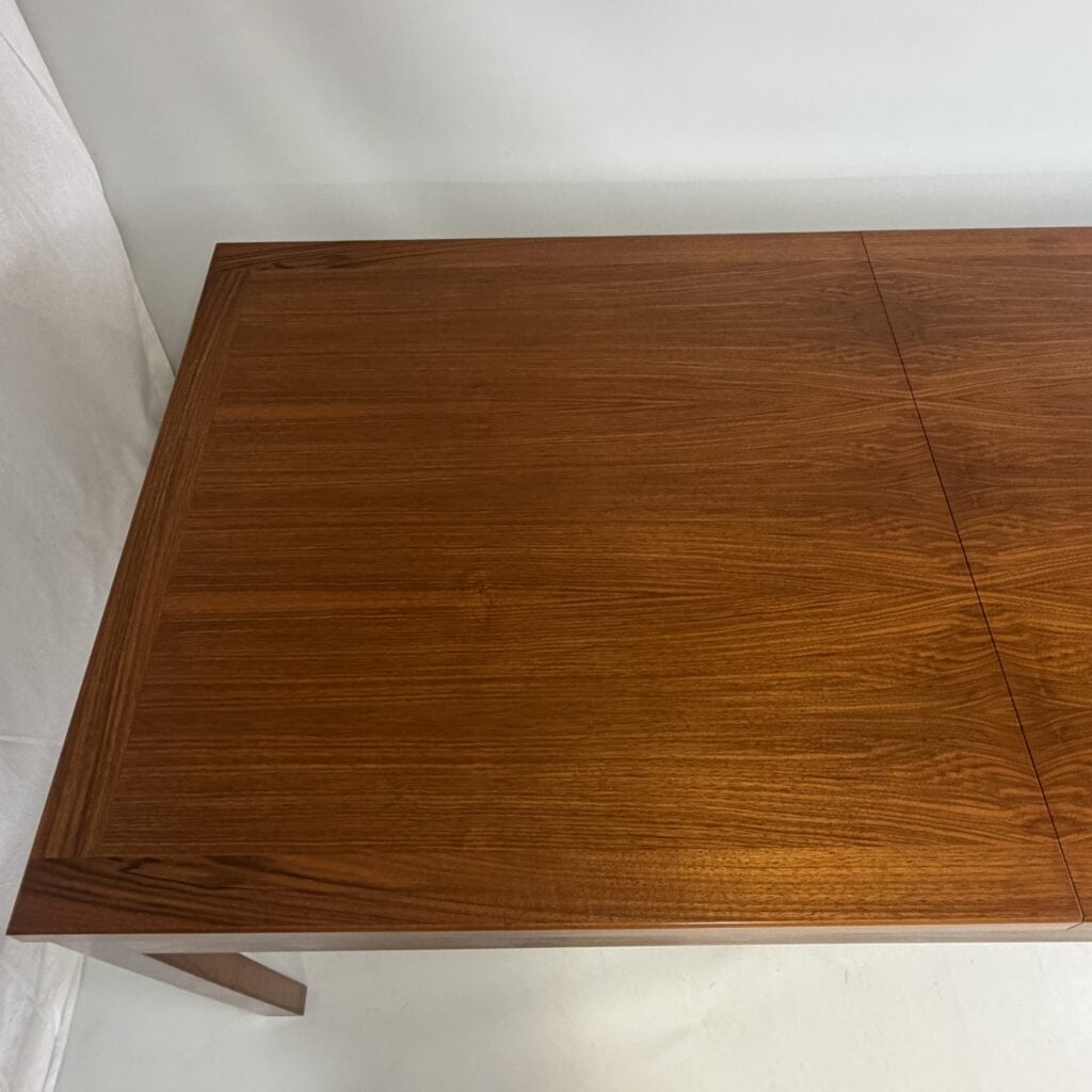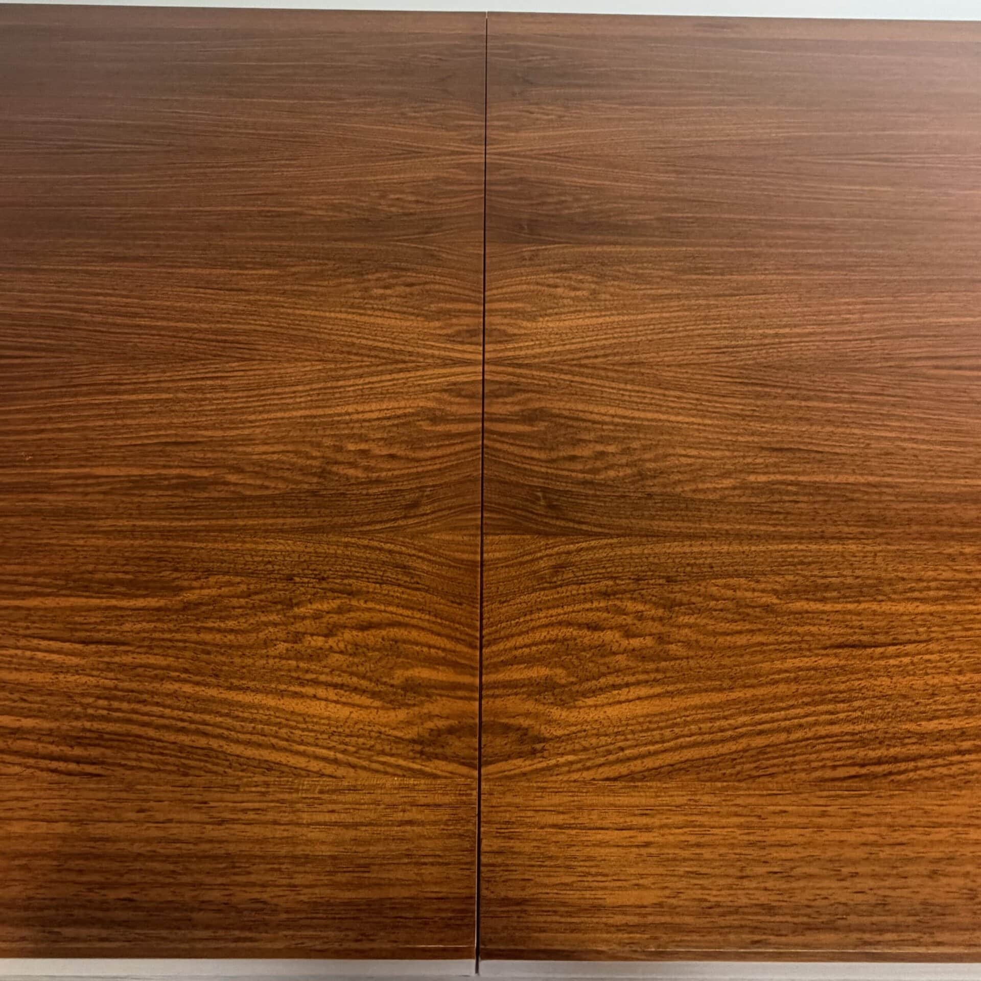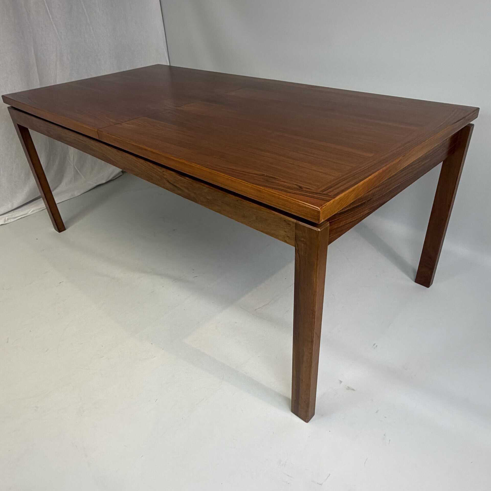 Rectangle dining table with rio rosewood veneer top, the book matched veneer with striking symmetrical grain pattern make this an eyecatcher for every interior