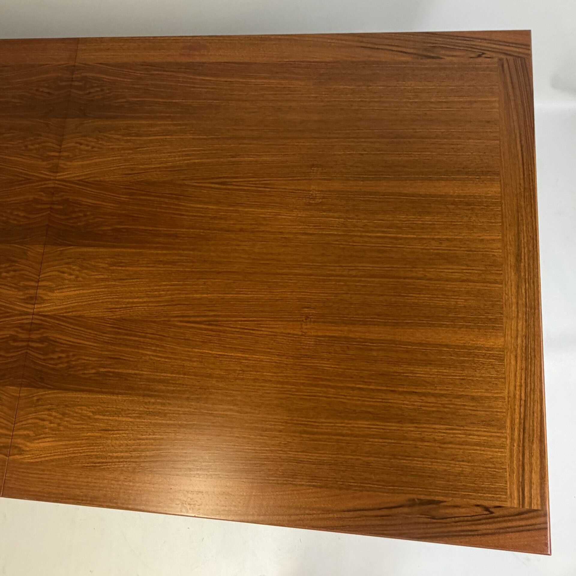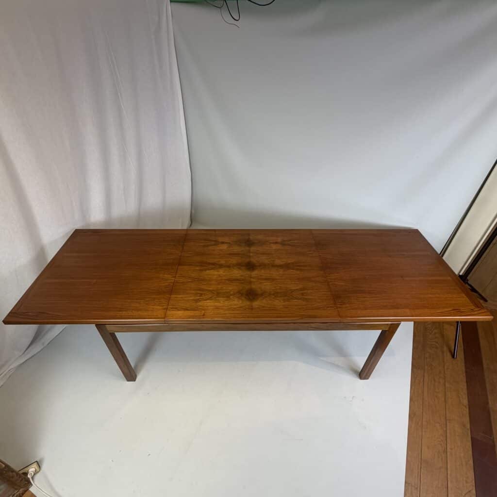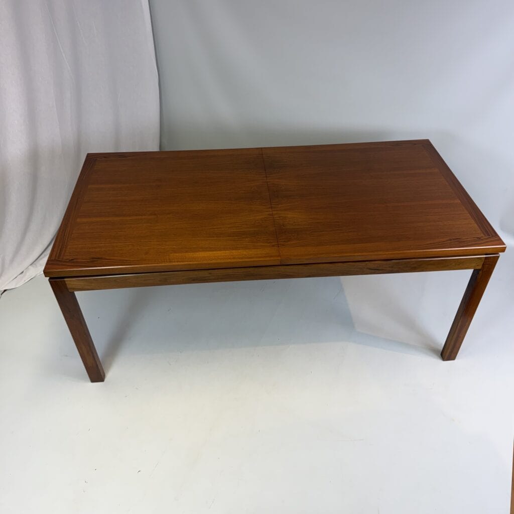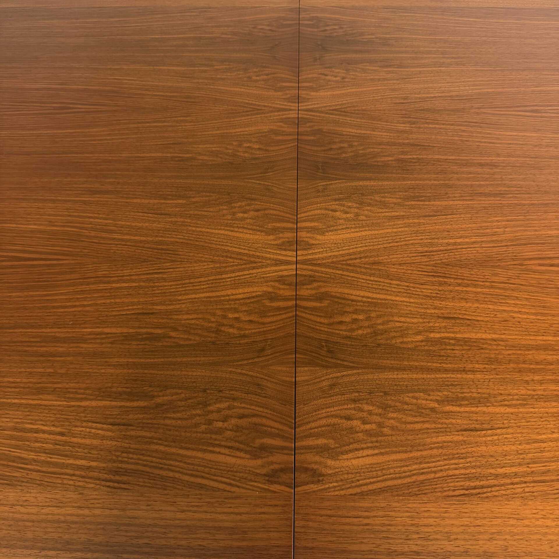 Rectangle dining table with rio rosewood veneer top, the book matched veneer with striking symmetrical grain pattern make this an eyecatcher for every interior