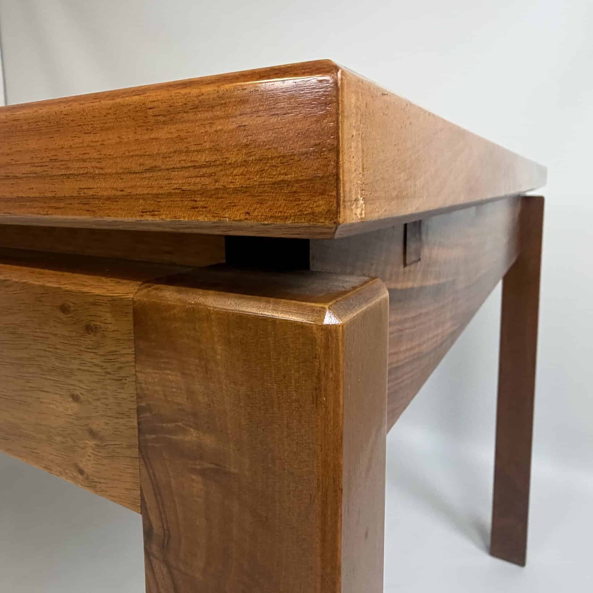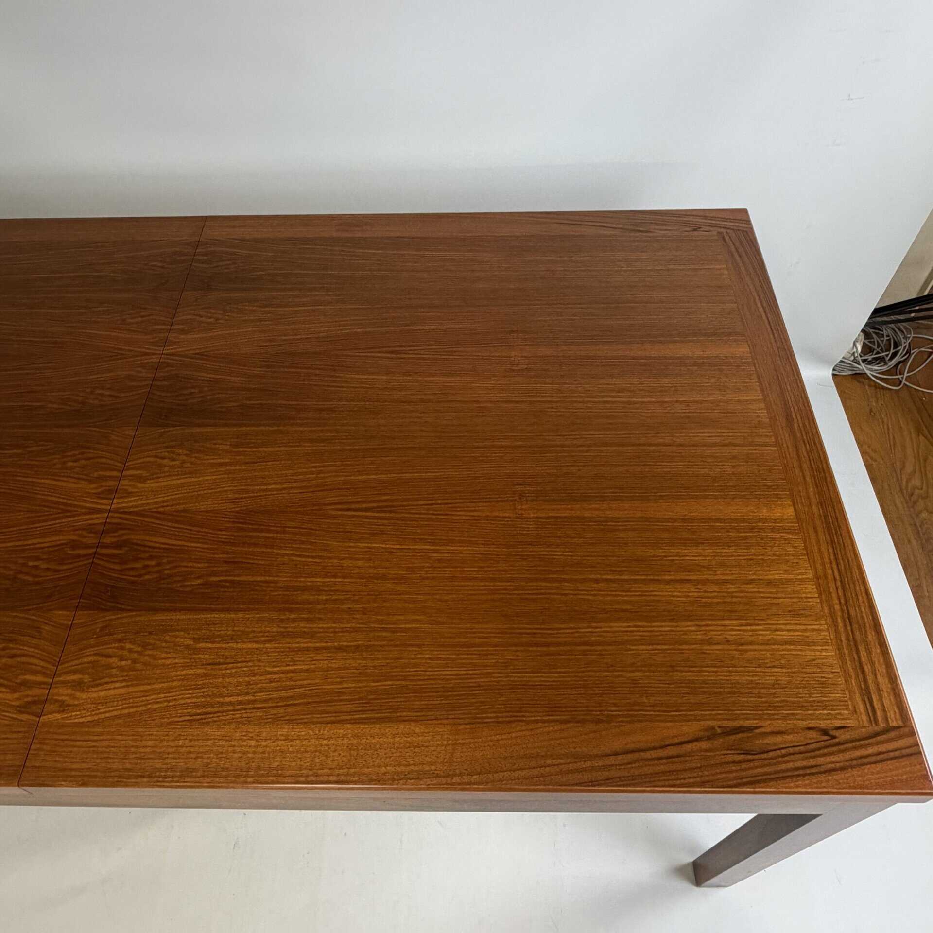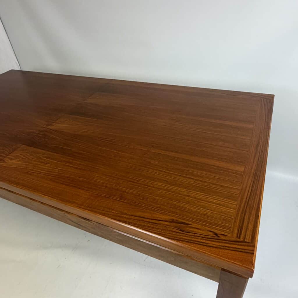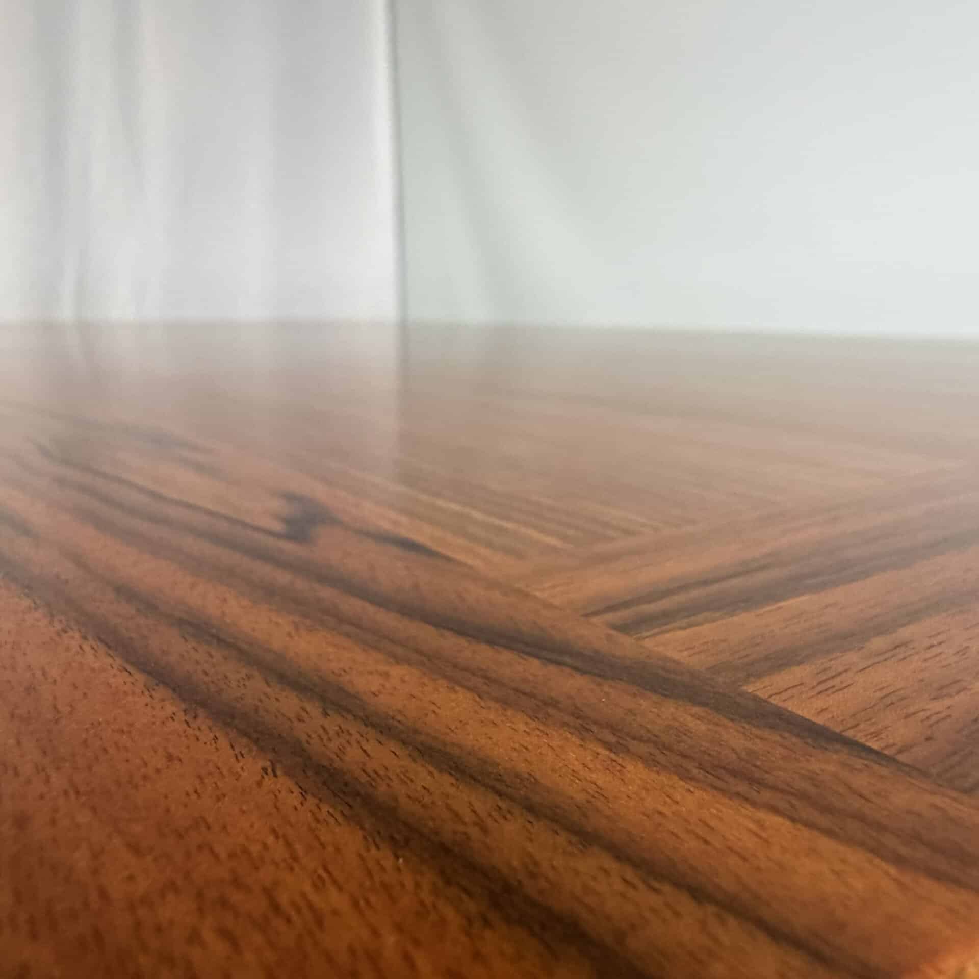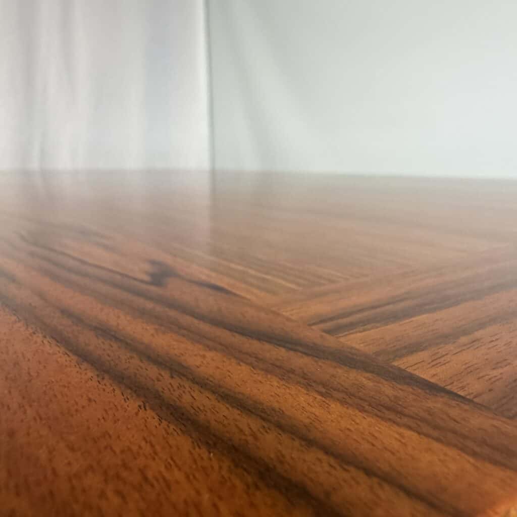 Rectangle dining table with rio rosewood veneer top, the book matched veneer with striking symmetrical grain pattern make this an eyecatcher for every interior