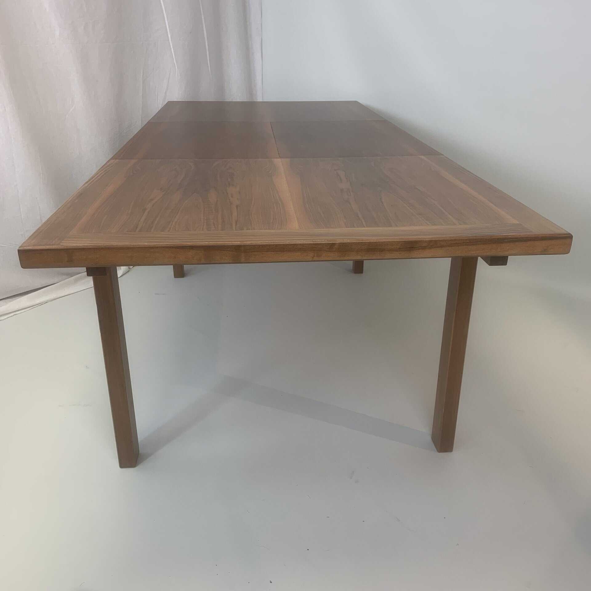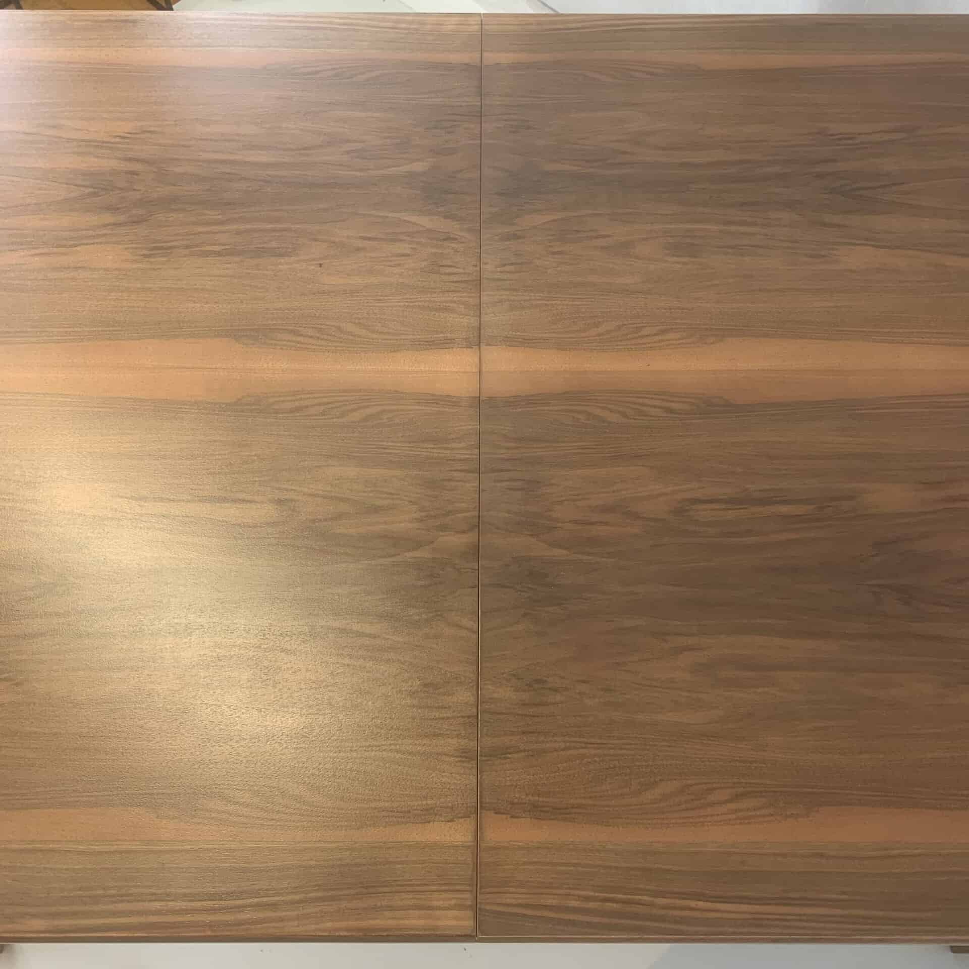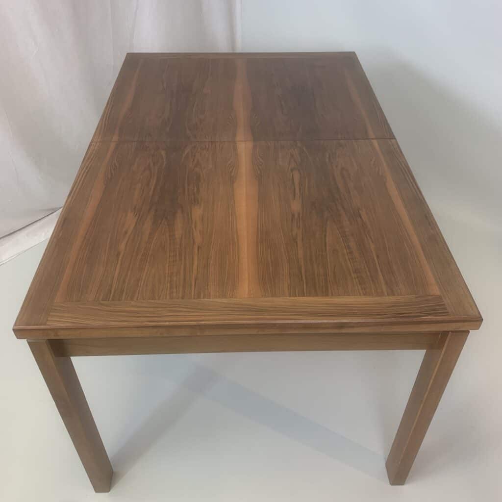 Rio rosewood dining table with veneer top, the rich reddish-brown colour with striking dark streaks and the symmetrical grain pattern make this an eyecatcher for every interior
