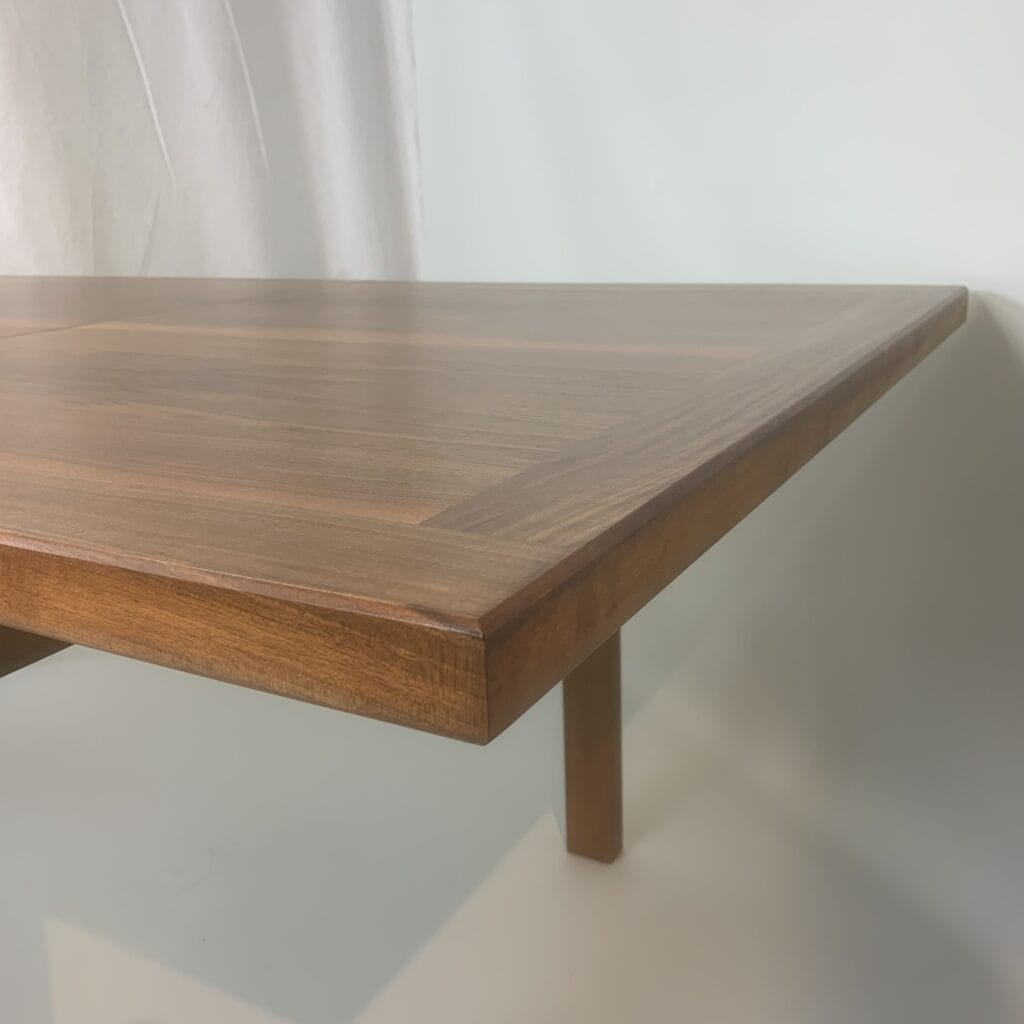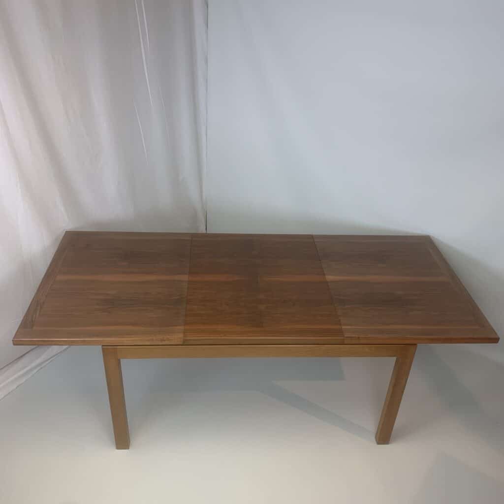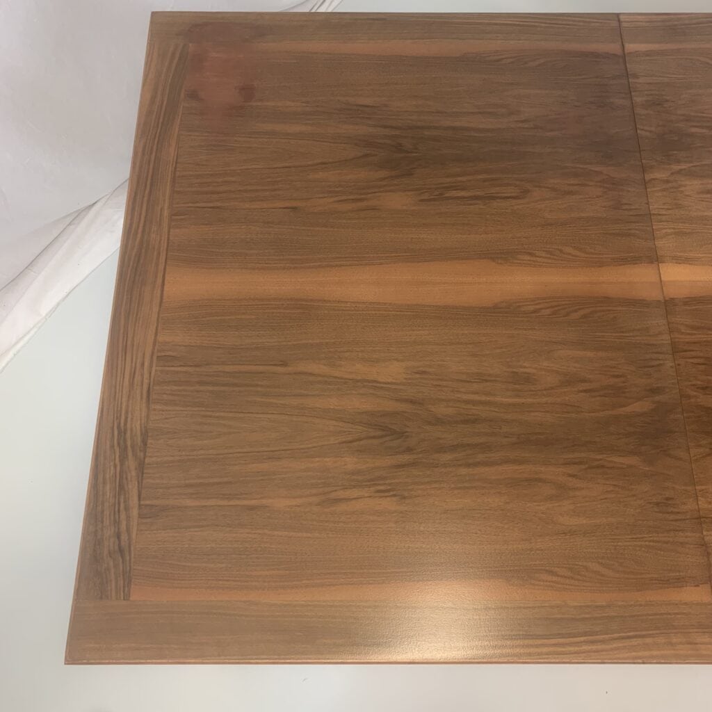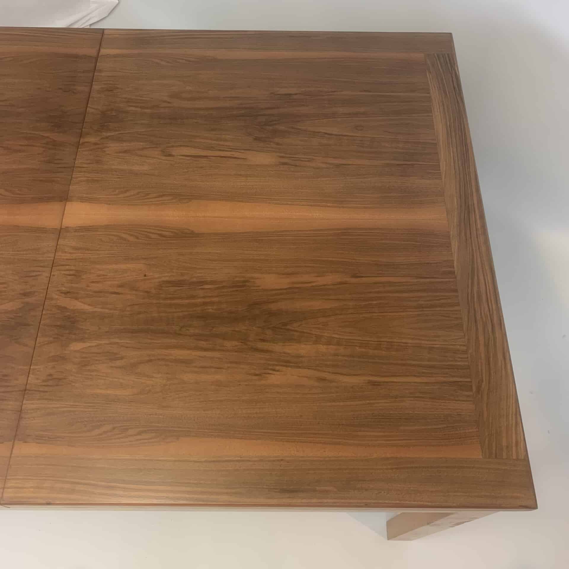 Rio rosewood dining table with veneer top, the rich reddish-brown colour with striking dark streaks and the symmetrical grain pattern make this an eyecatcher for every interior