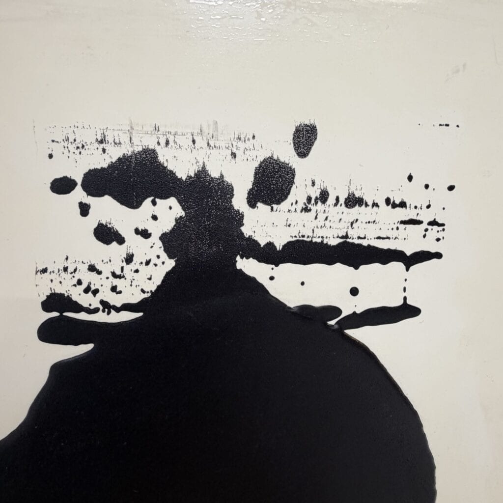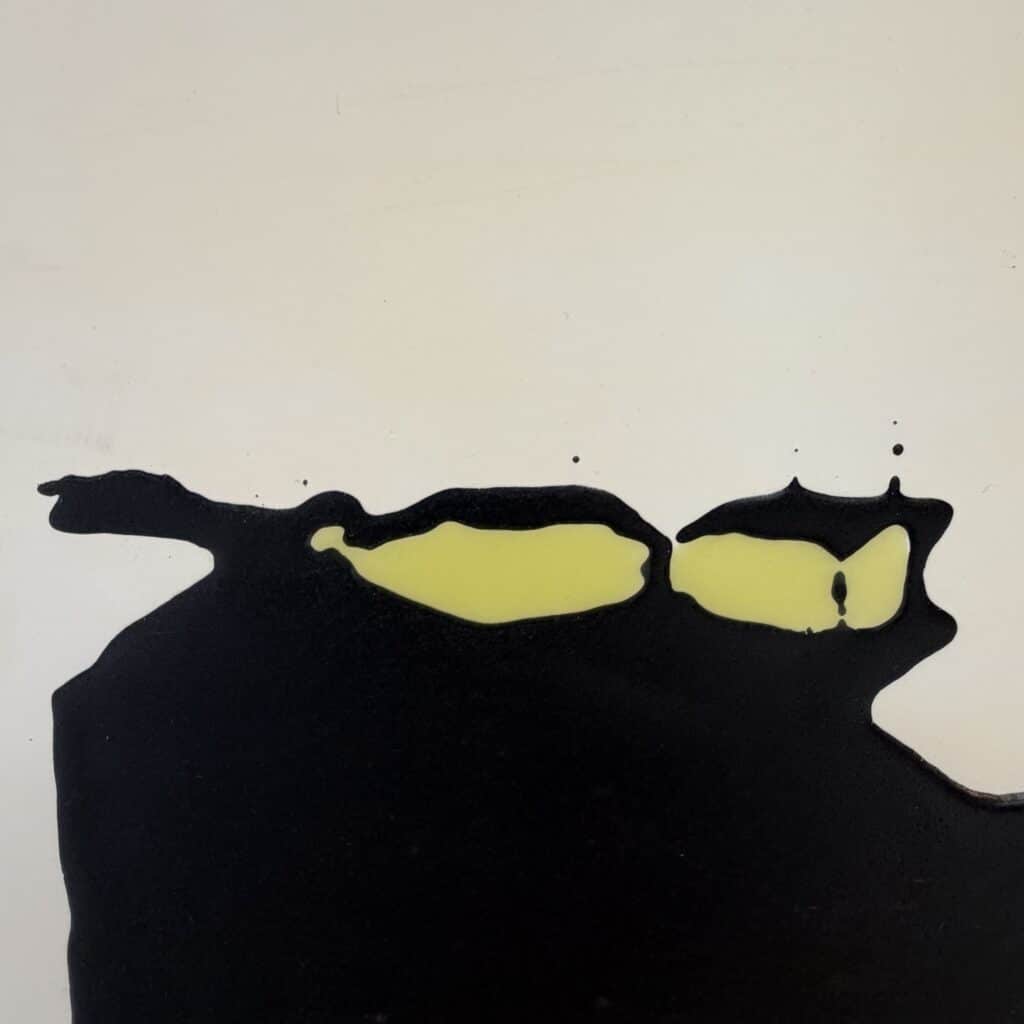 The paint of the massive black cat area appears slightly thick and fluid