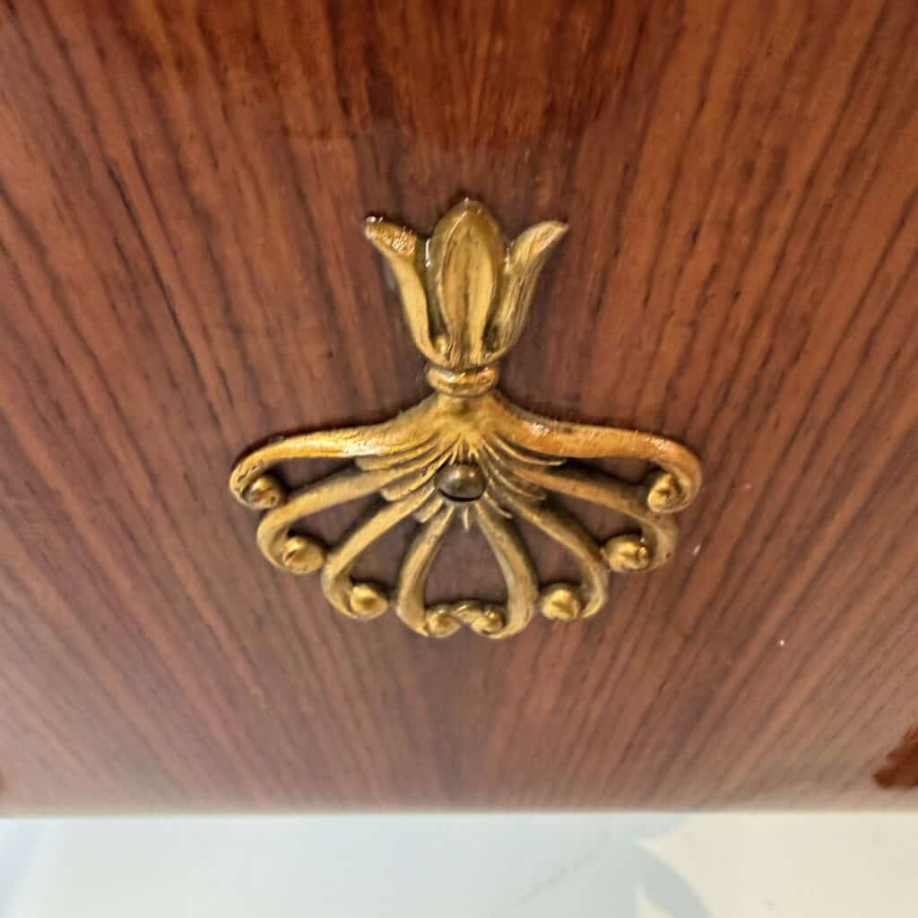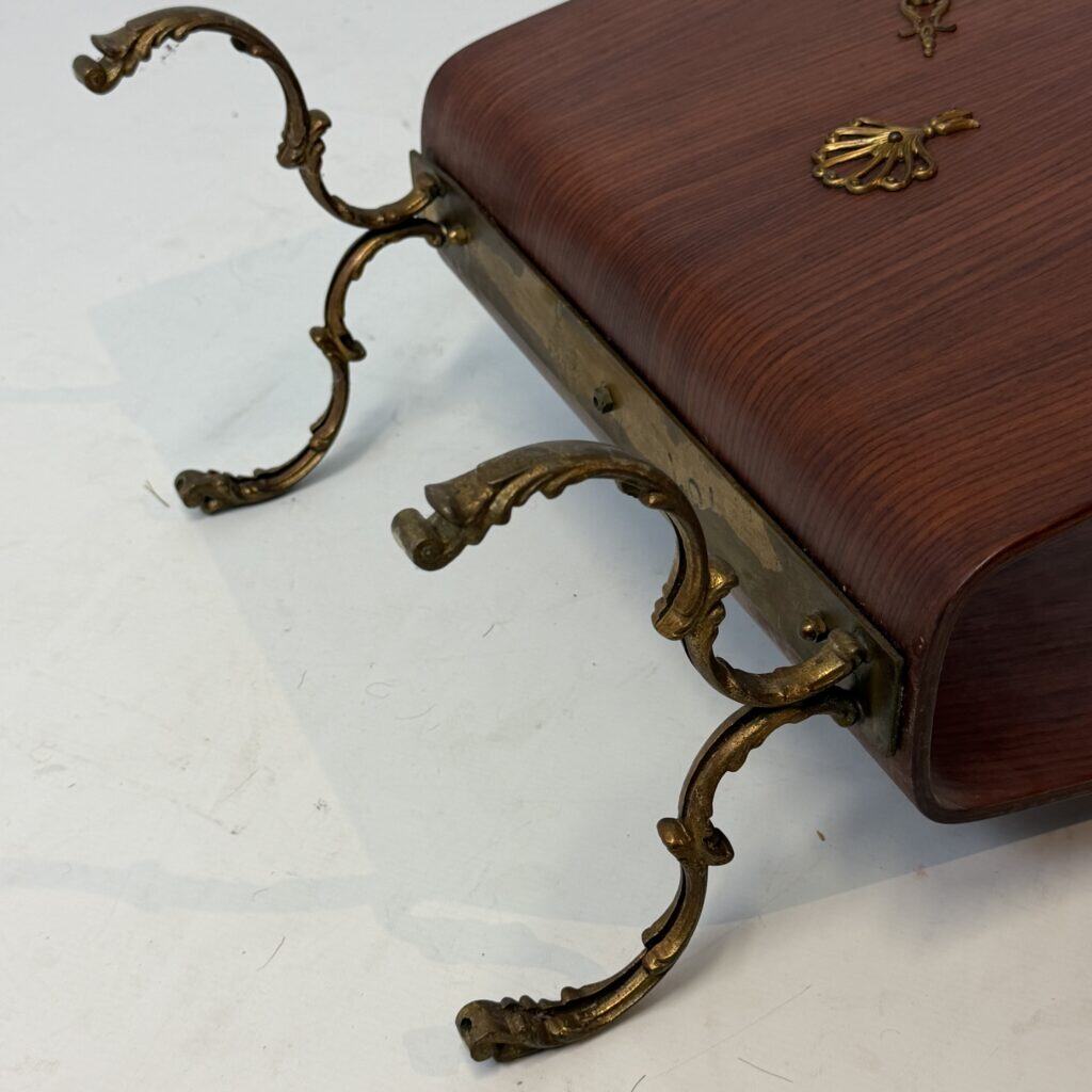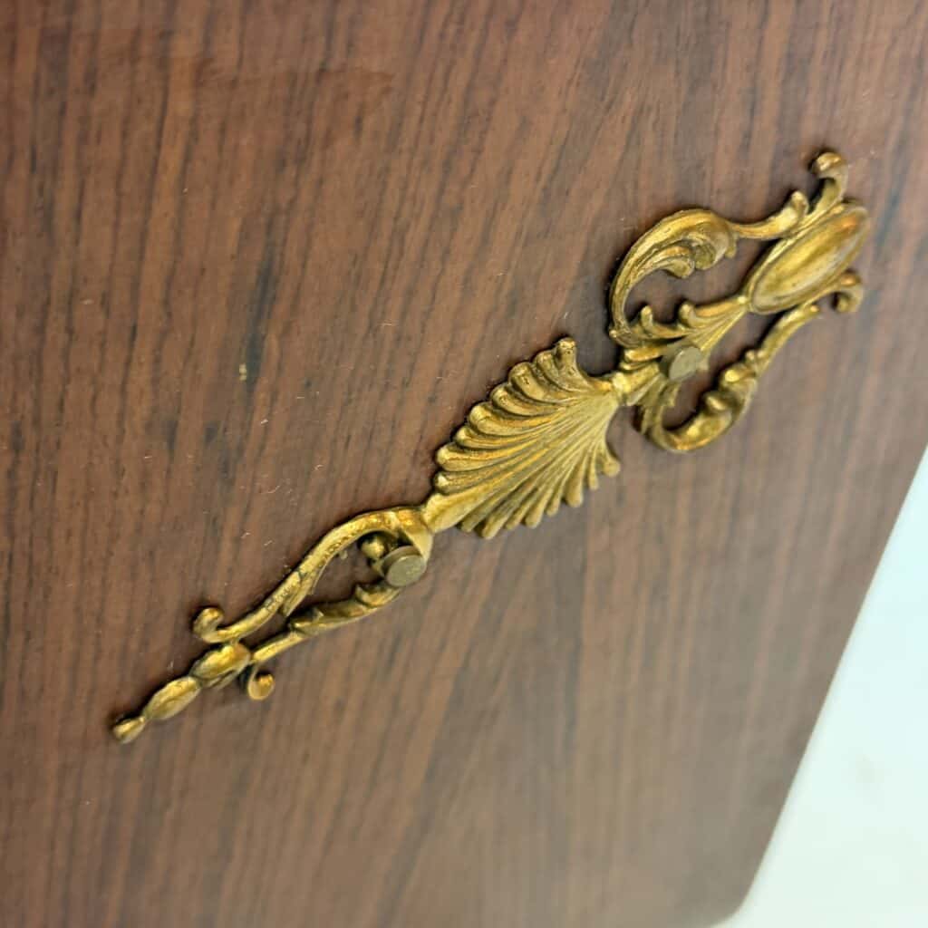 Applied gilt-bronze mounts on the wood depicting shells, floral scrolls and foliage