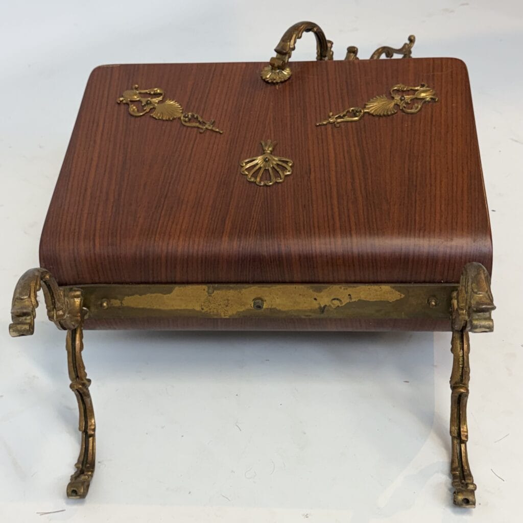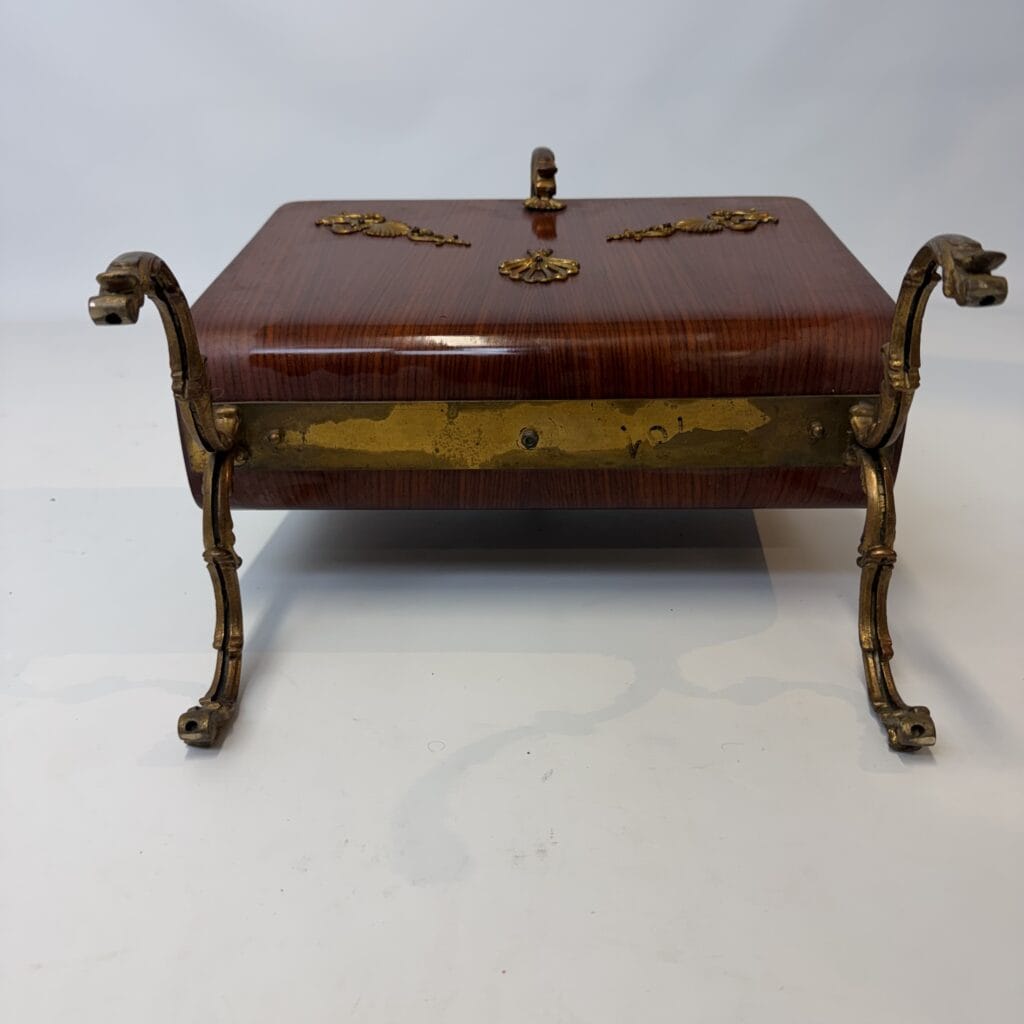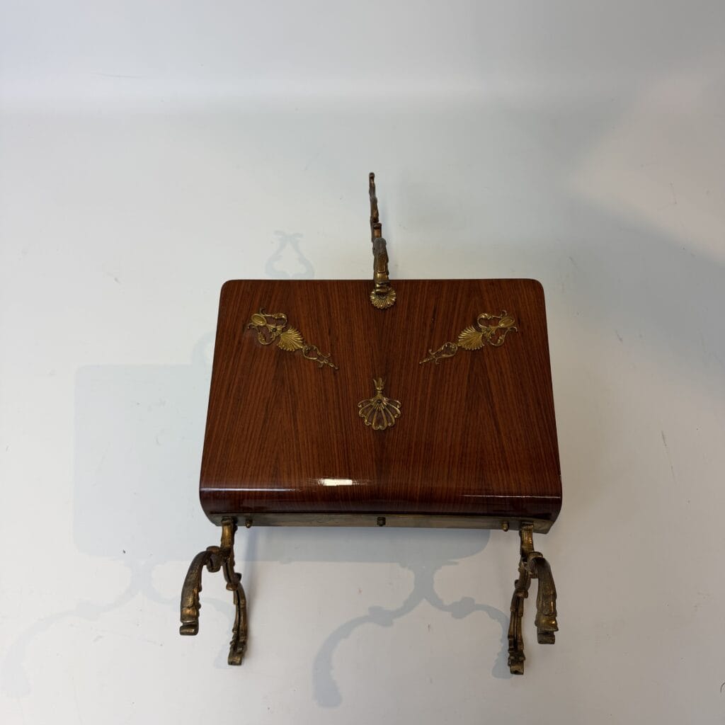 Applied gilt-bronze mounts on the wood depicting shells, floral scrolls and foliage