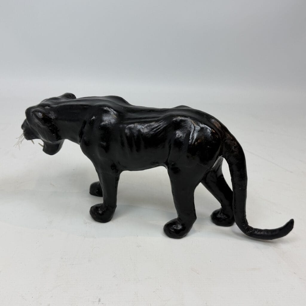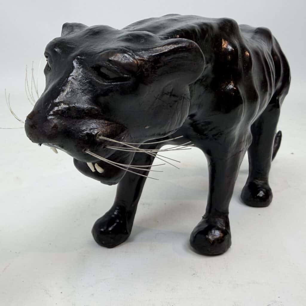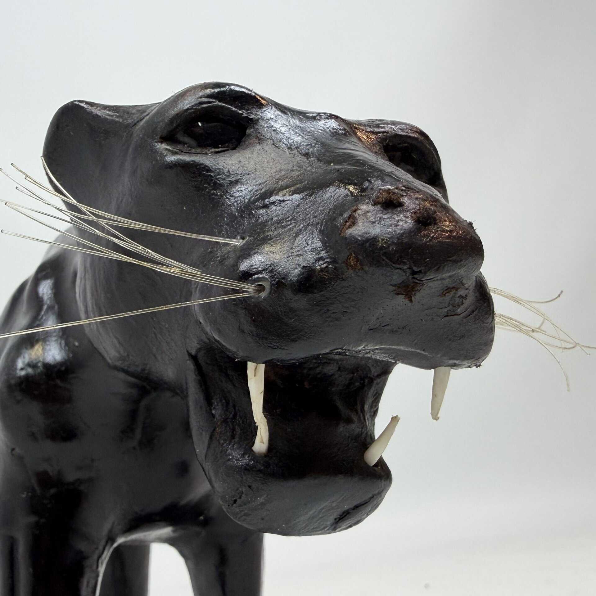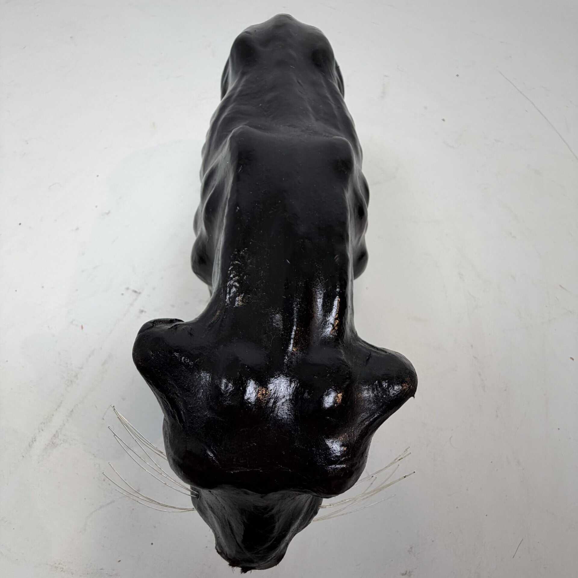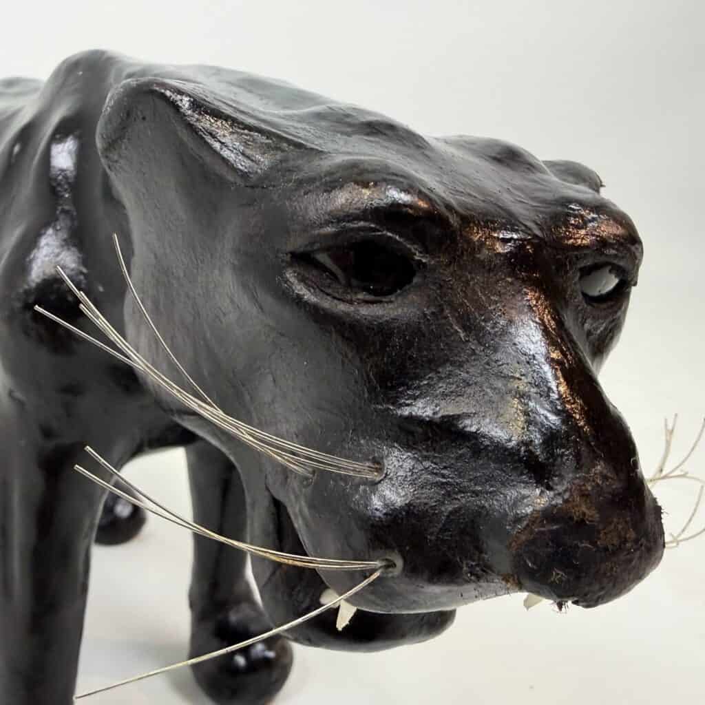 Modelled and detailed sculpture of roaring panther with plastic teeth, whiskers and glass eyes