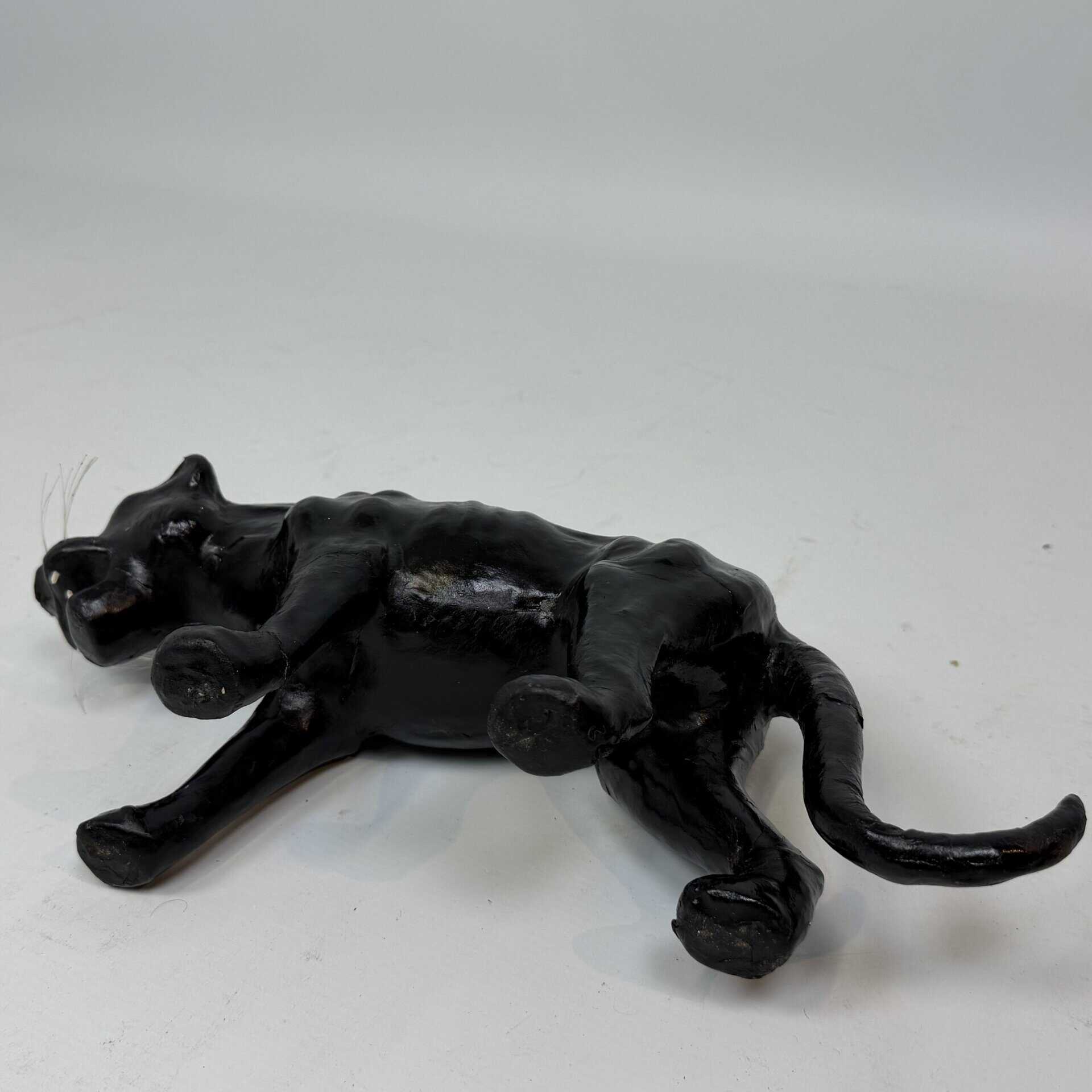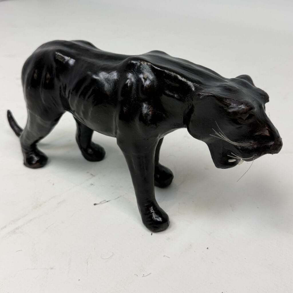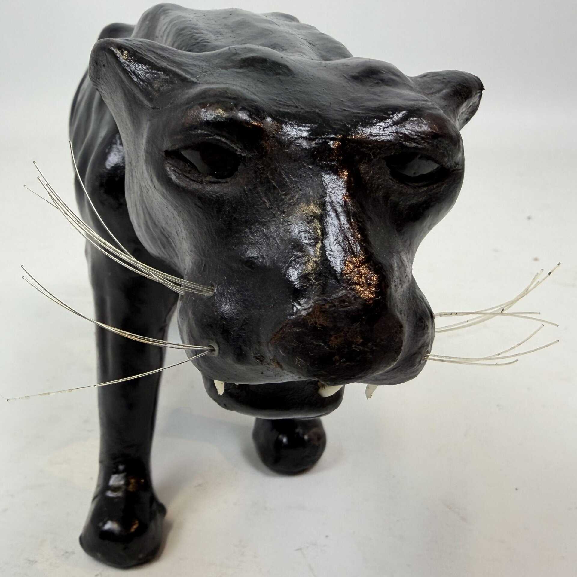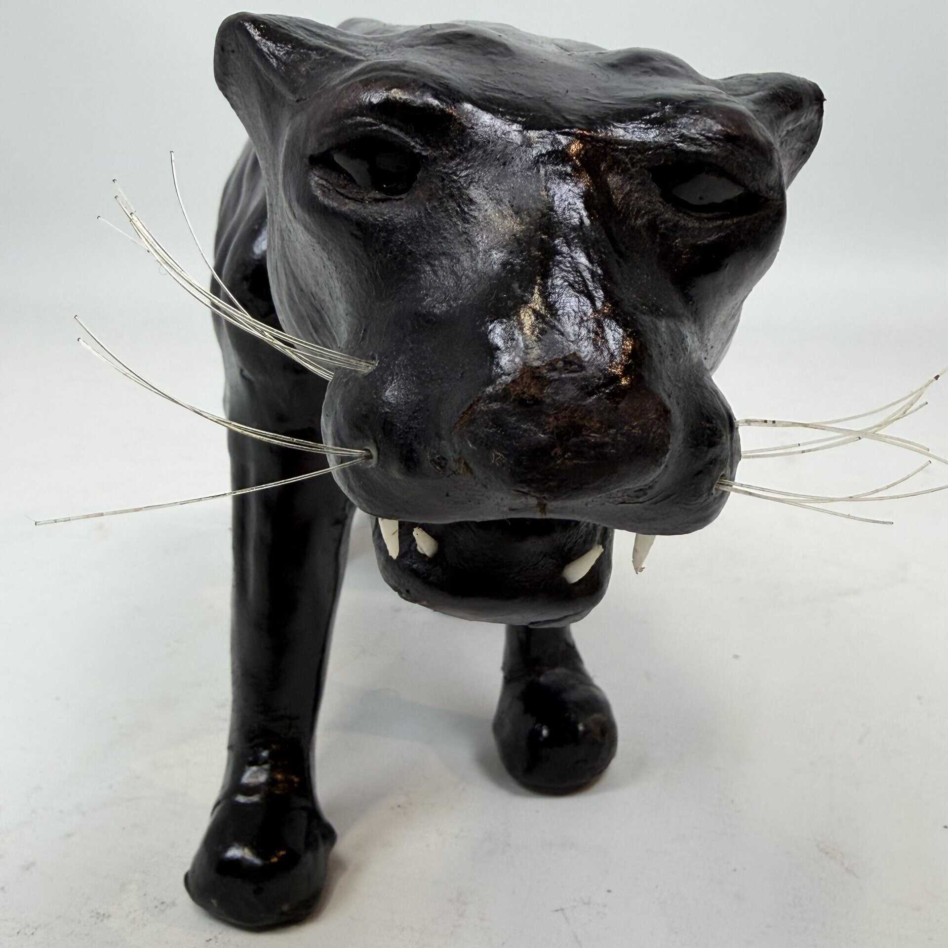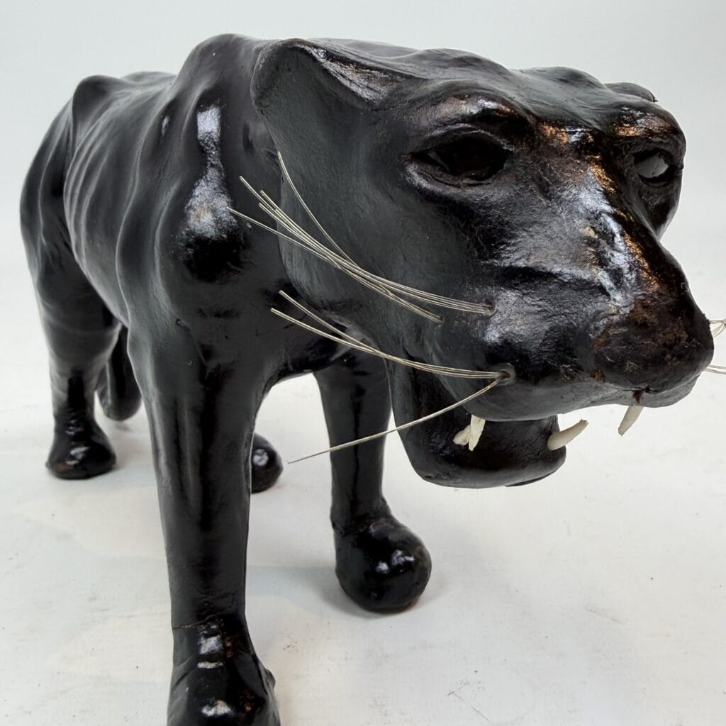 Modelled and detailed sculpture of roaring panther with plastic teeth, whiskers and glass eyes