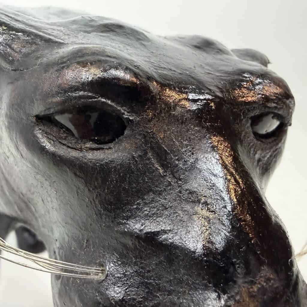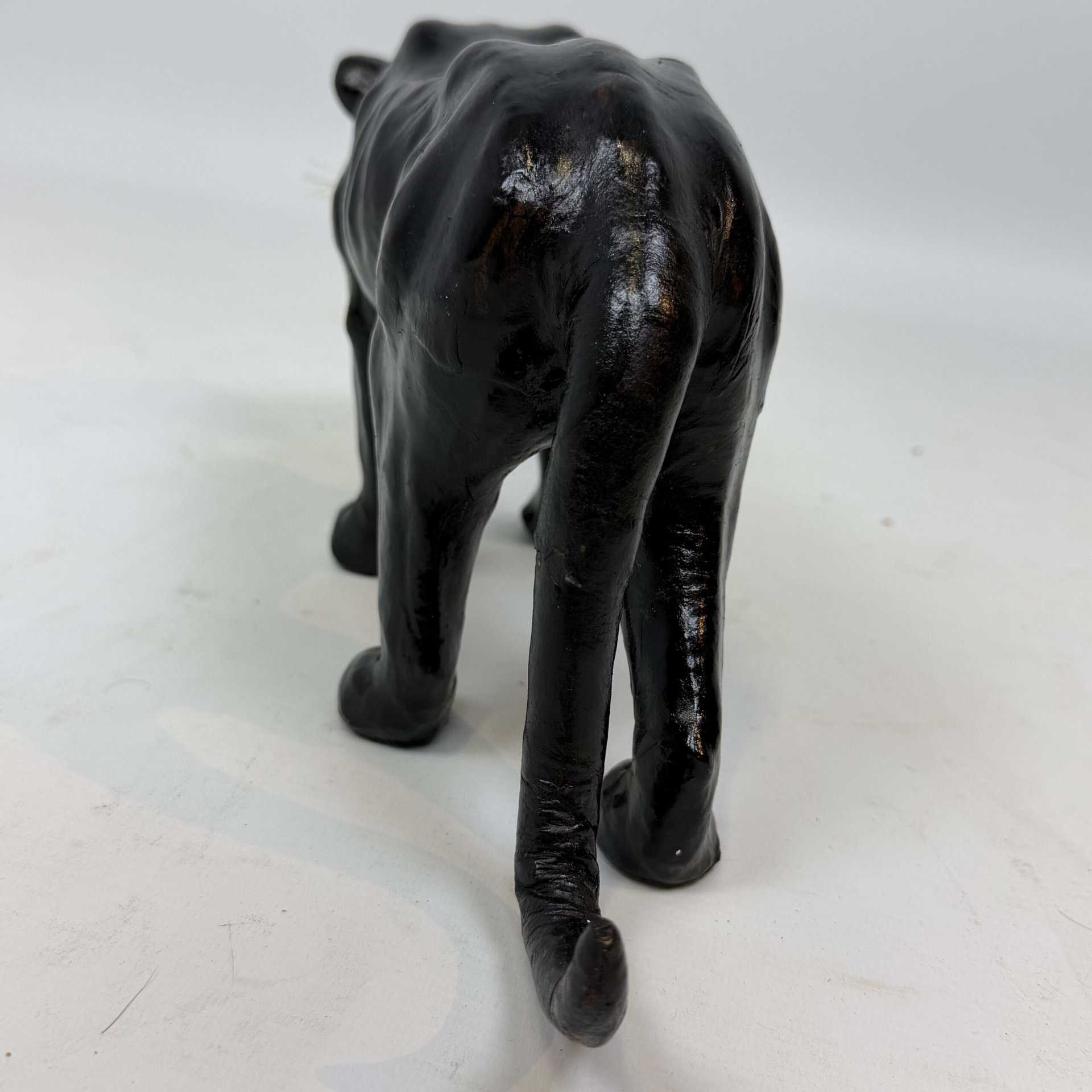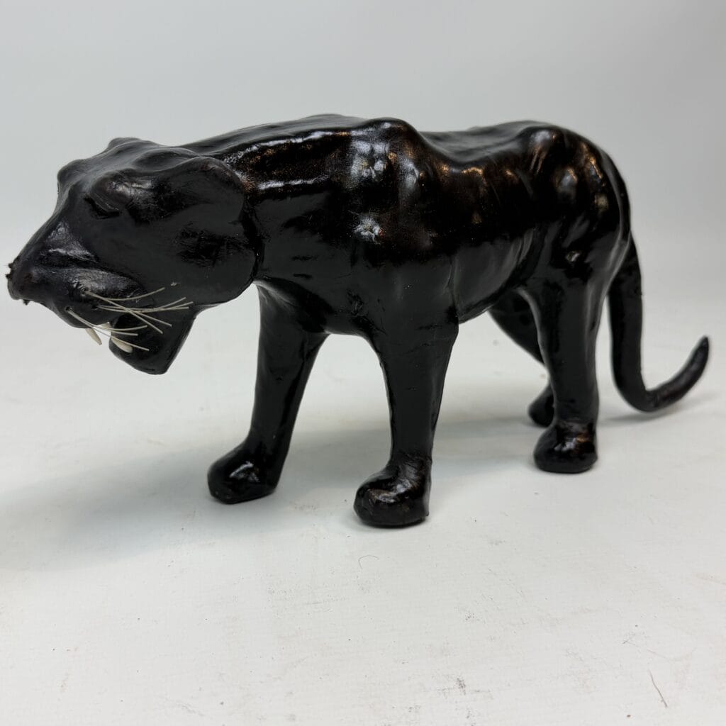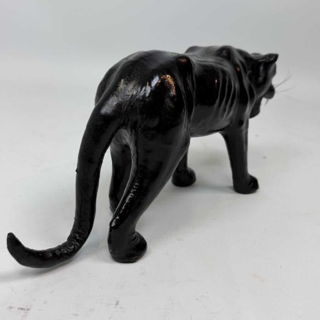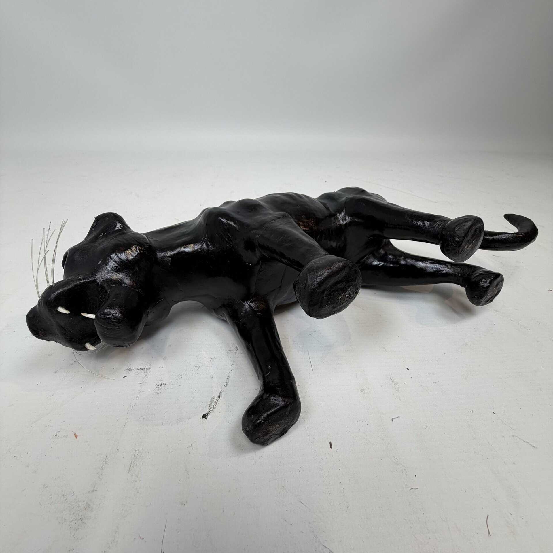Modelled and detailed sculpture of roaring panther with plastic teeth, whiskers and glass eyes