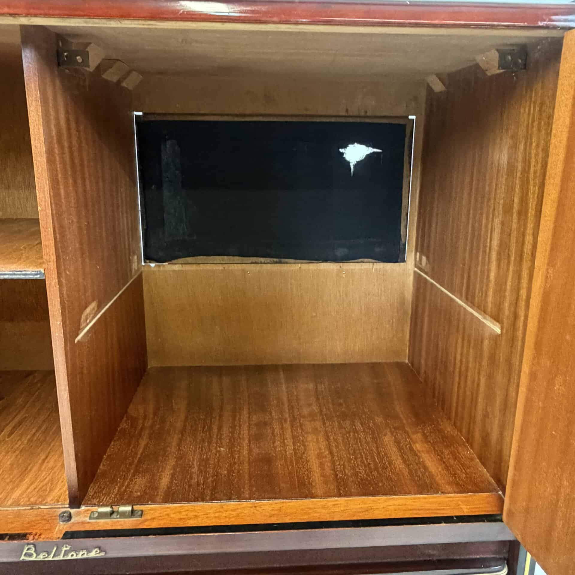 Behind the two doors, there was once a built-in radio and a record player