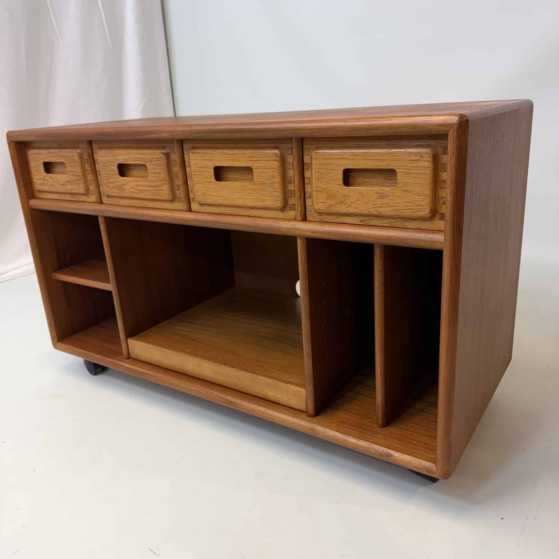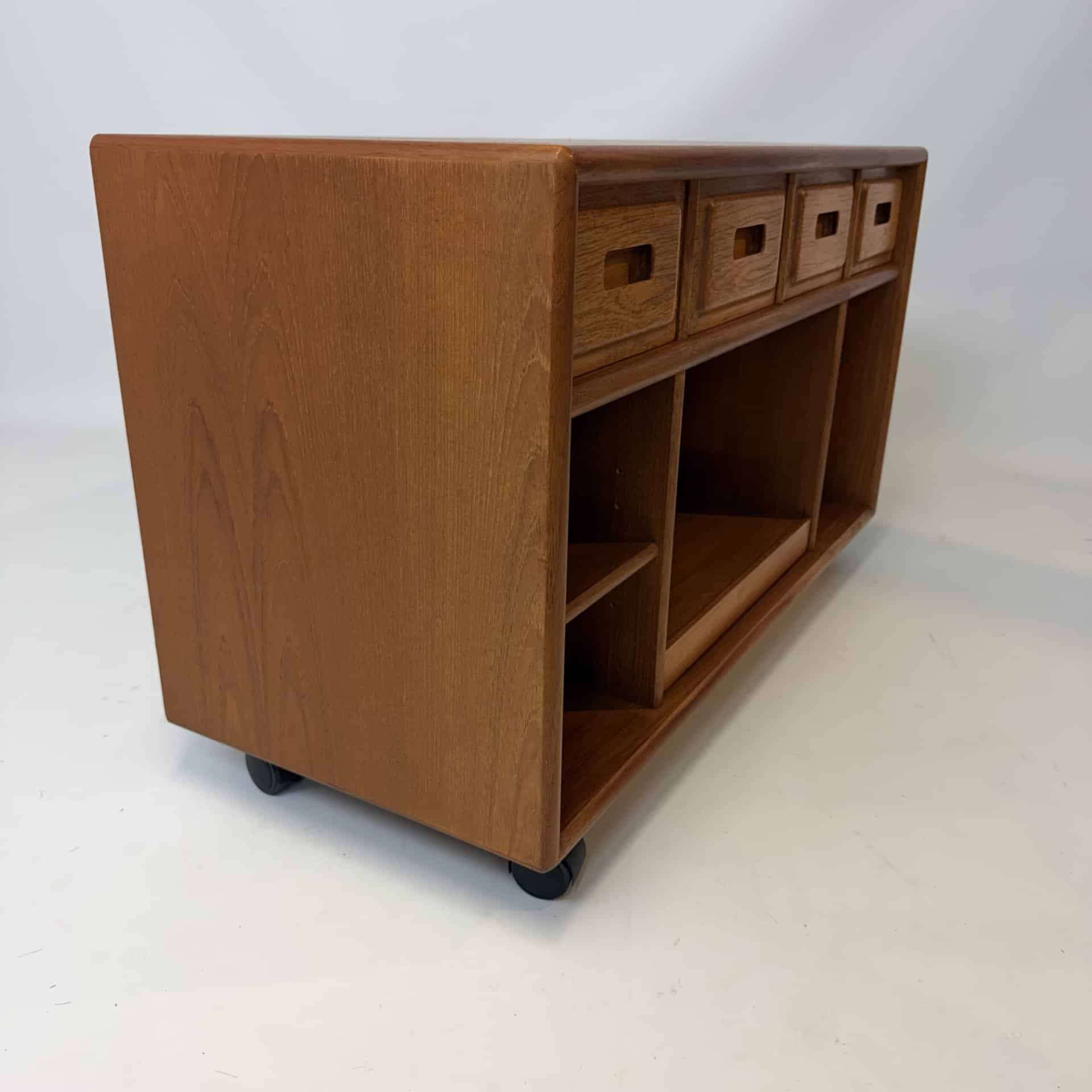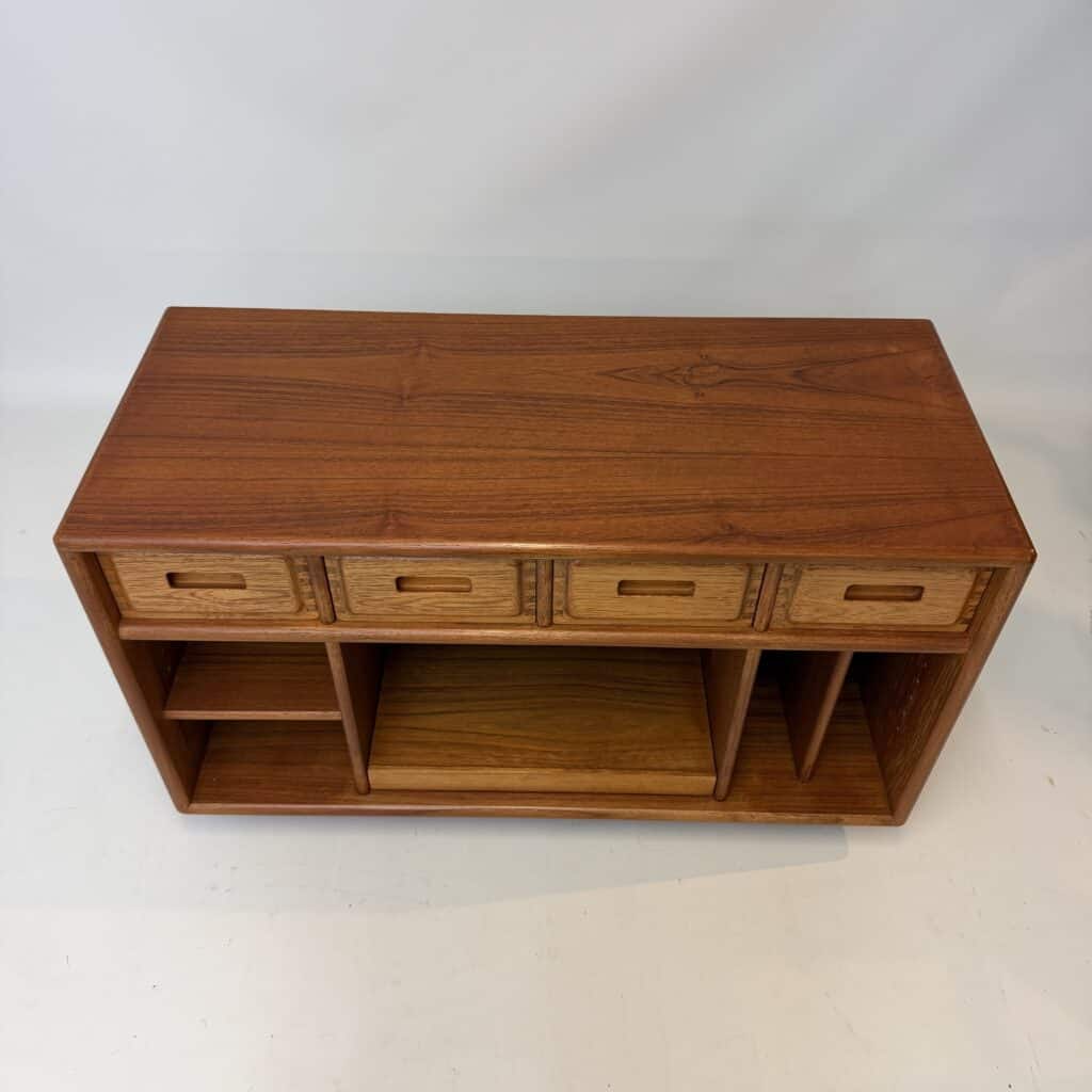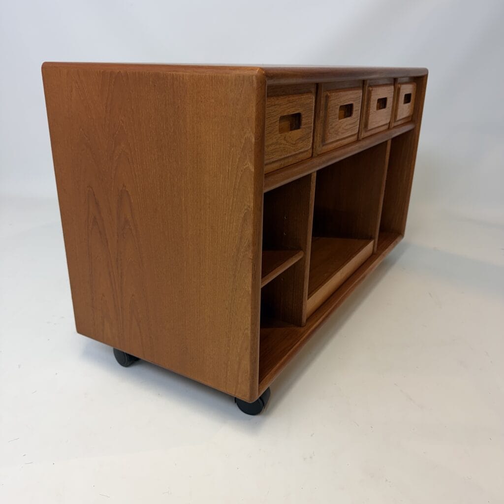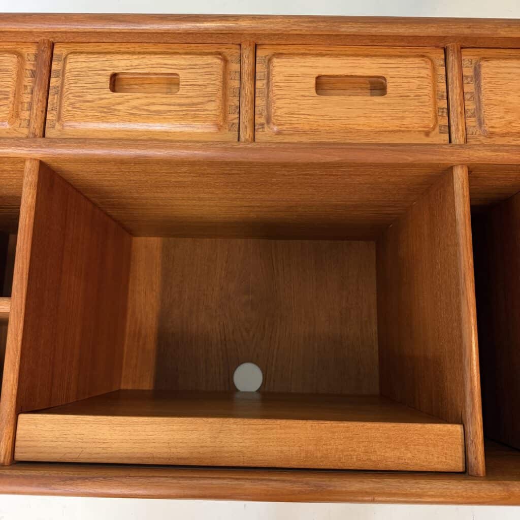 Teak sideboard with reddish-brown tone, typical of aged teak.
