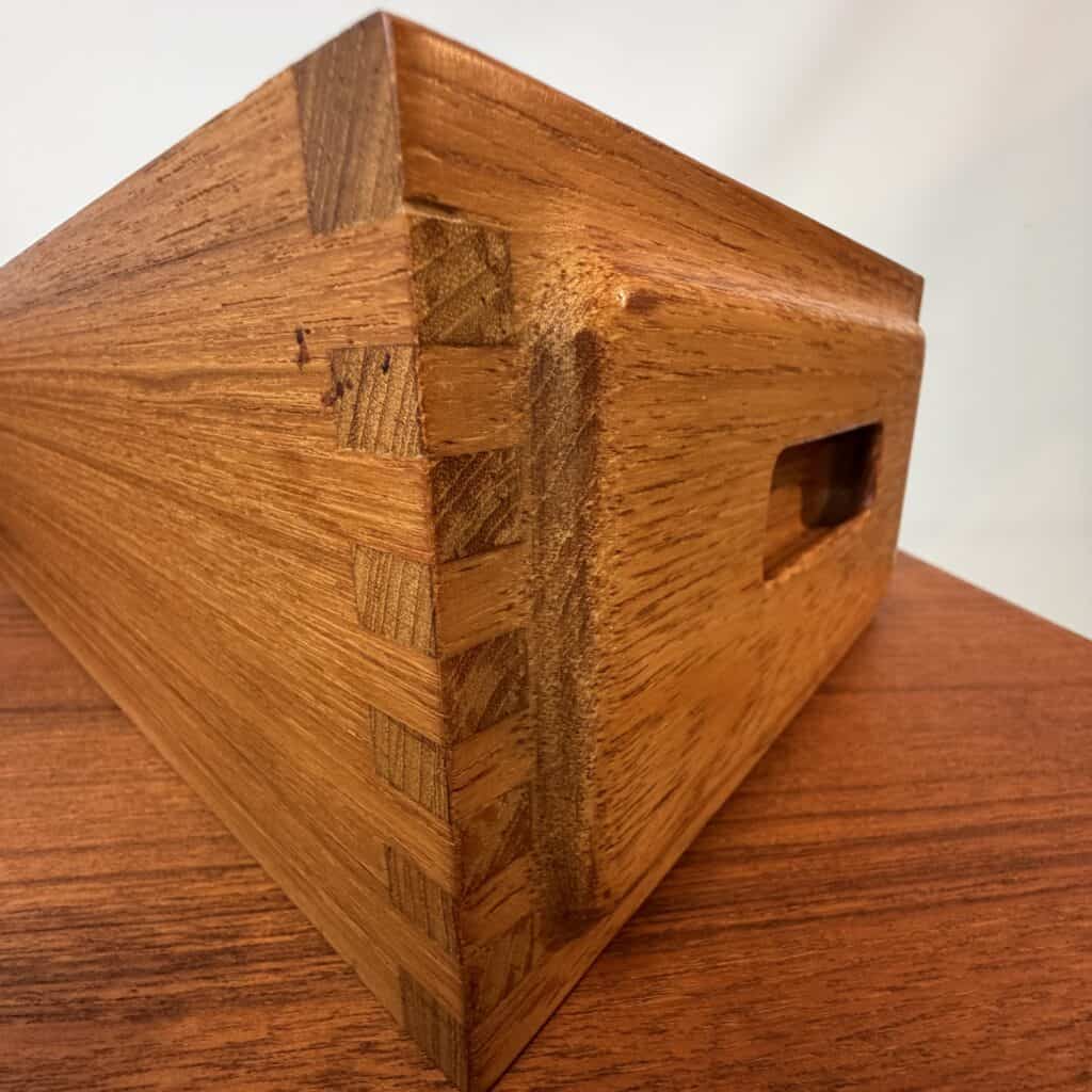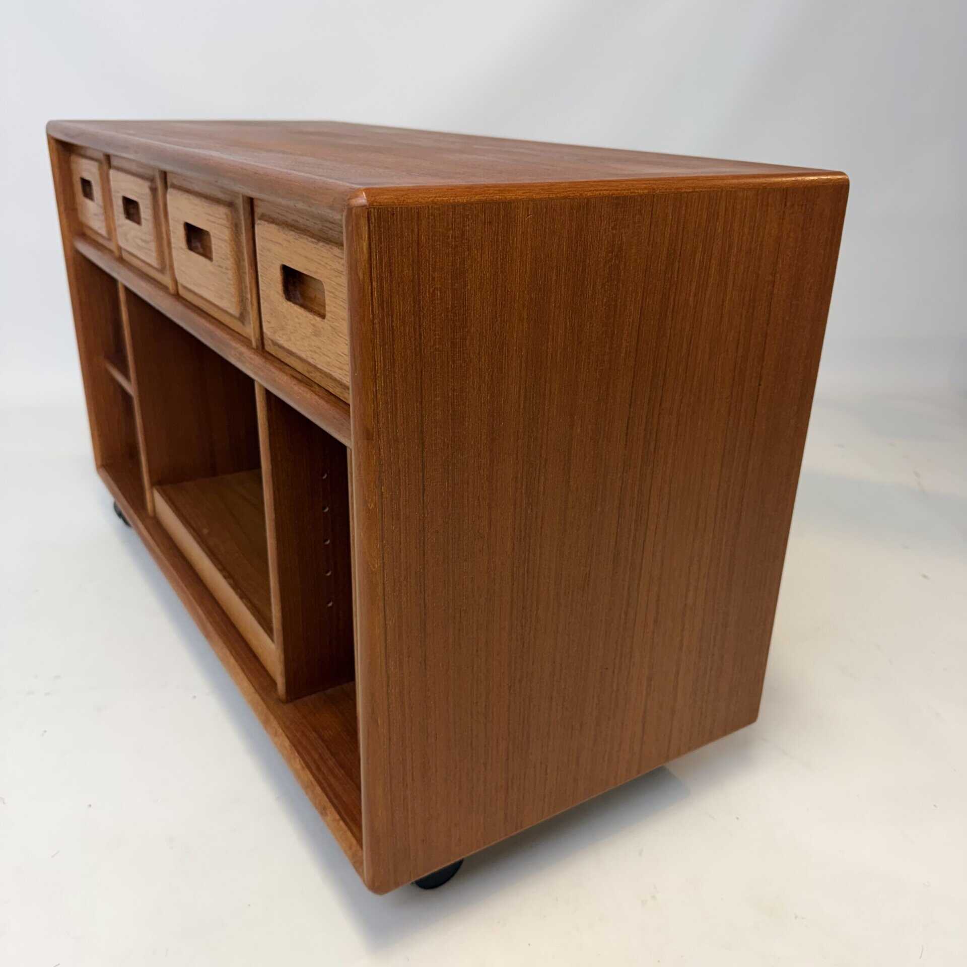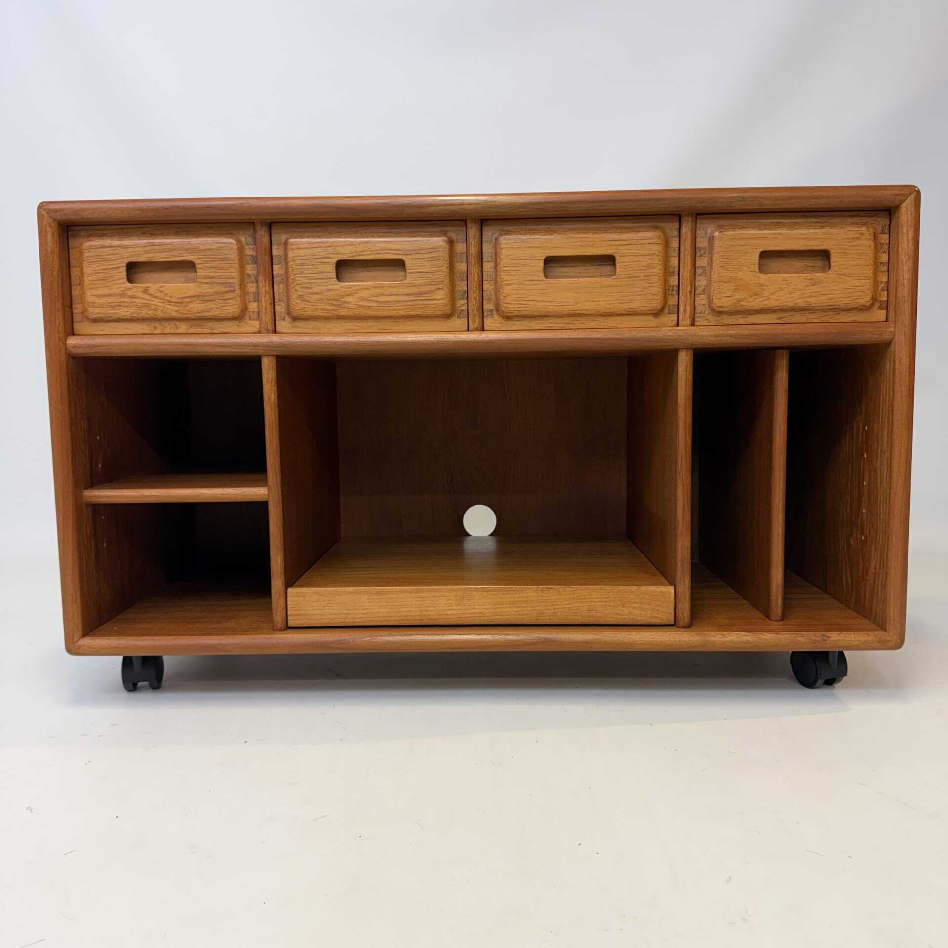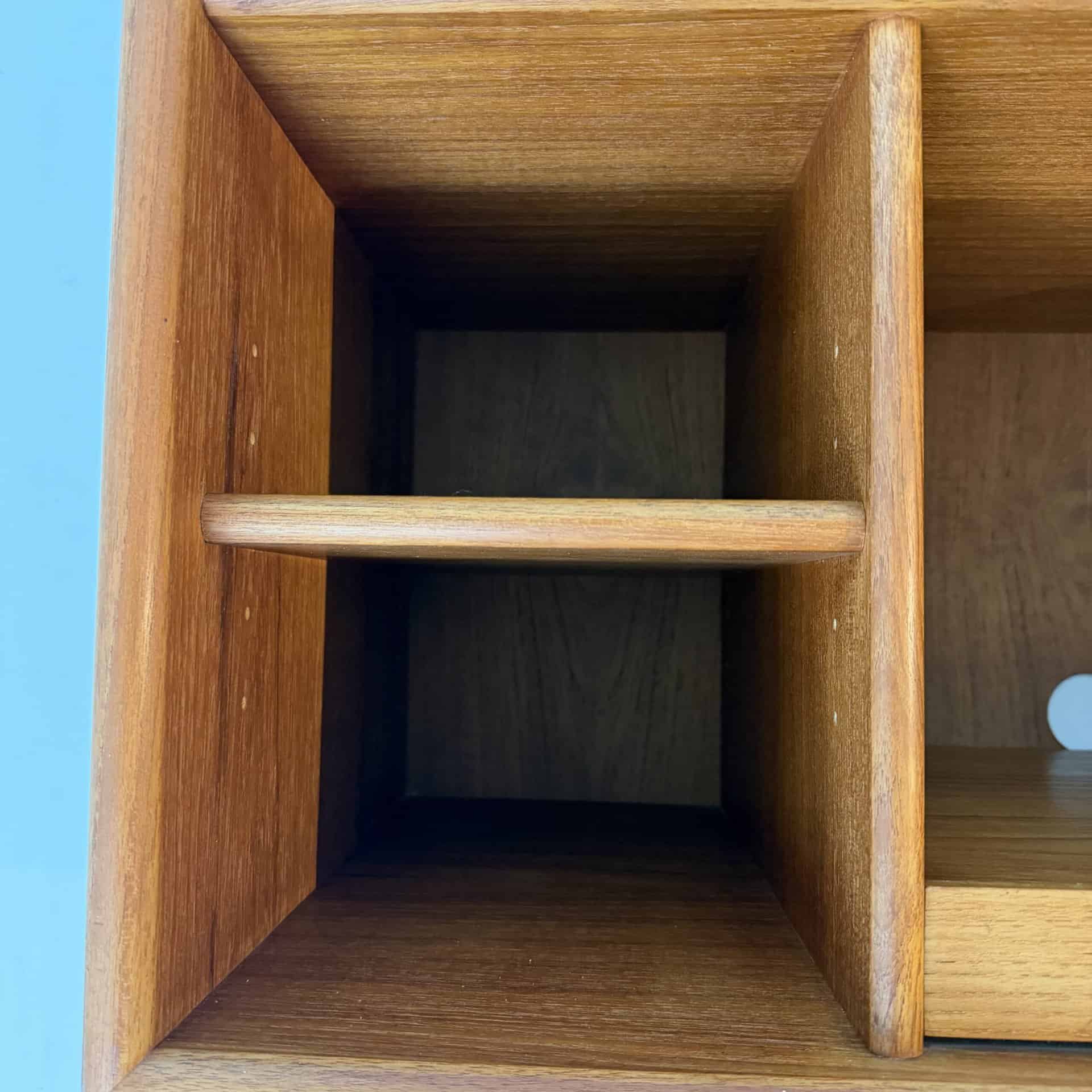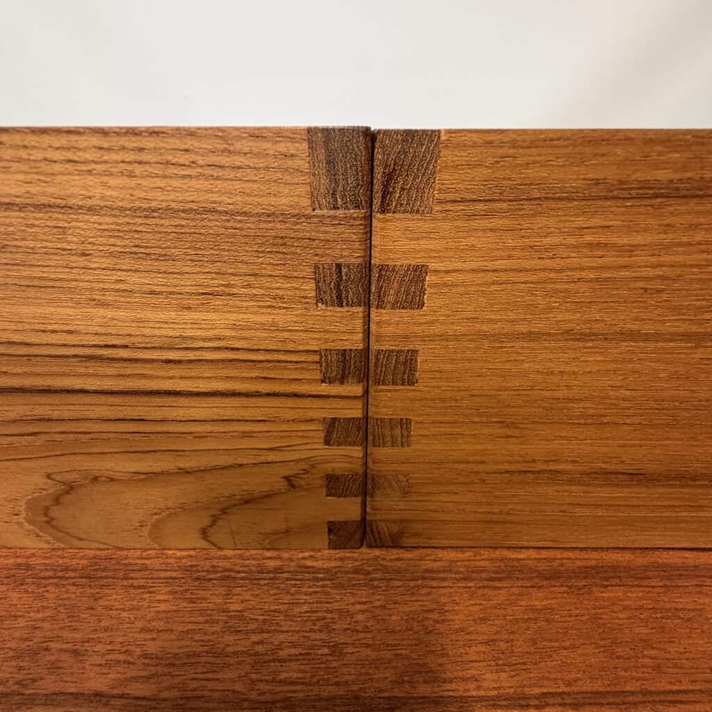Teak sideboard with reddish-brown tone, typical of aged teak.