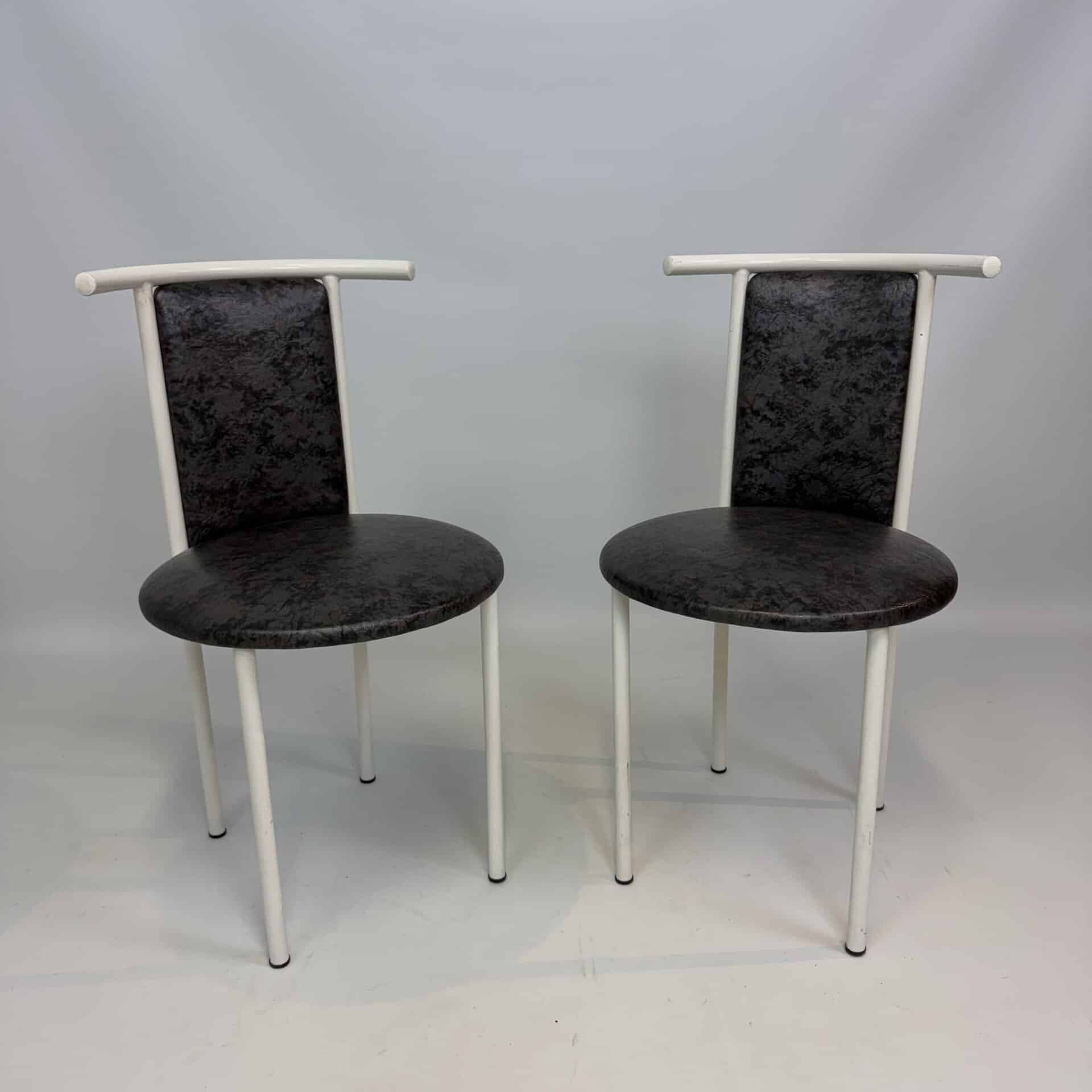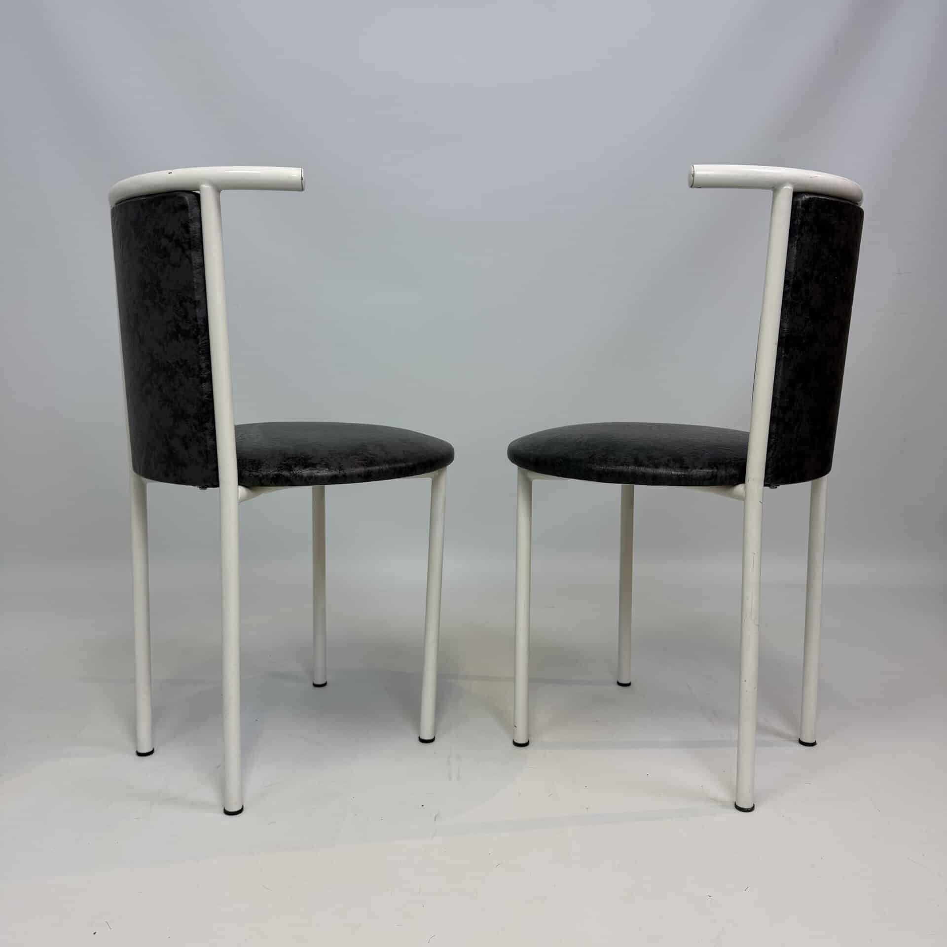 2 black armchairs and 2 chairs (1 brown and 1 black version)