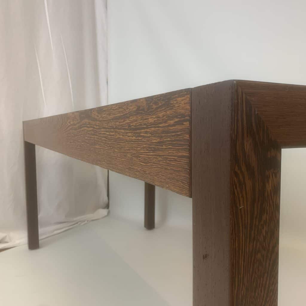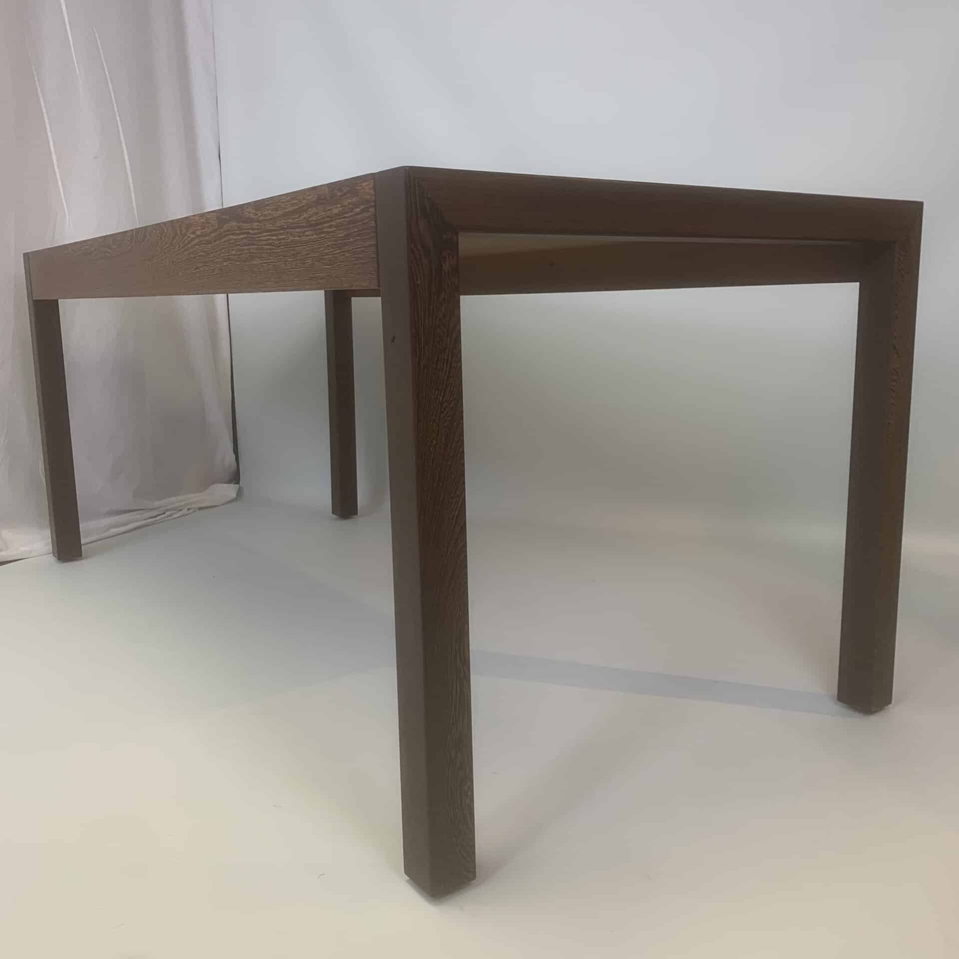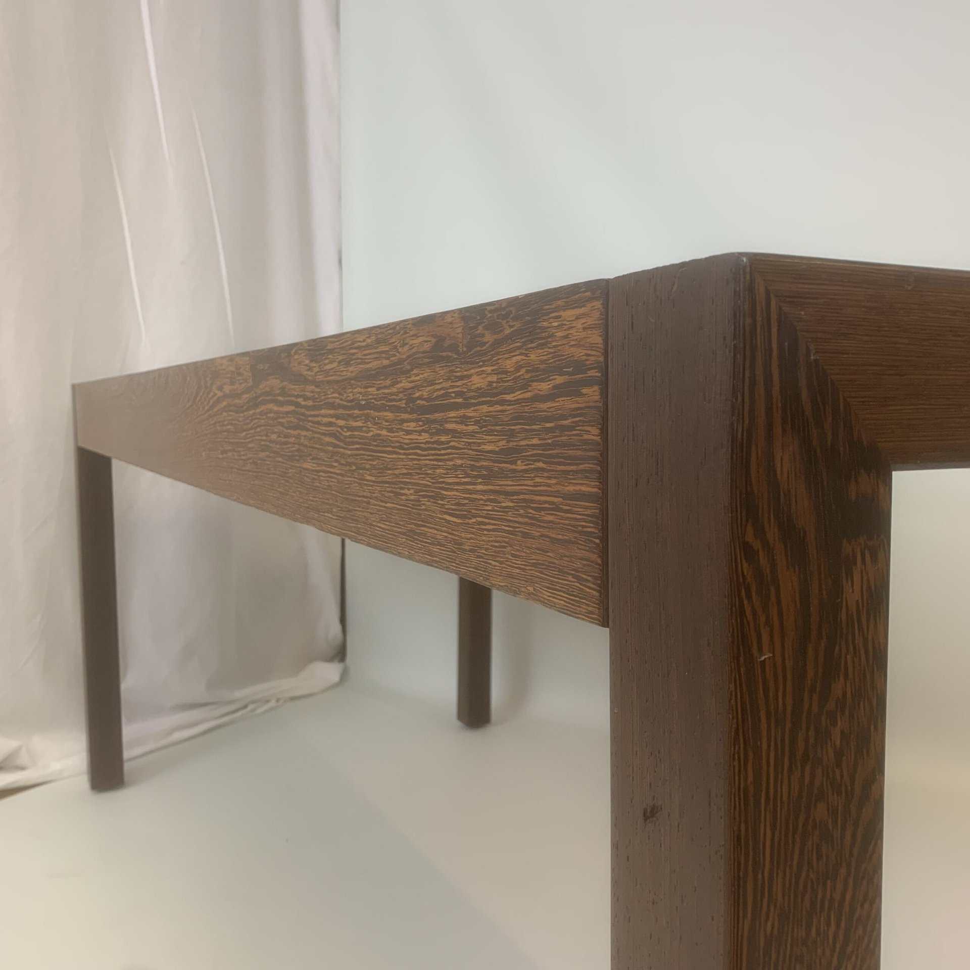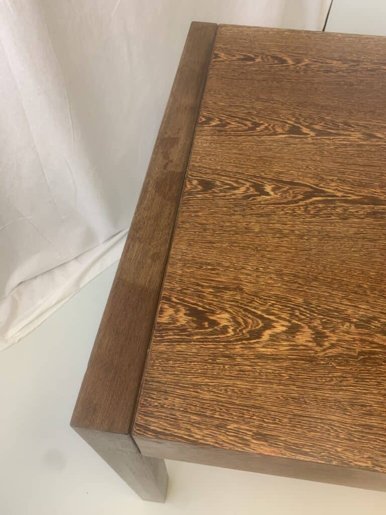 Desk with modernist lines and veneered top in quarter-sawn oak (also called tiger oak)