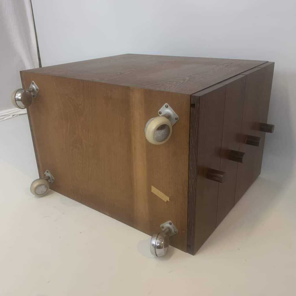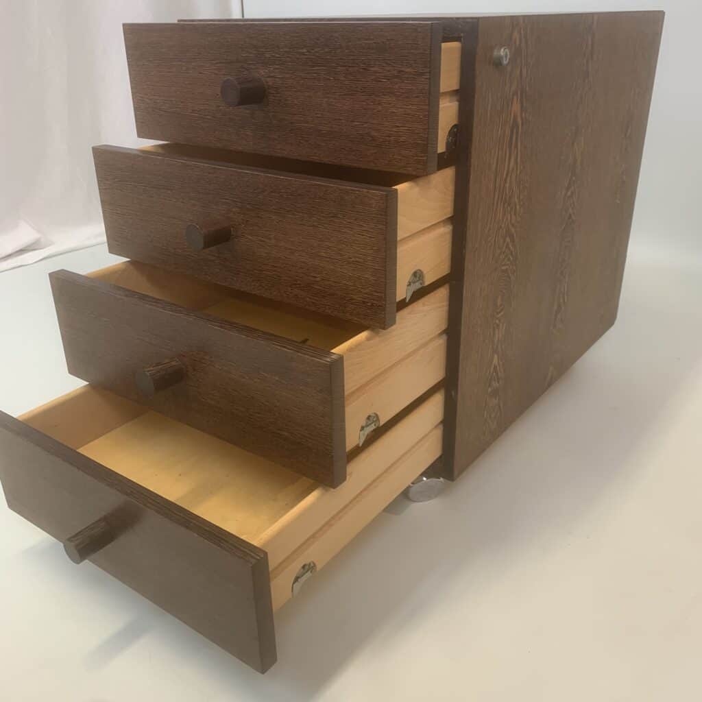 The mobile drawer unit is also fully wrapped with quarter-sawn oak