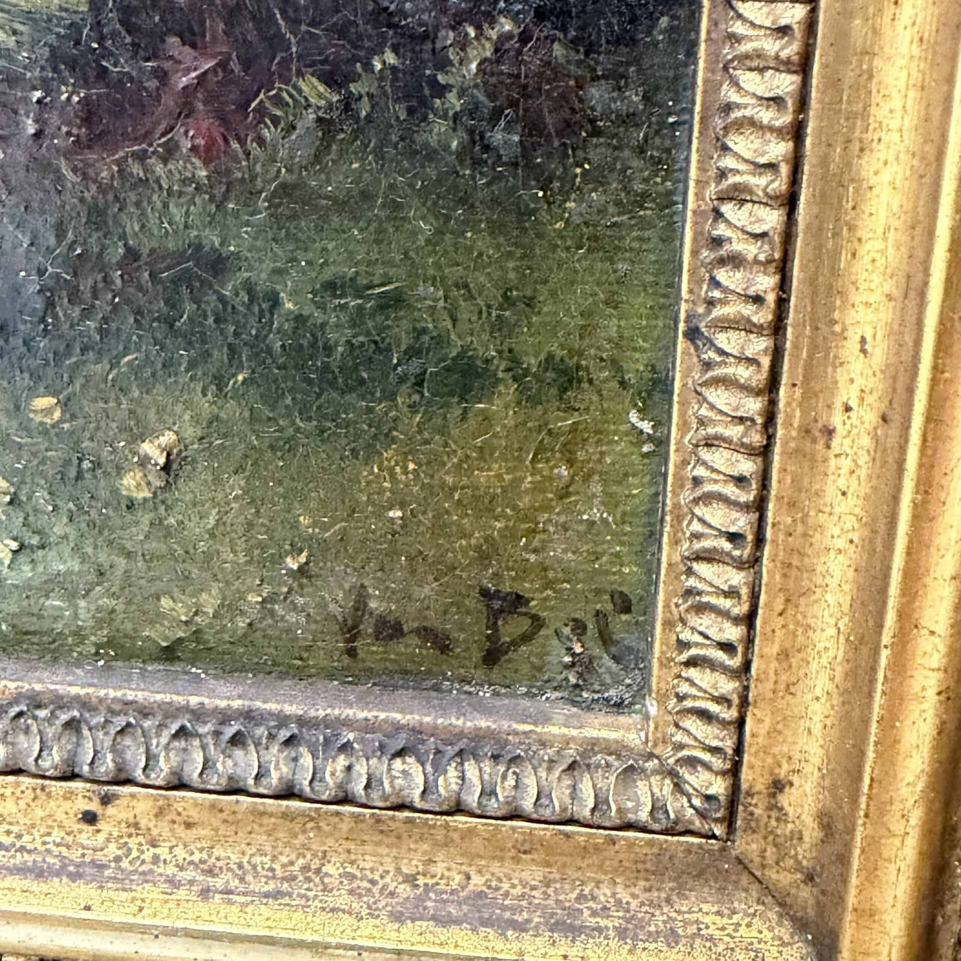 The painting is set in an elegant, heavily gilded frame with leaf motifs