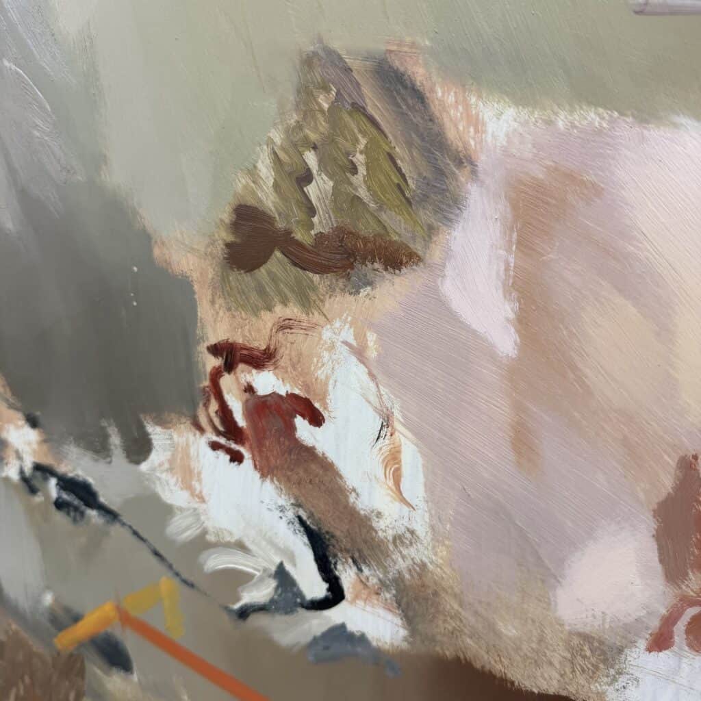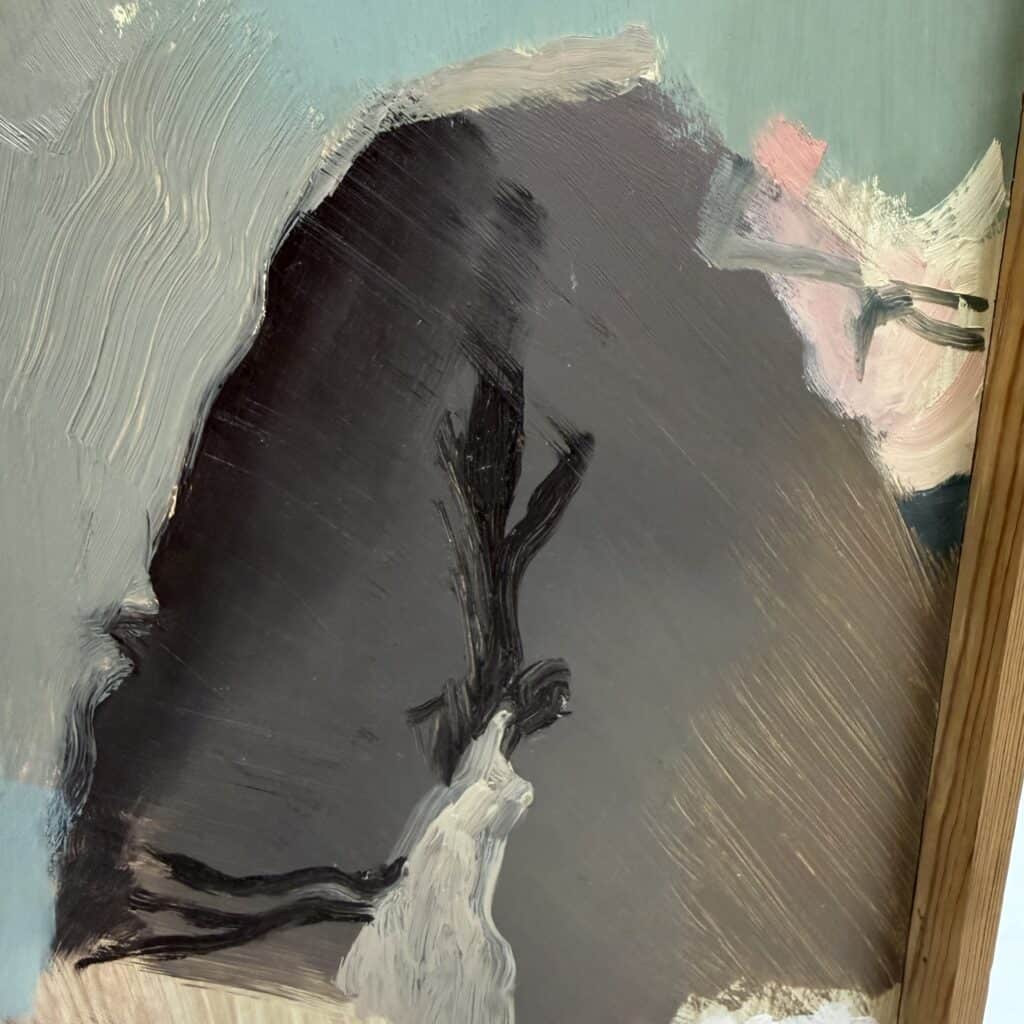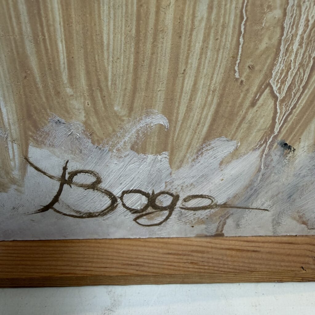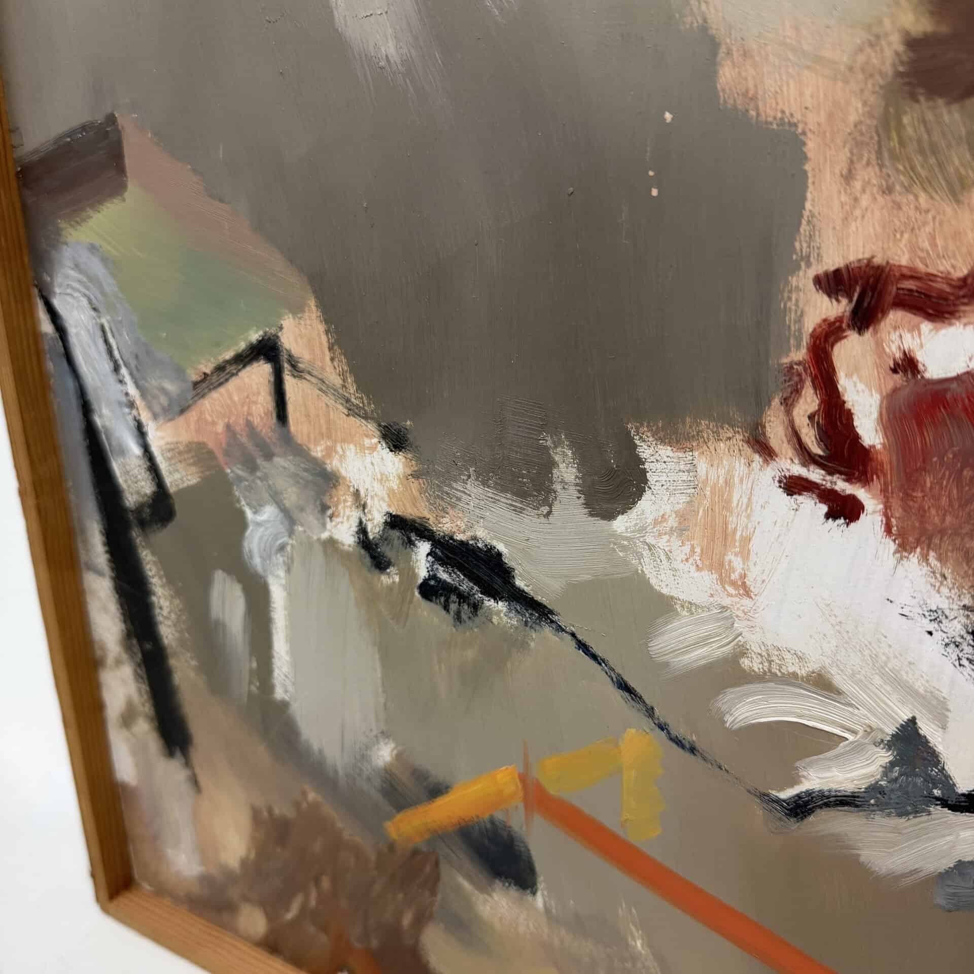 Wooden frame, the canvas is set back inside the frame which gives a subtle “window” effect which adds depth to his often “blurred” and elusive subjects.