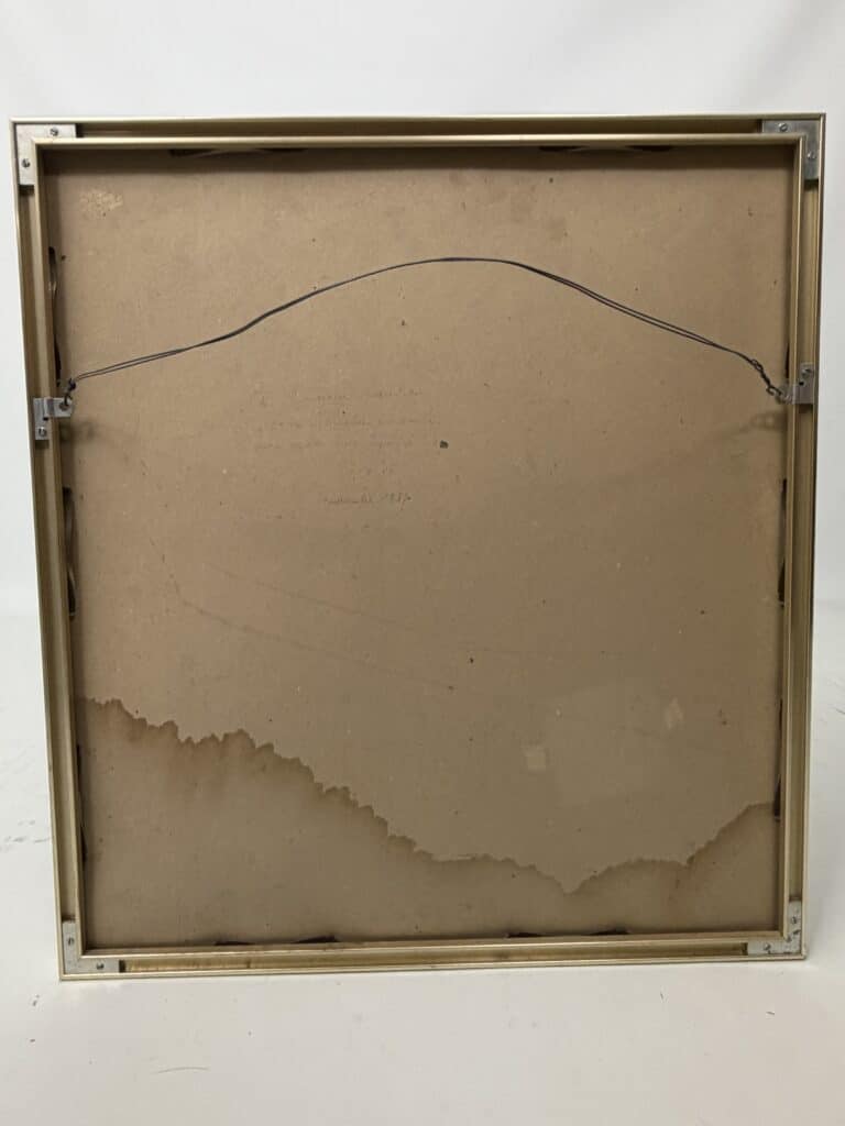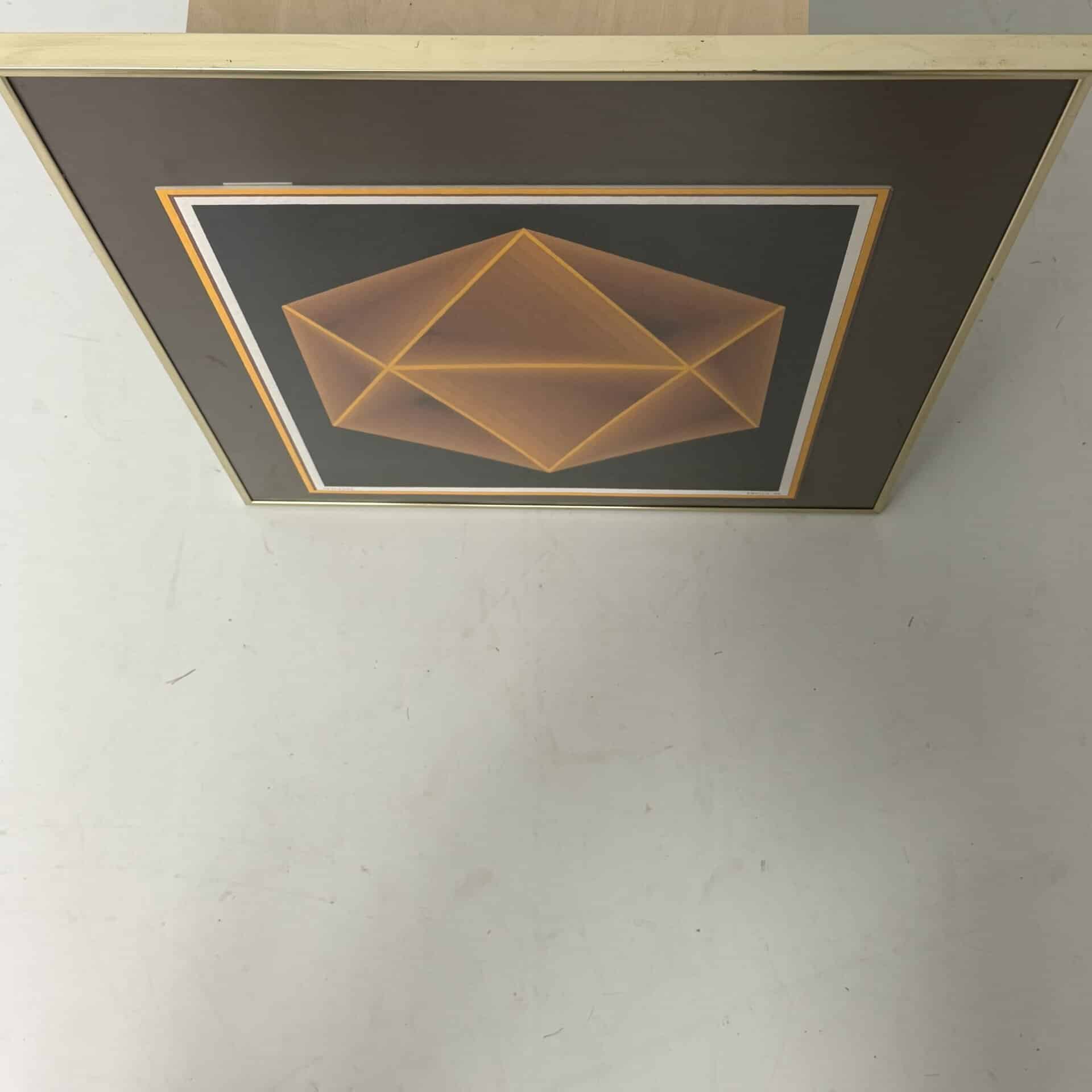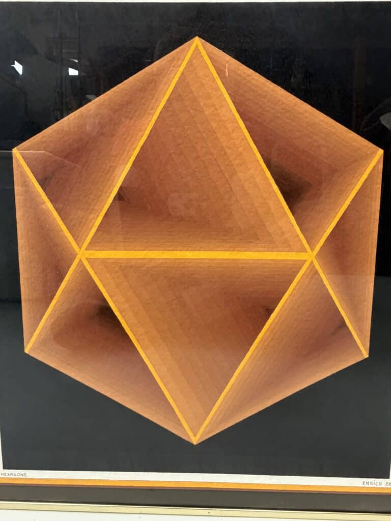 It is an optical art piece that plays with the perception of depth and geometric shapes.