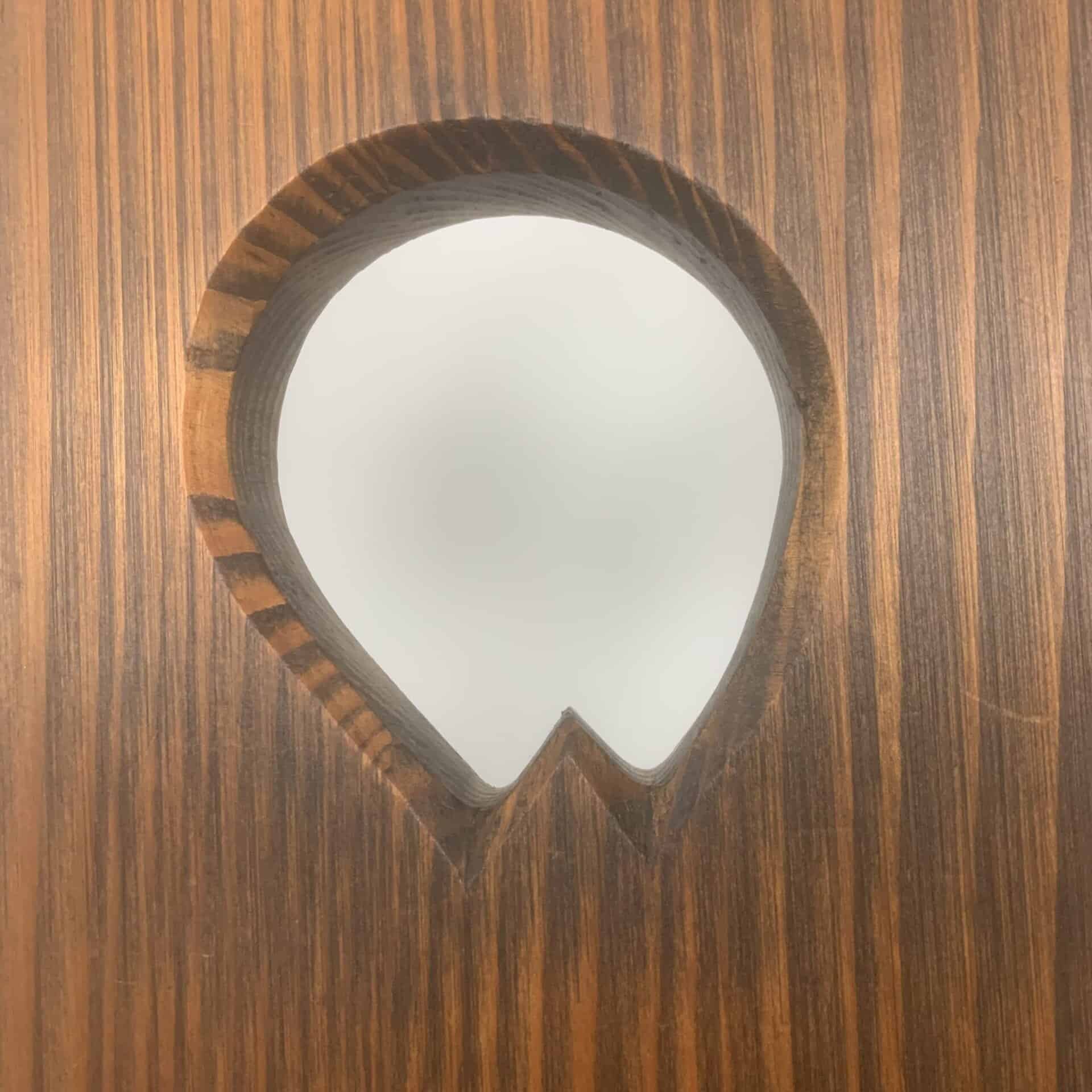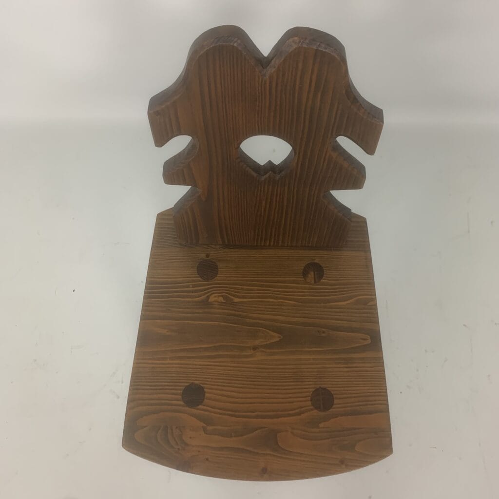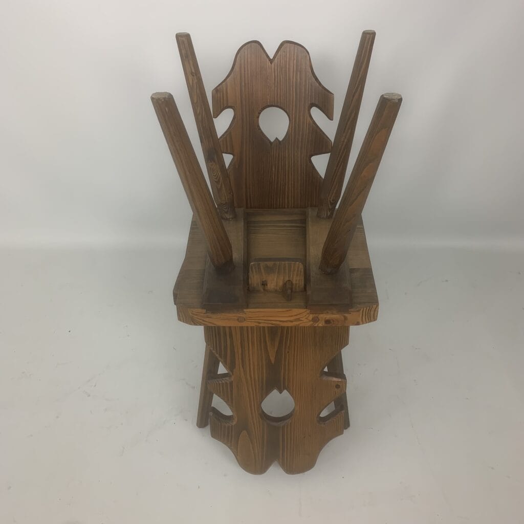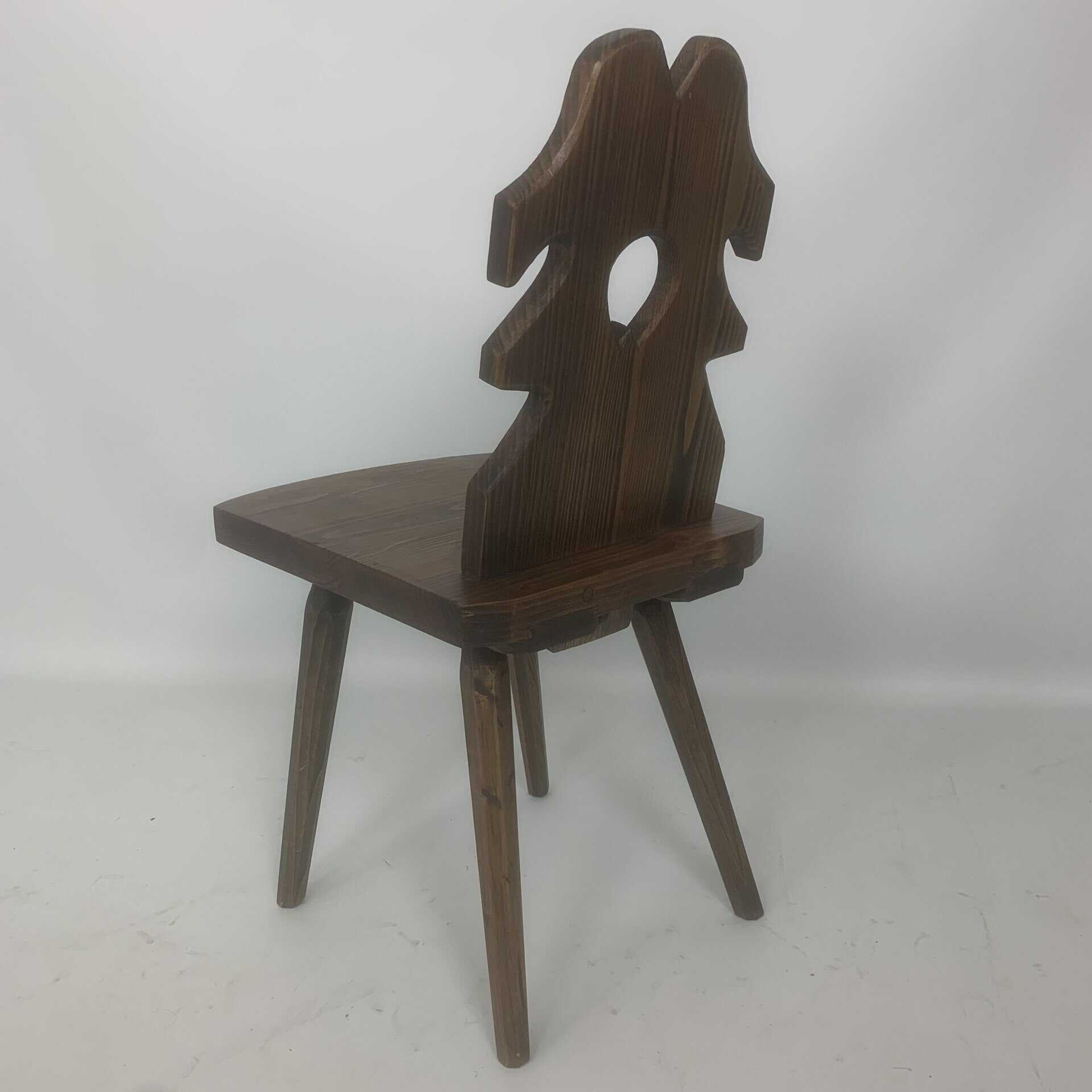 Dark stained solid wood. Raw, bold, and heavy in presence, with chunky lines and sculptural backs. The visible grain adds to the rustic-modern appeal. The round plugs visible on the seat suggest traditional mortise-and-tenon joinery, pegged through the seat for extra strength