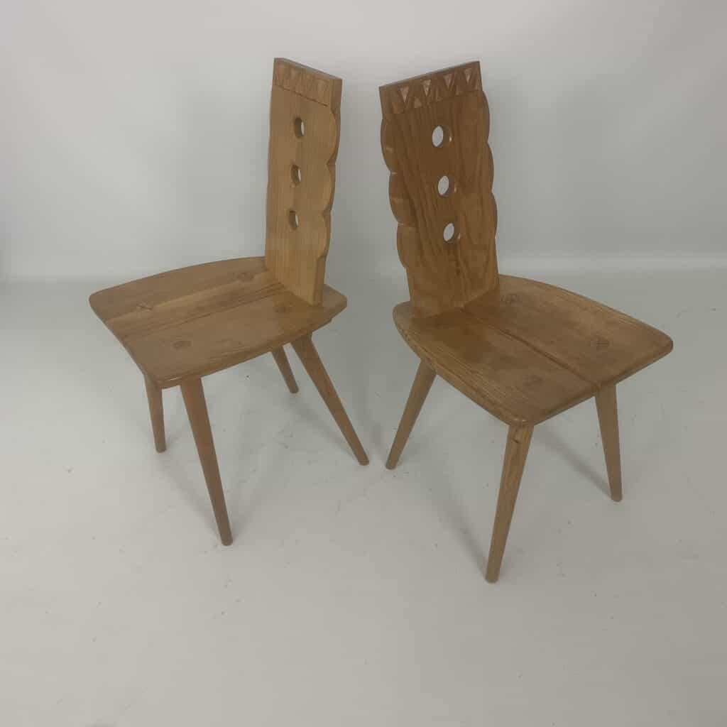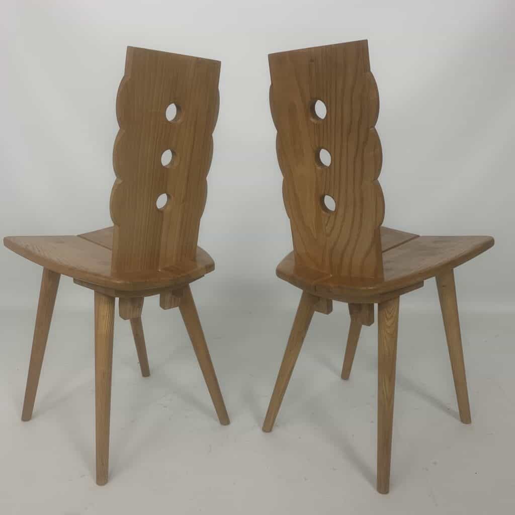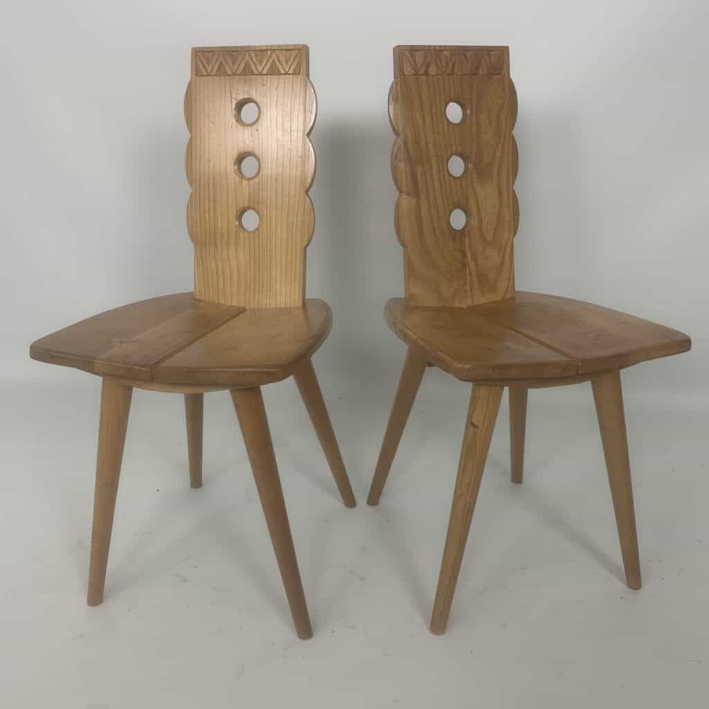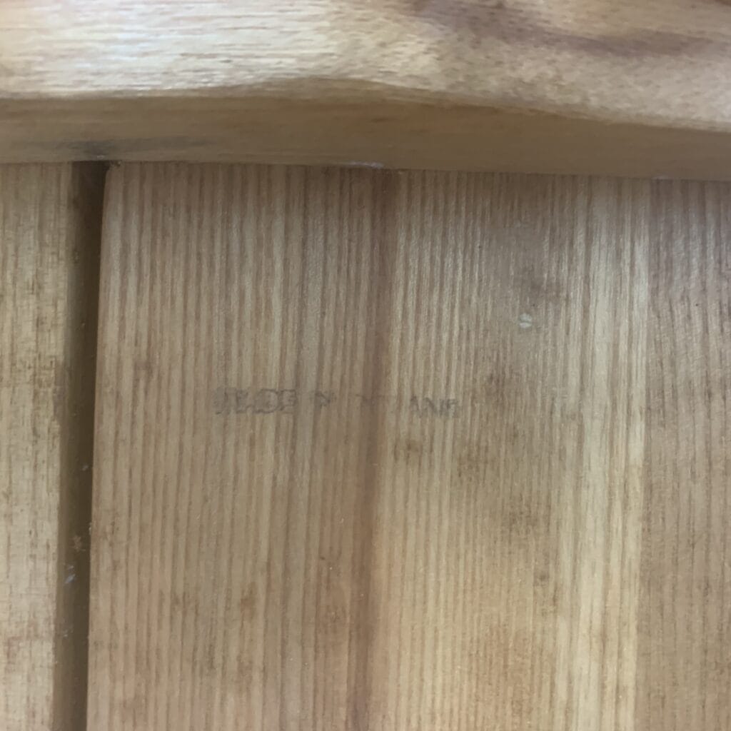 These triangular carvings on the top rail and the three circular cutouts in the backrest are distinctive
