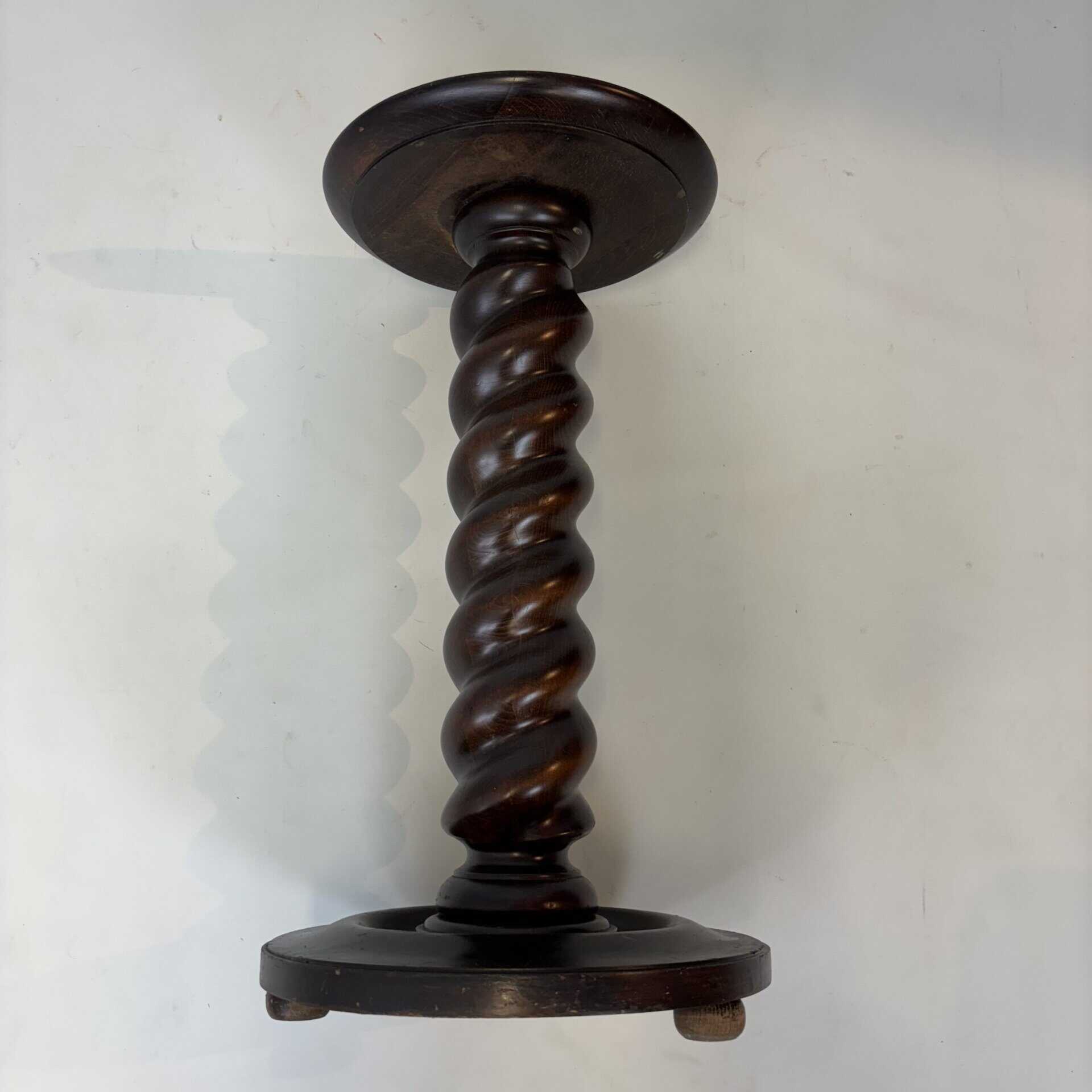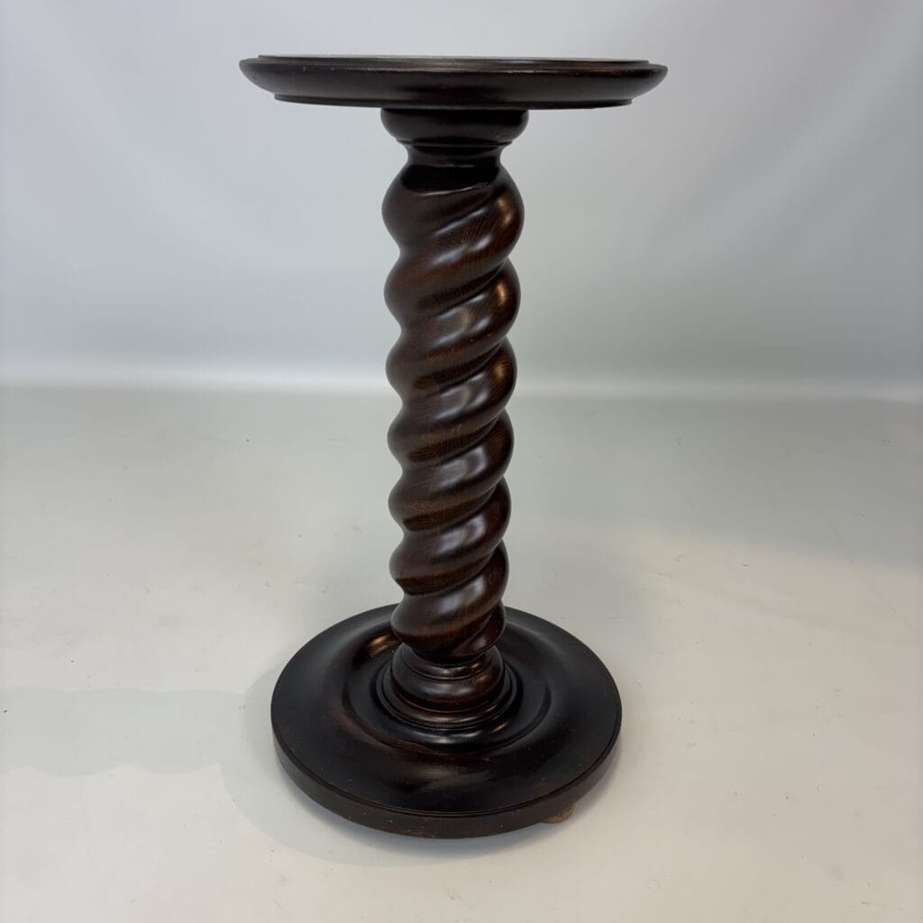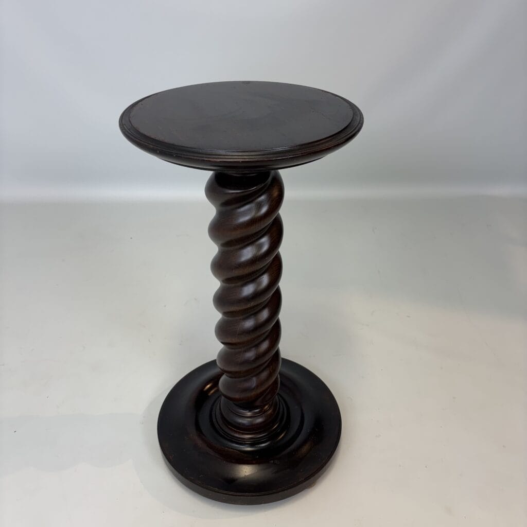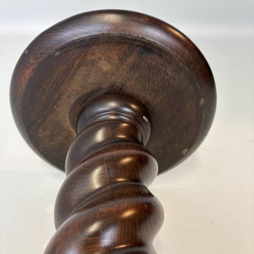 Dark heavy oak with barley twist, also known as a Solomonic column, features a design of turned, spiral grooves that ascend the central column