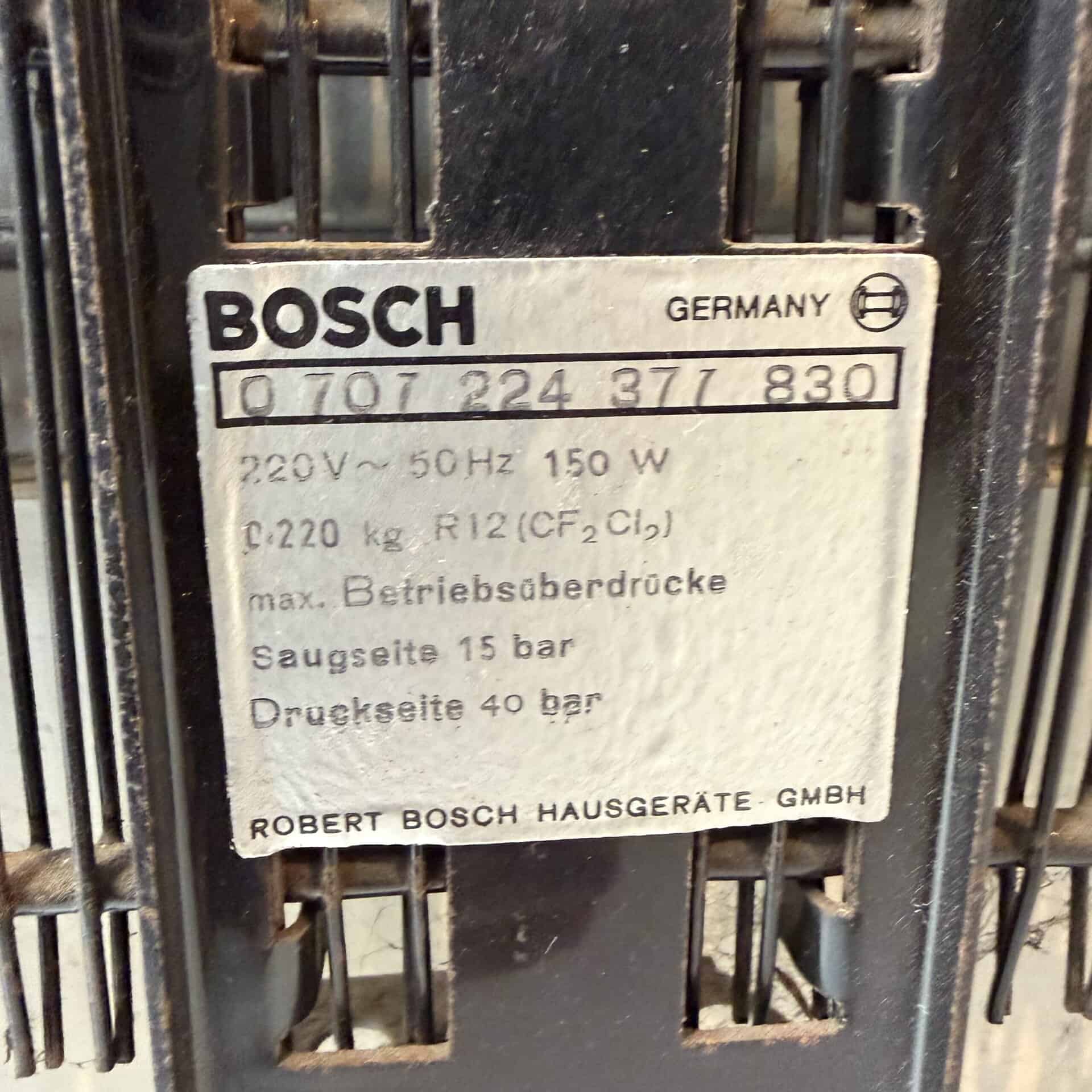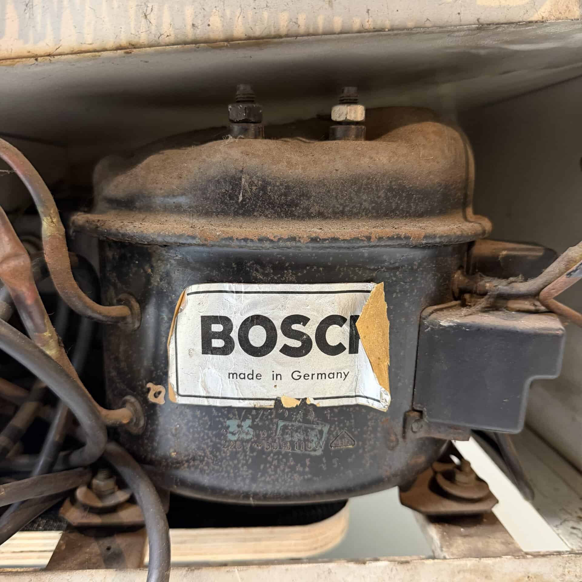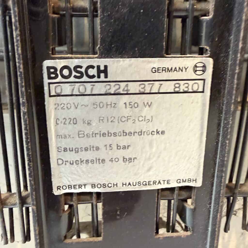 The refrigerator is in working order and is equipped with a BOSCH compressor
