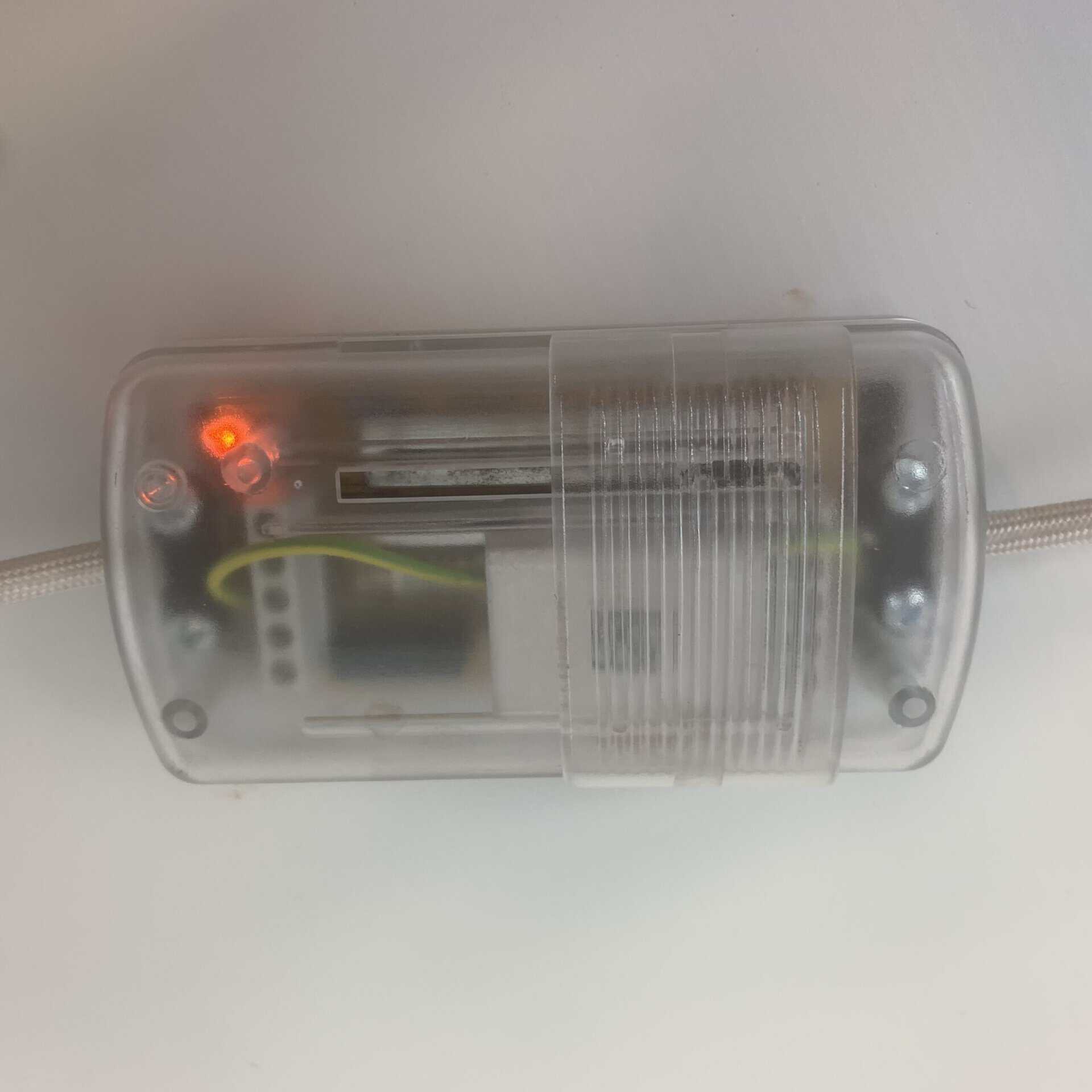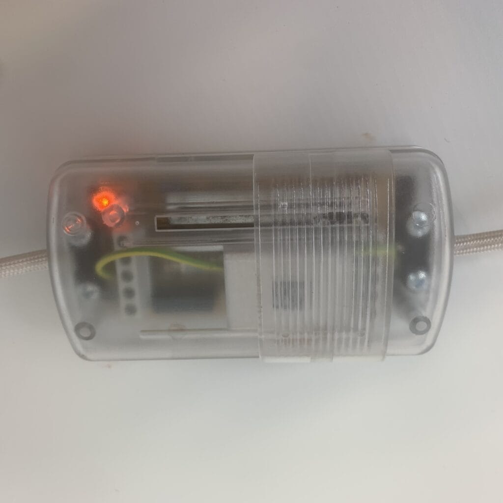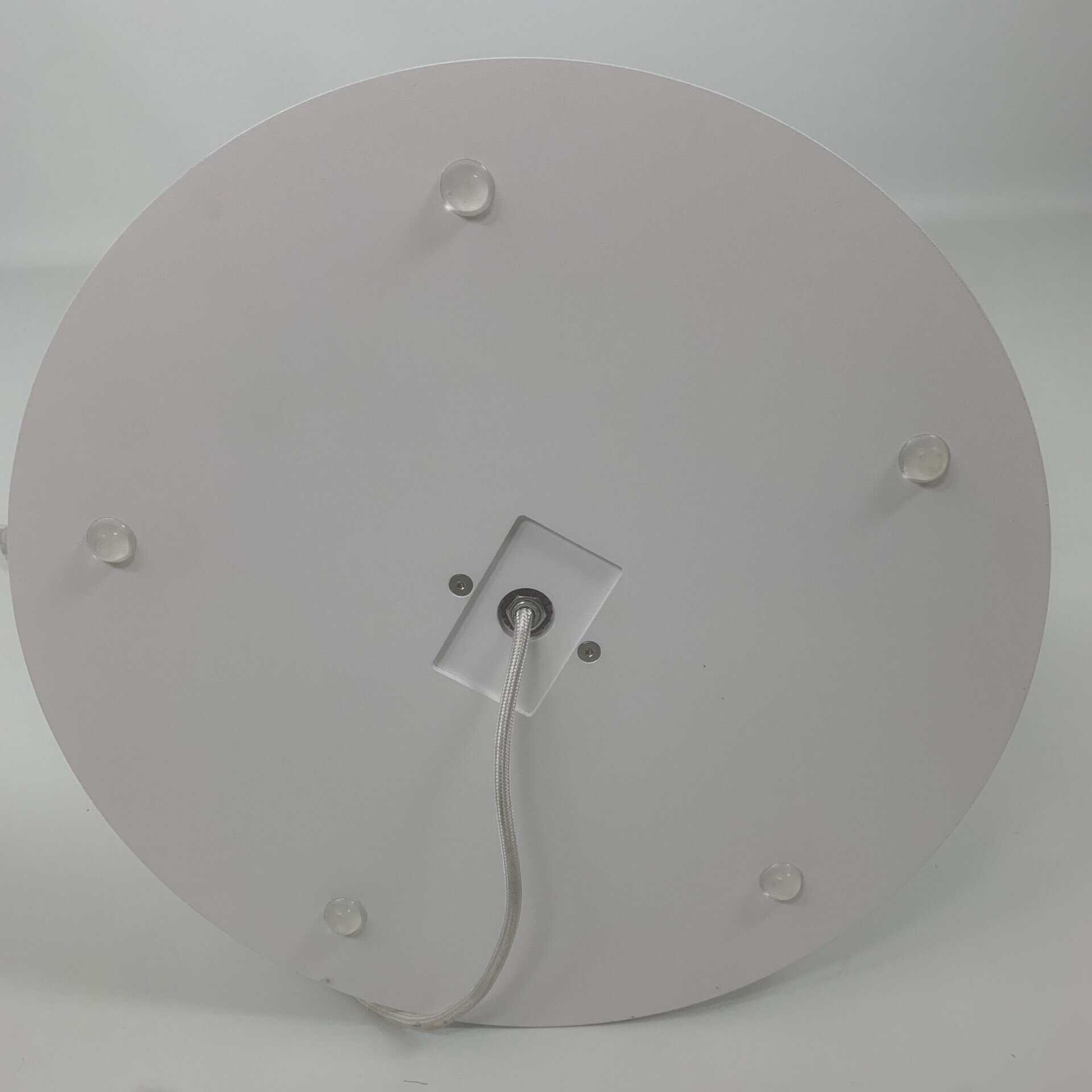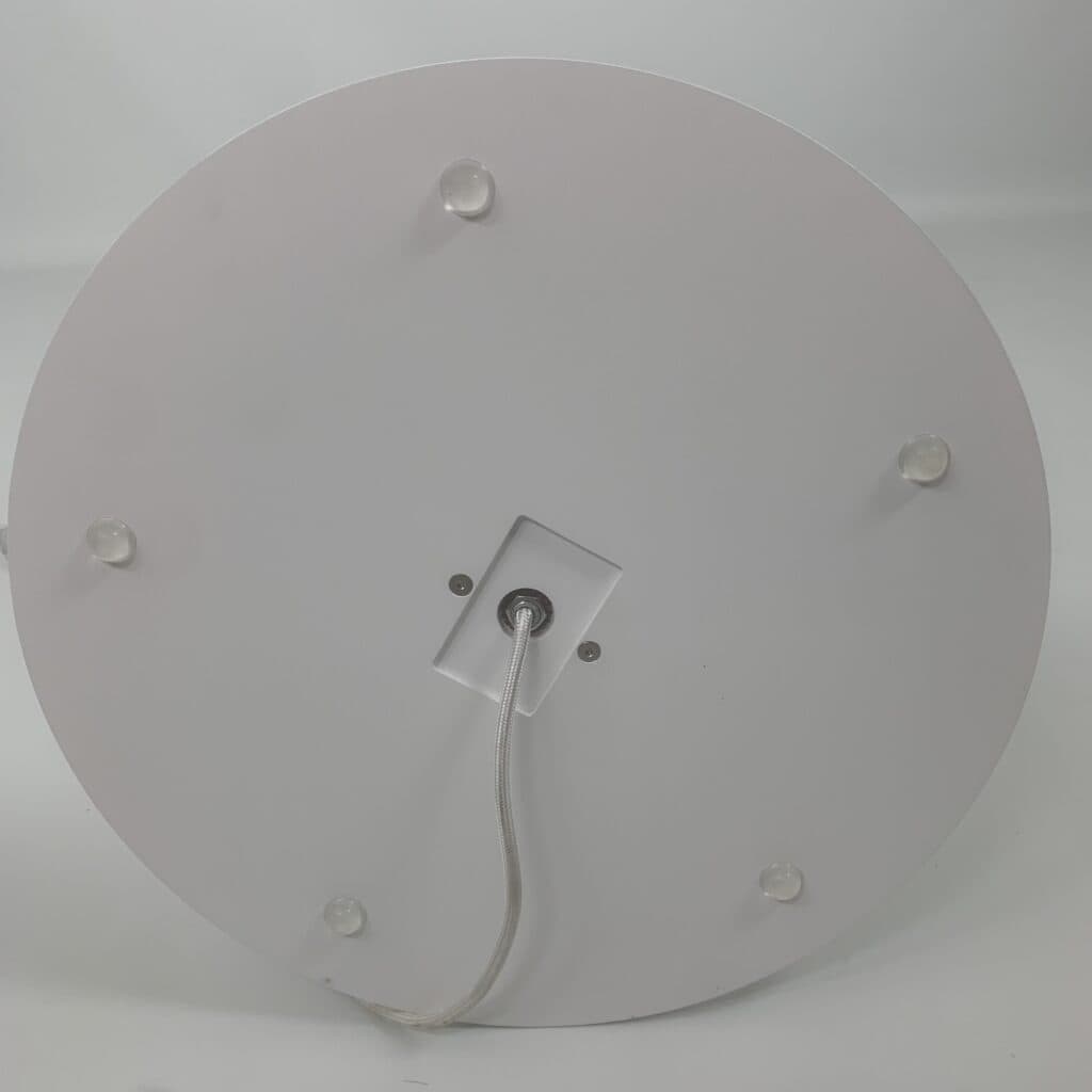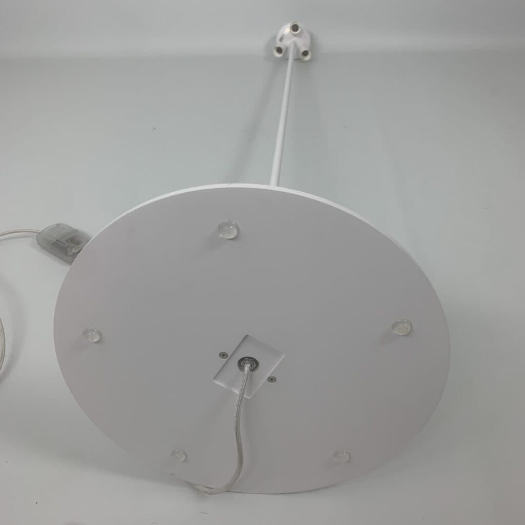 This floor lamp with dimmer has white lacquered metal base and a lampshade composed of removable grey plastic diamond-shaped slats in ABS