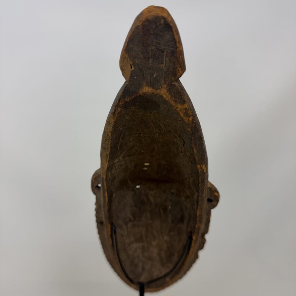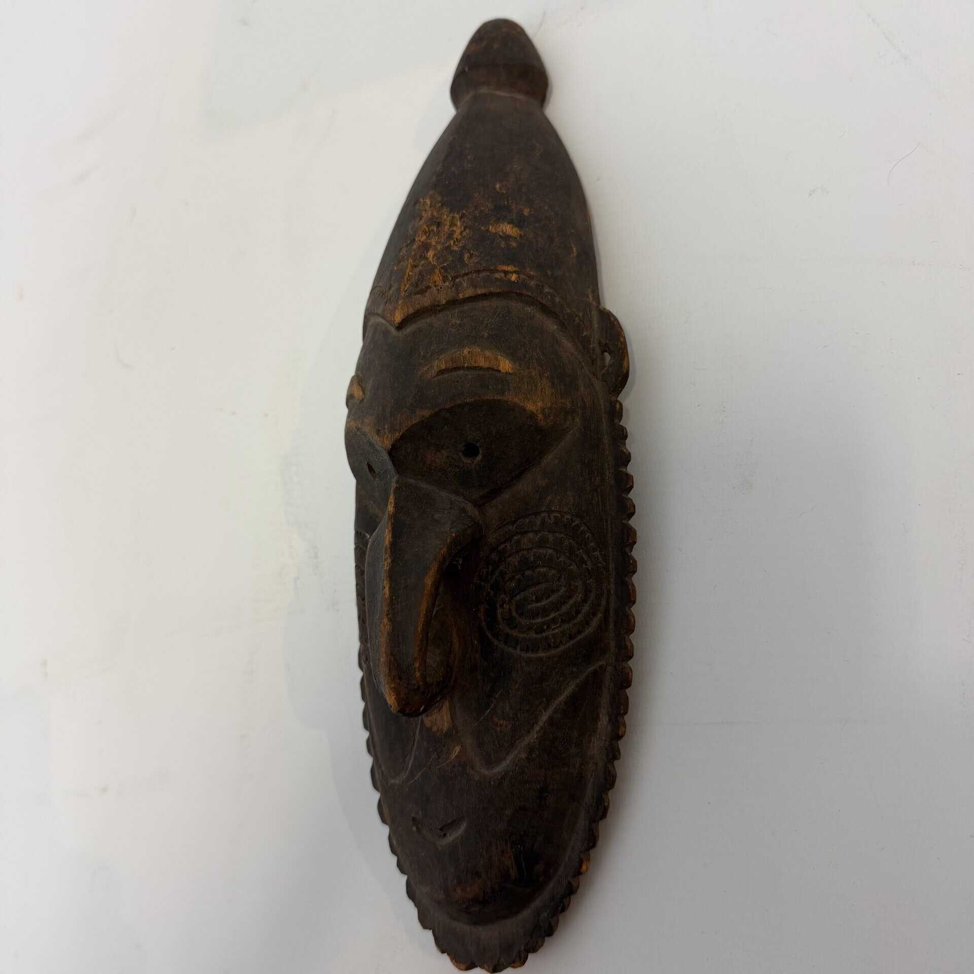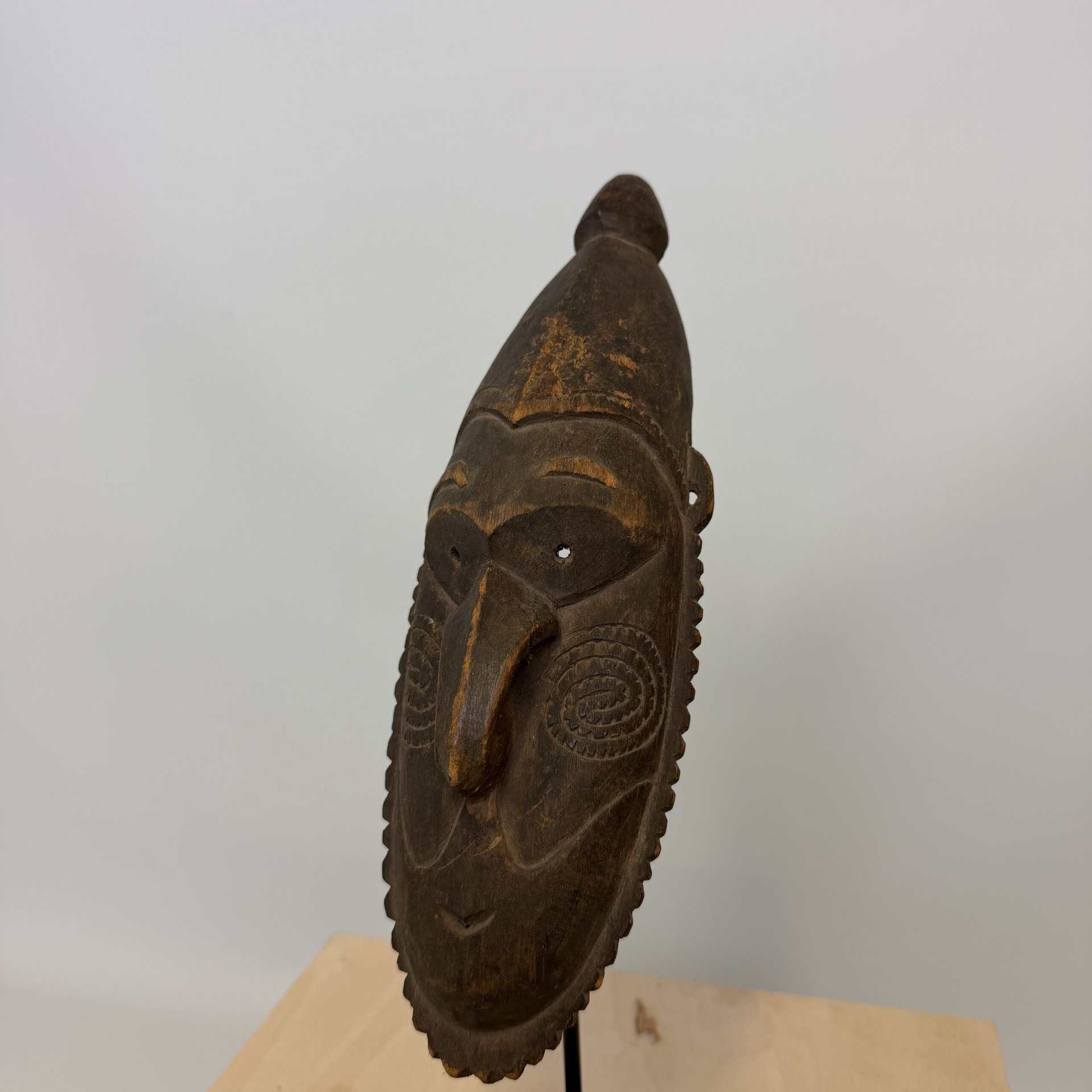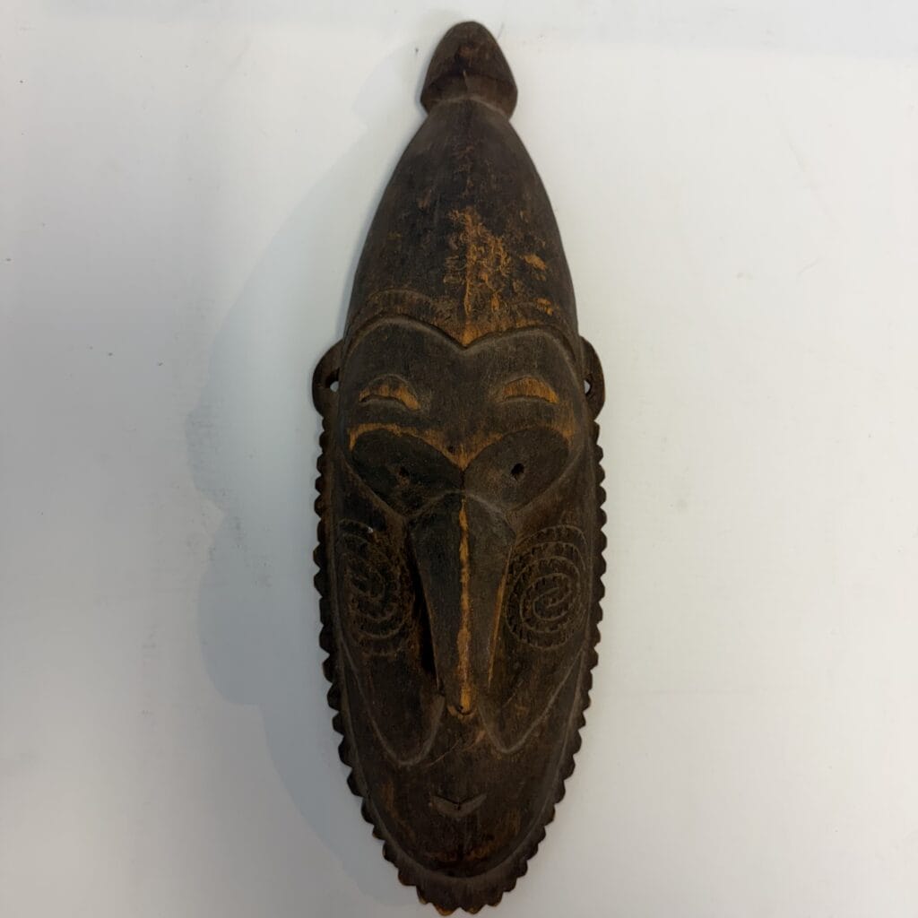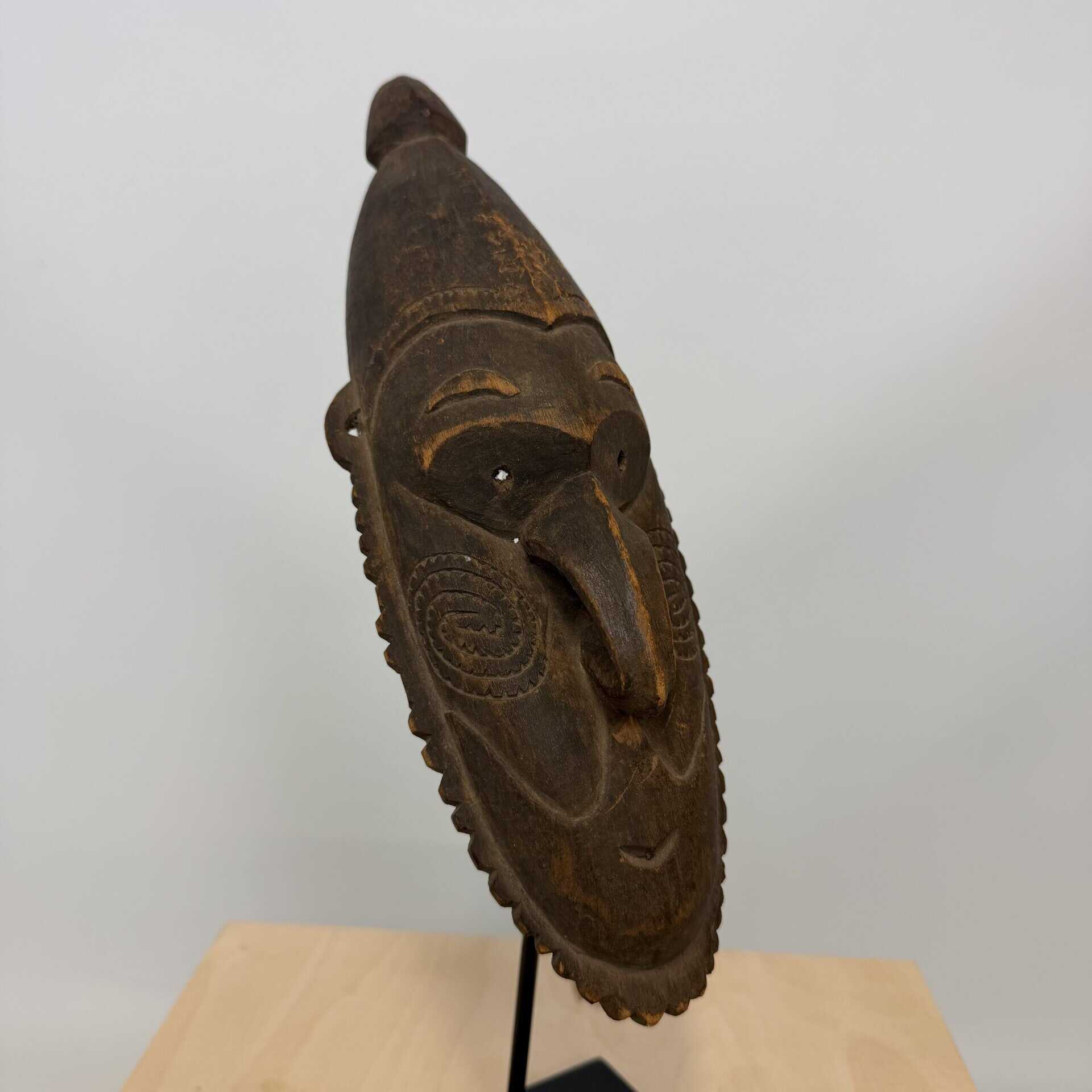 This mask an essential part of male religious life and initiation rites among the peoples along the Sepik River in New Guinea. They represent powerful spirits or ancestral figures, and are sometimes worn during ceremonies or displayed in a ‘Haus Tambaran’ (men’s house) to attract these spirits.