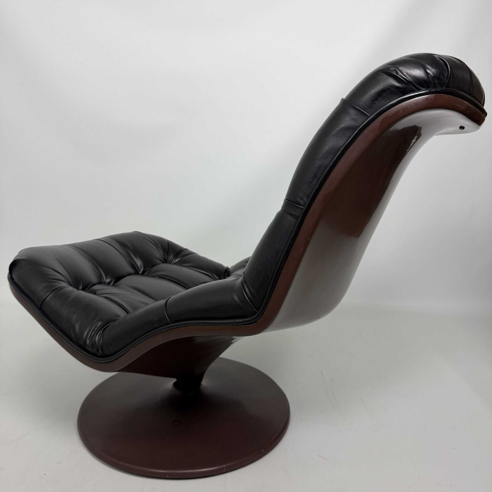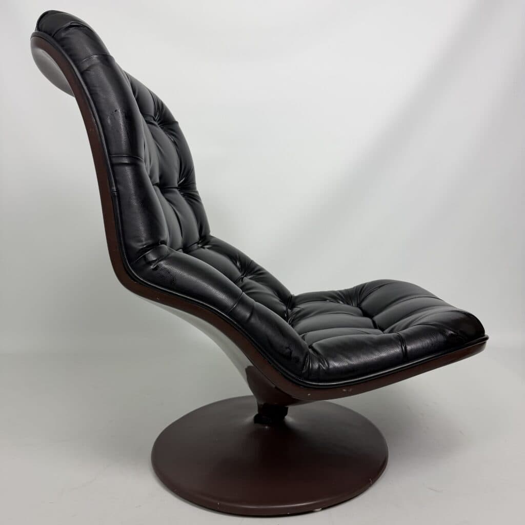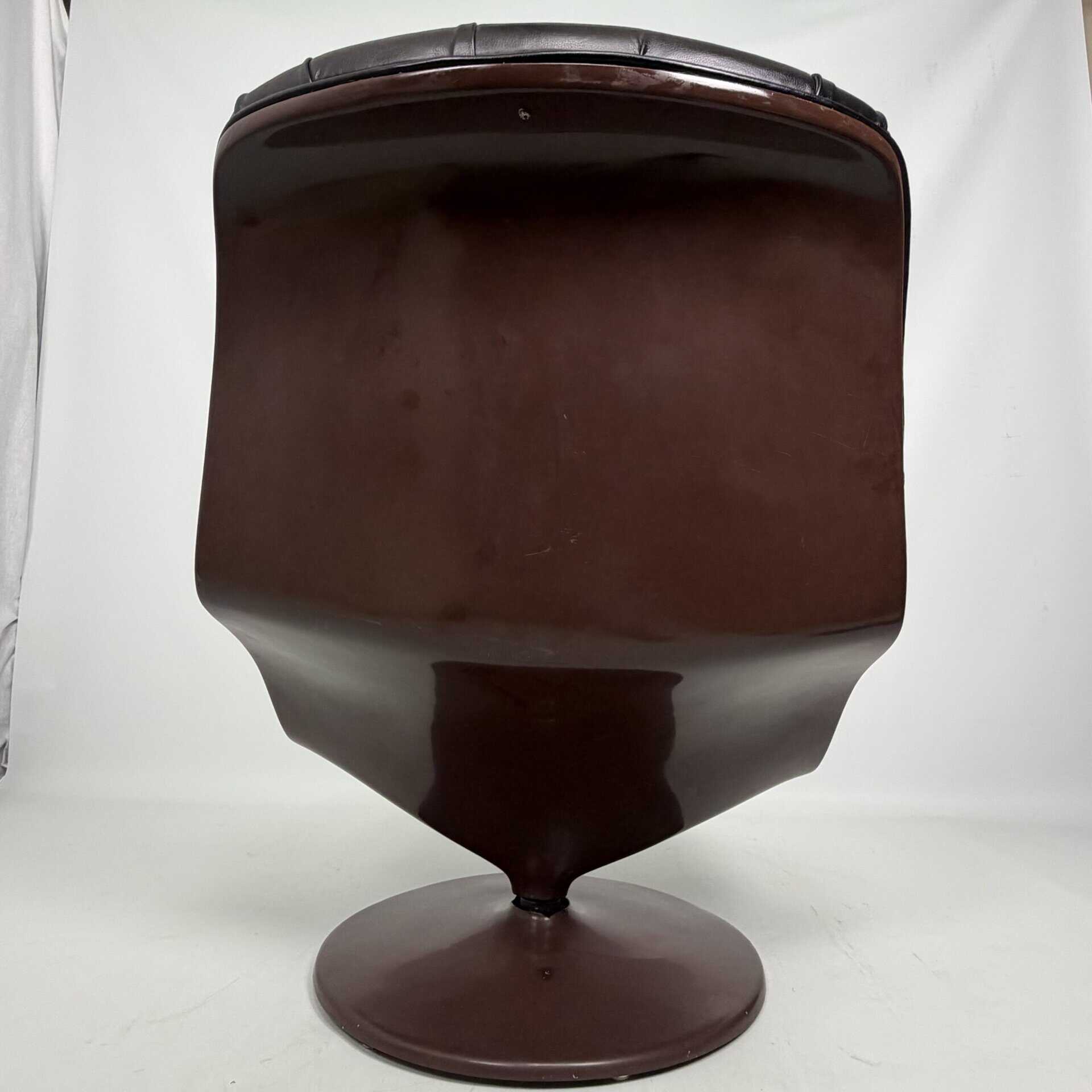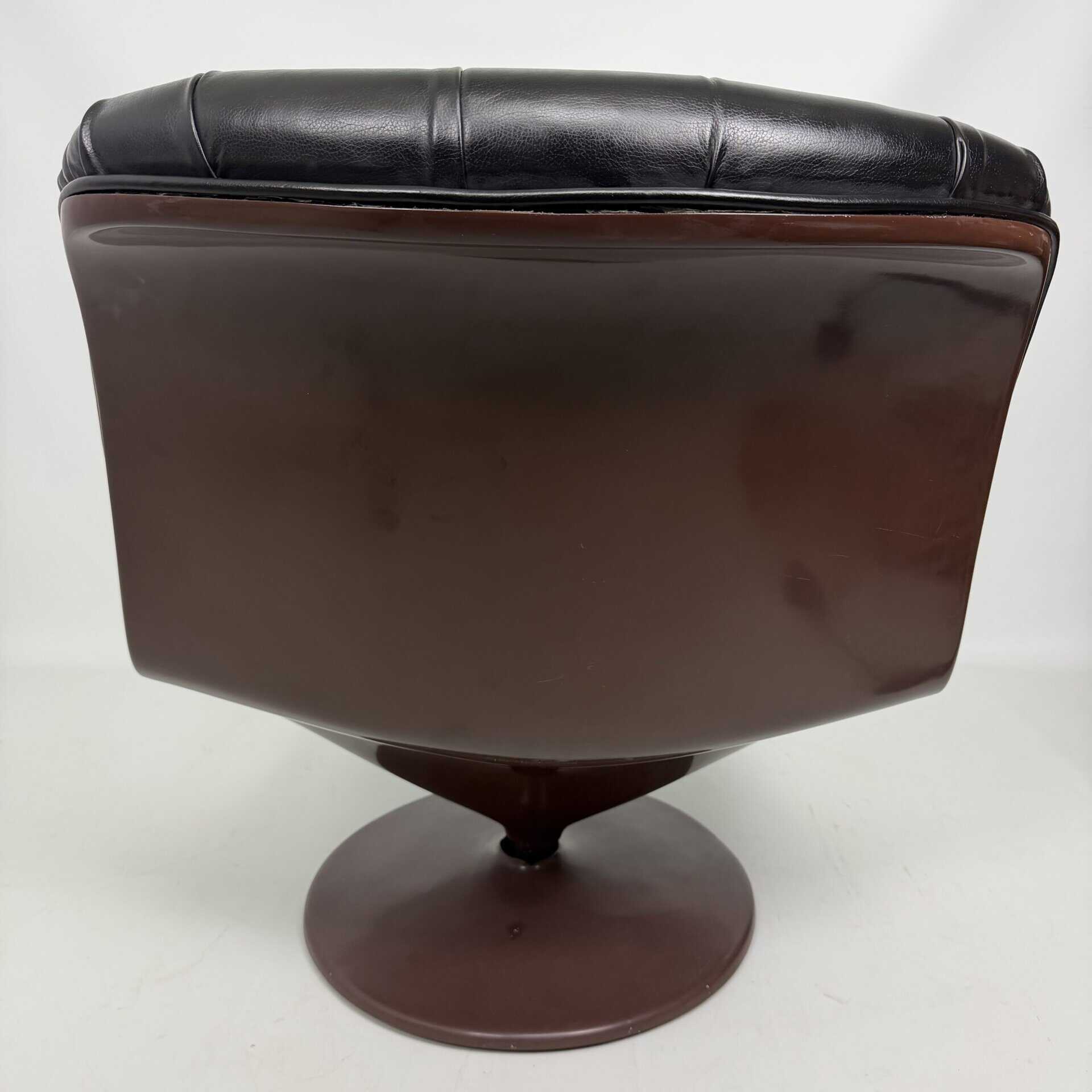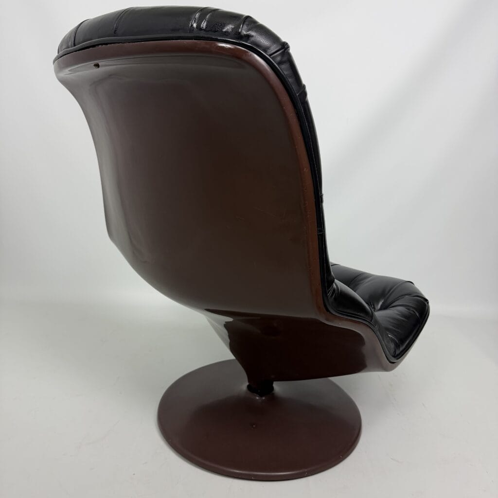 Chocolate brown fibreglass base and black leather upholstery