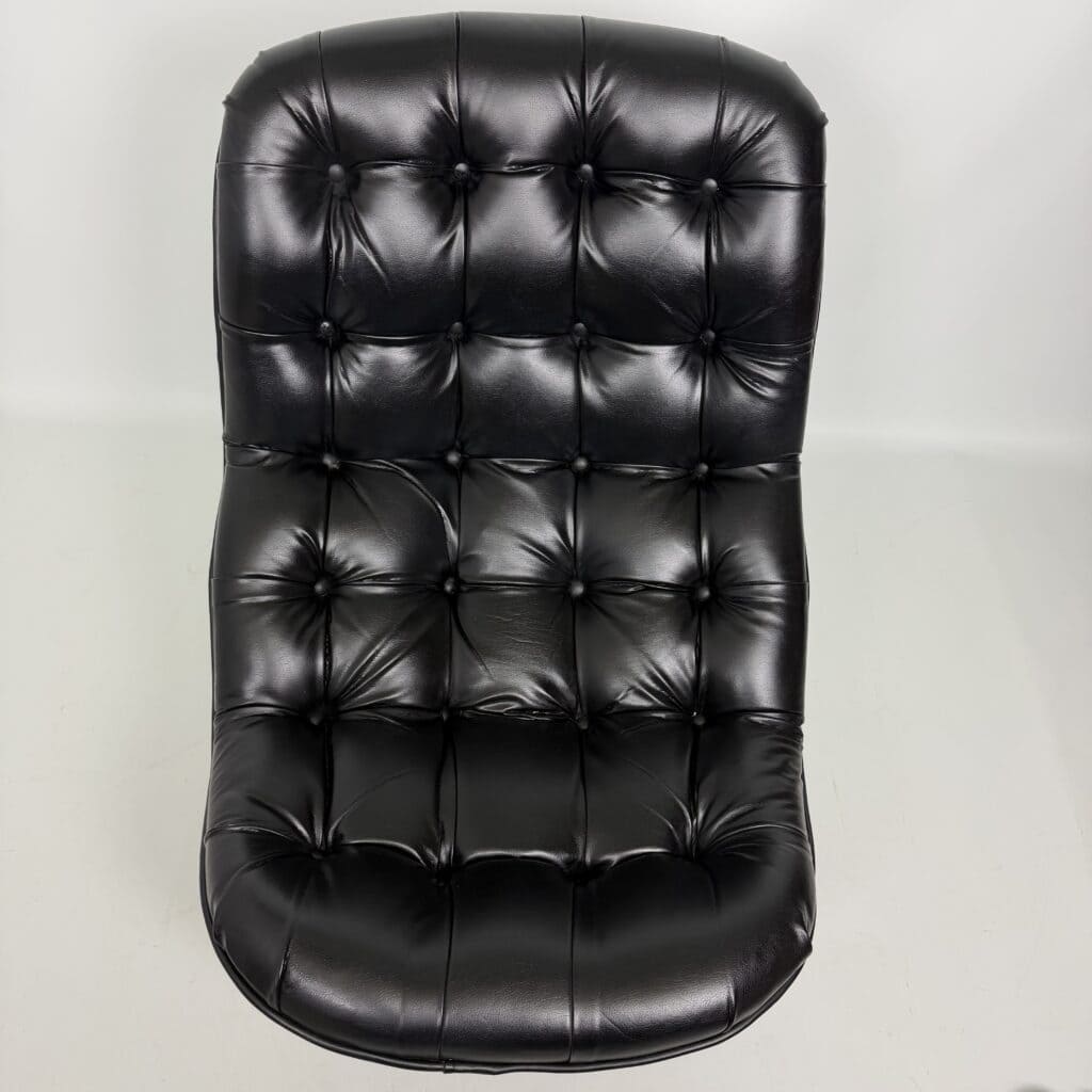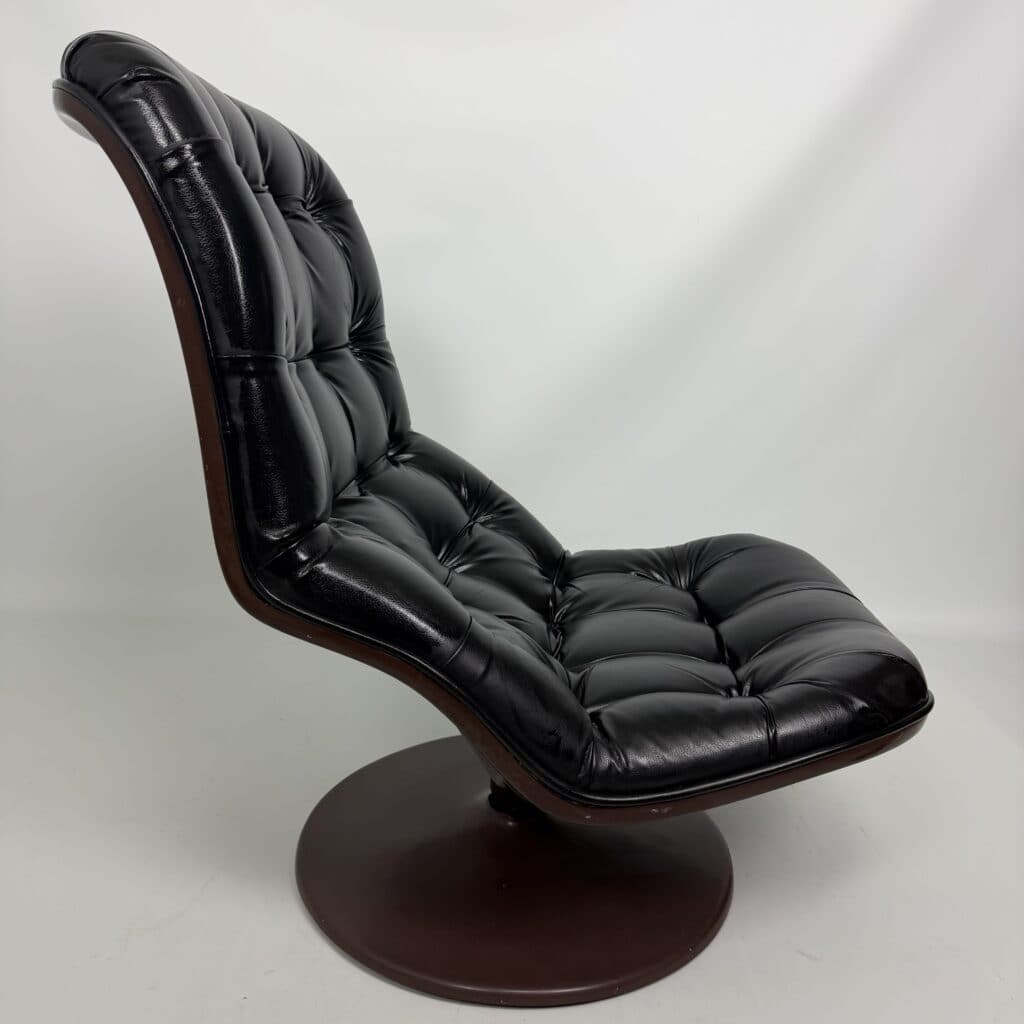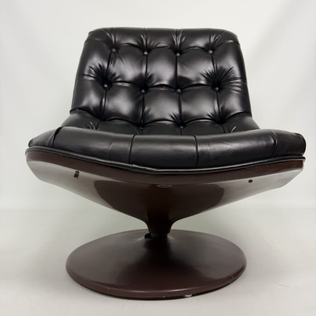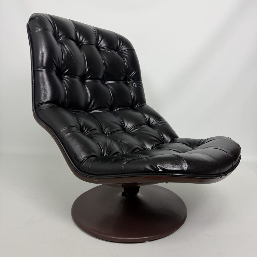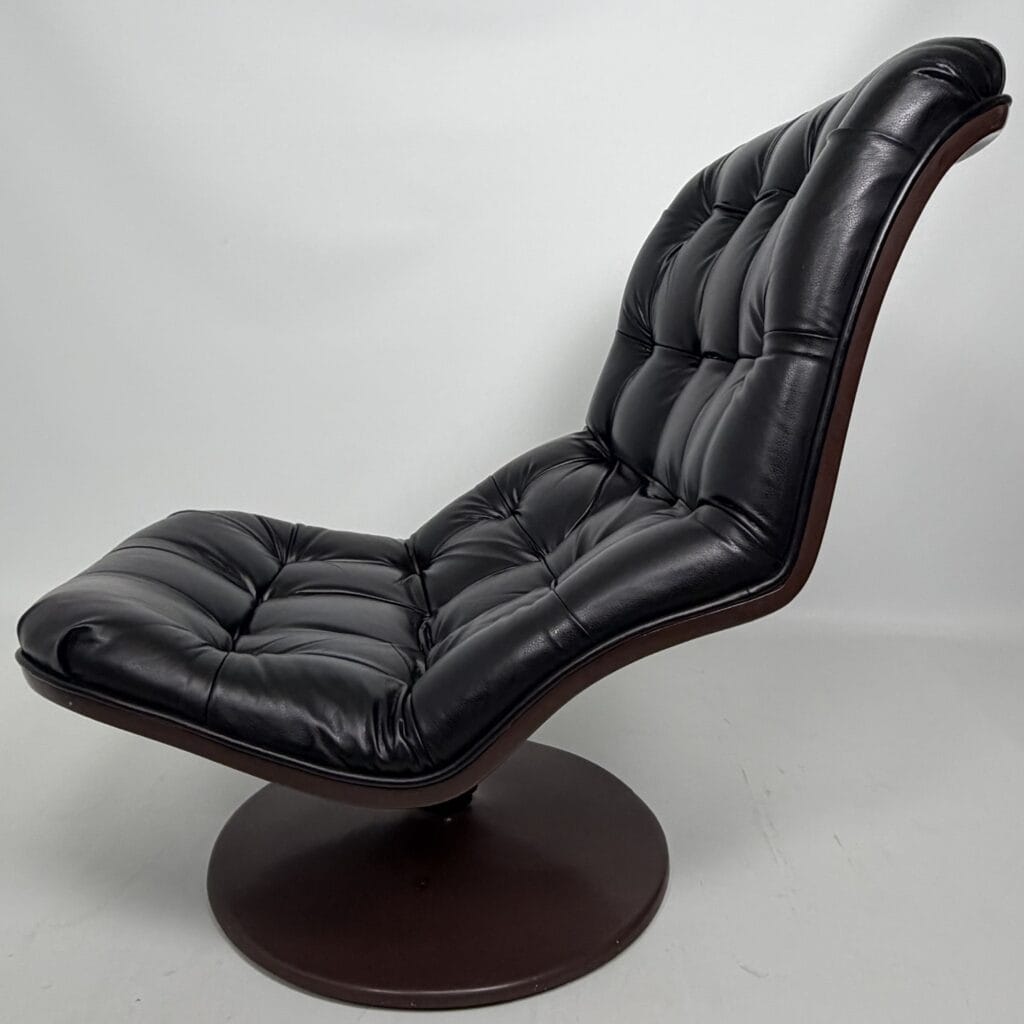 Chocolate brown fibreglass base and black leather upholstery