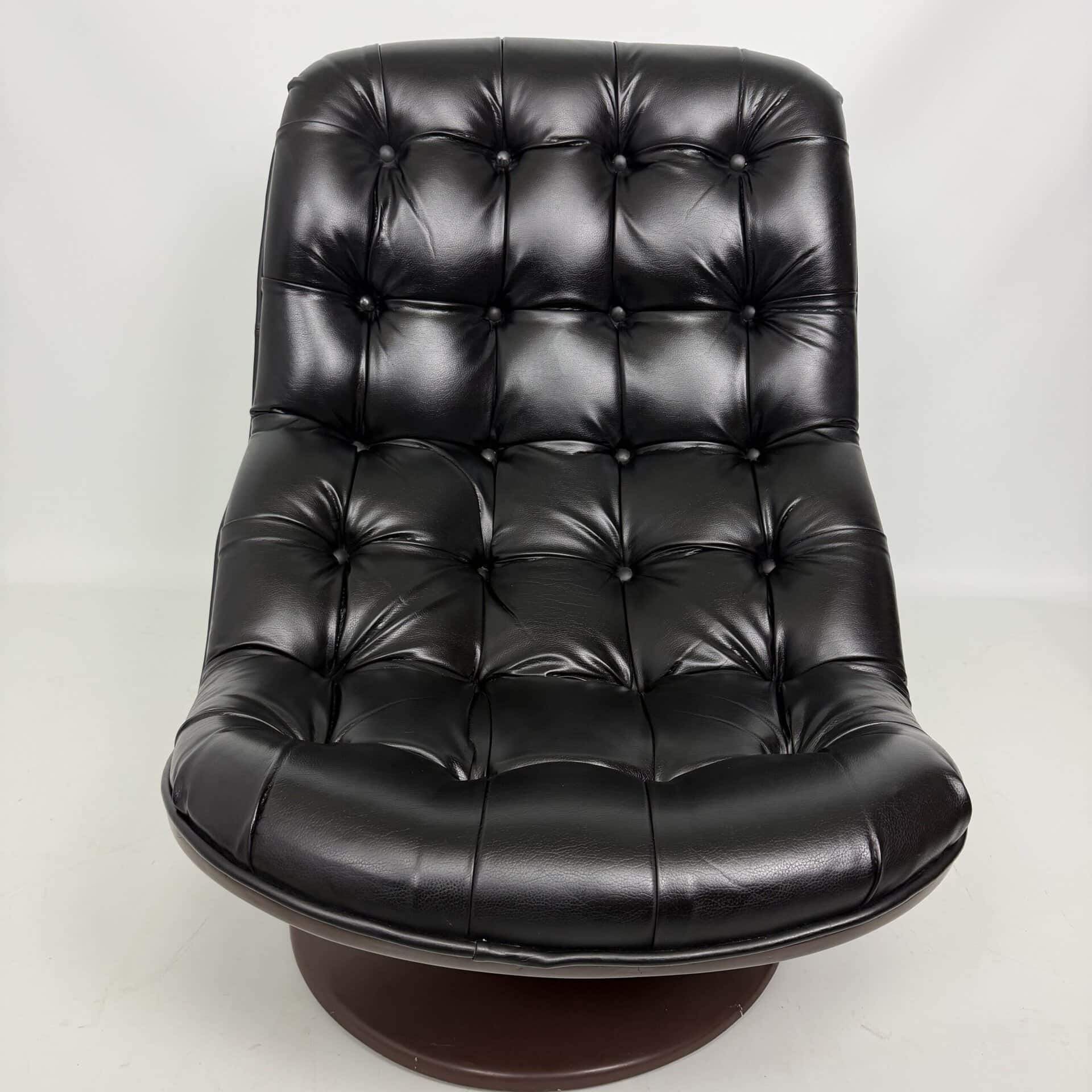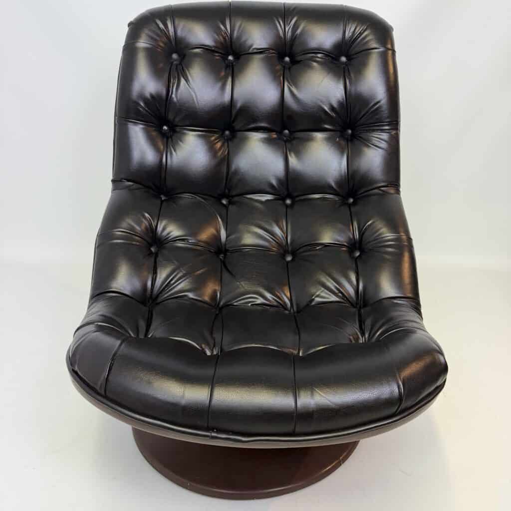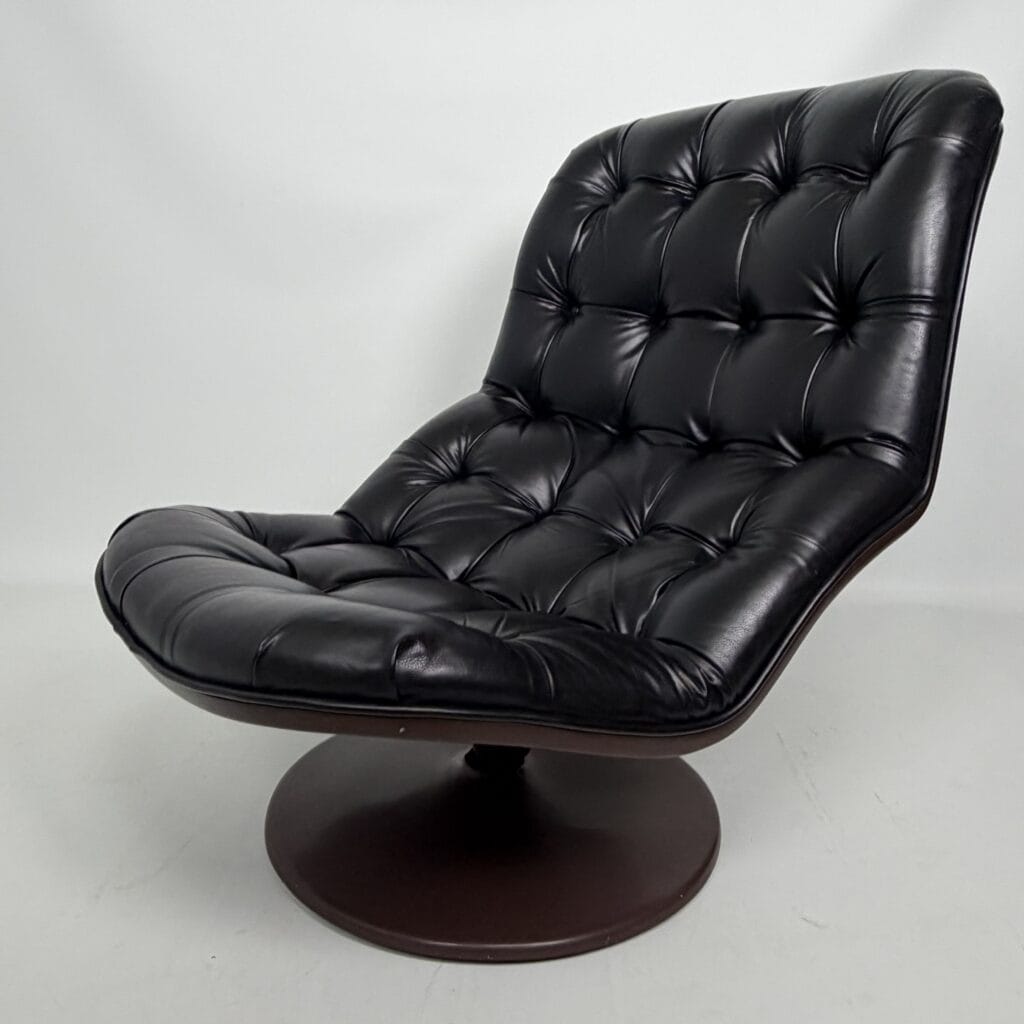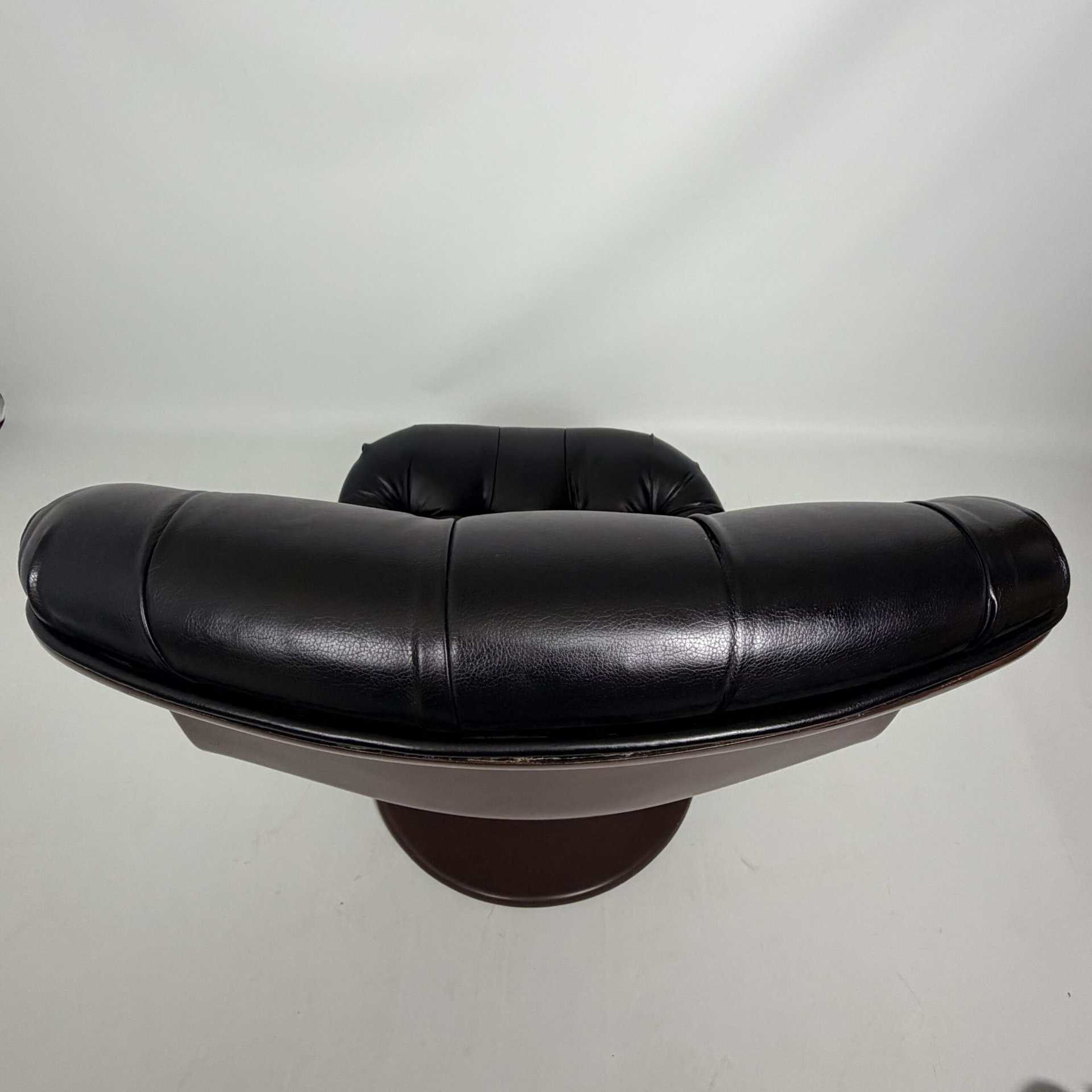 Chocolate brown fibreglass base and black leather upholstery