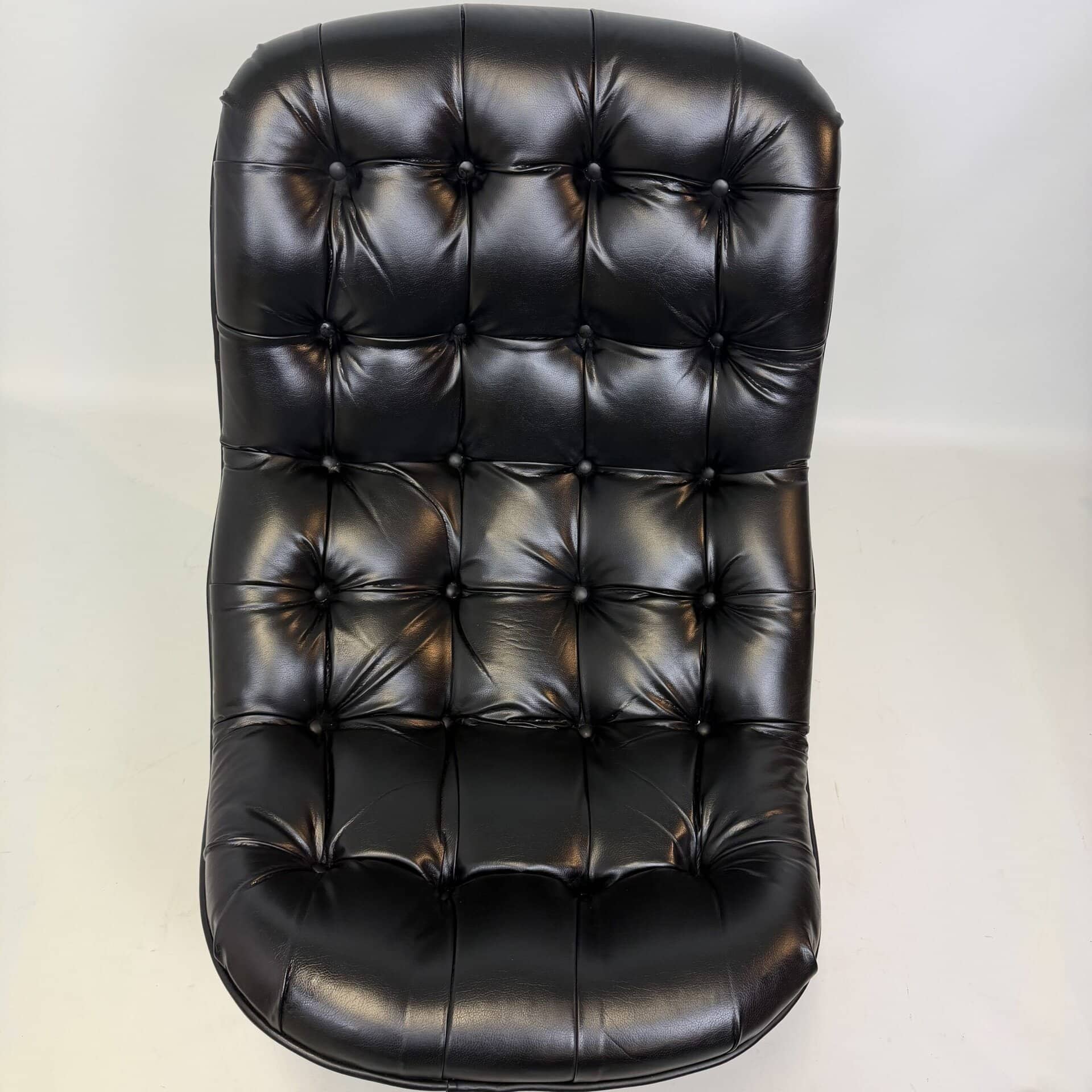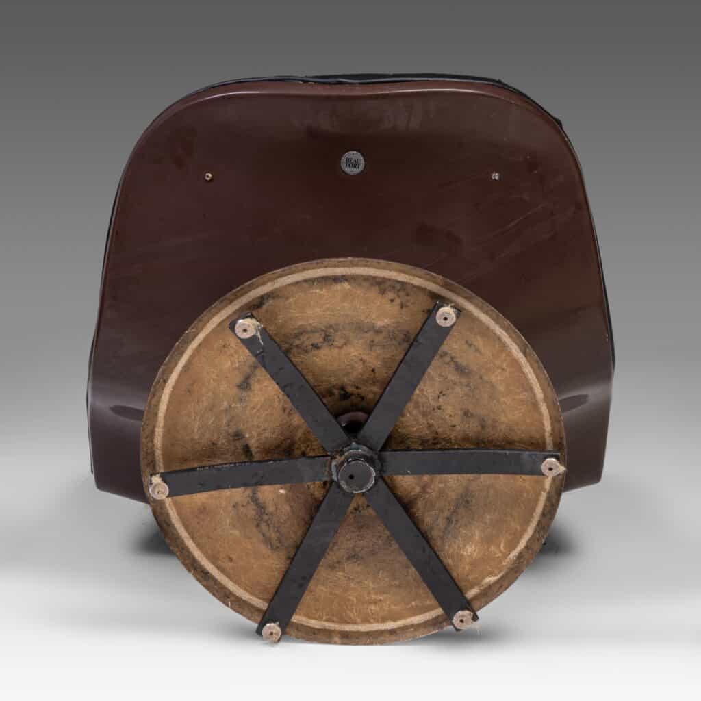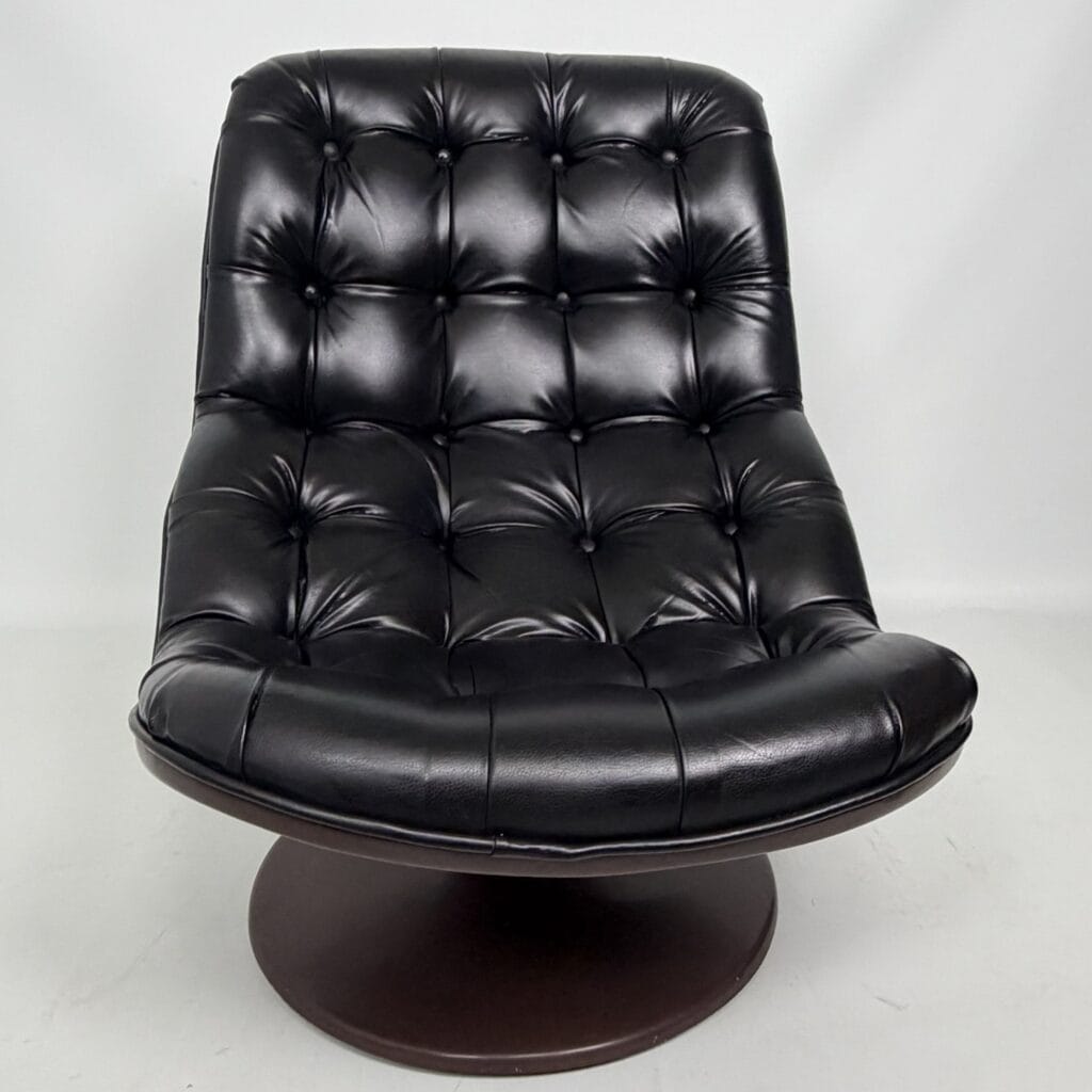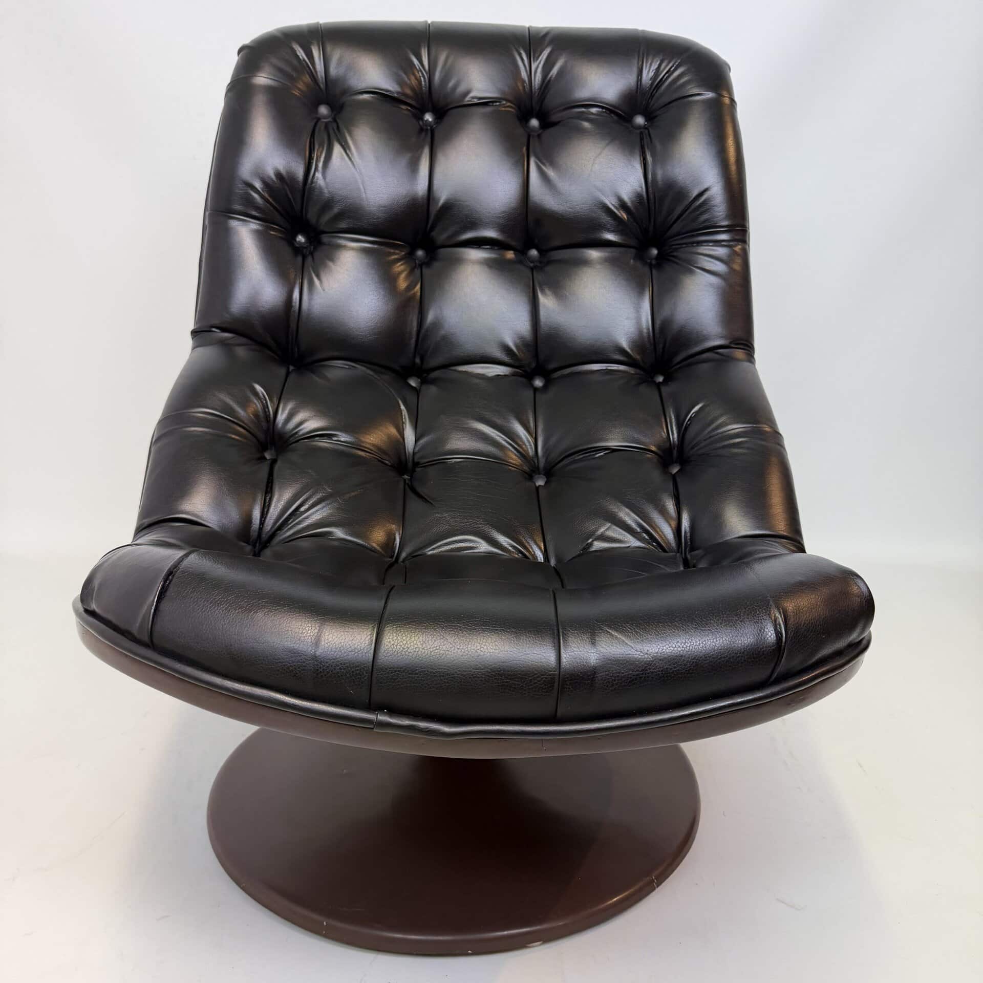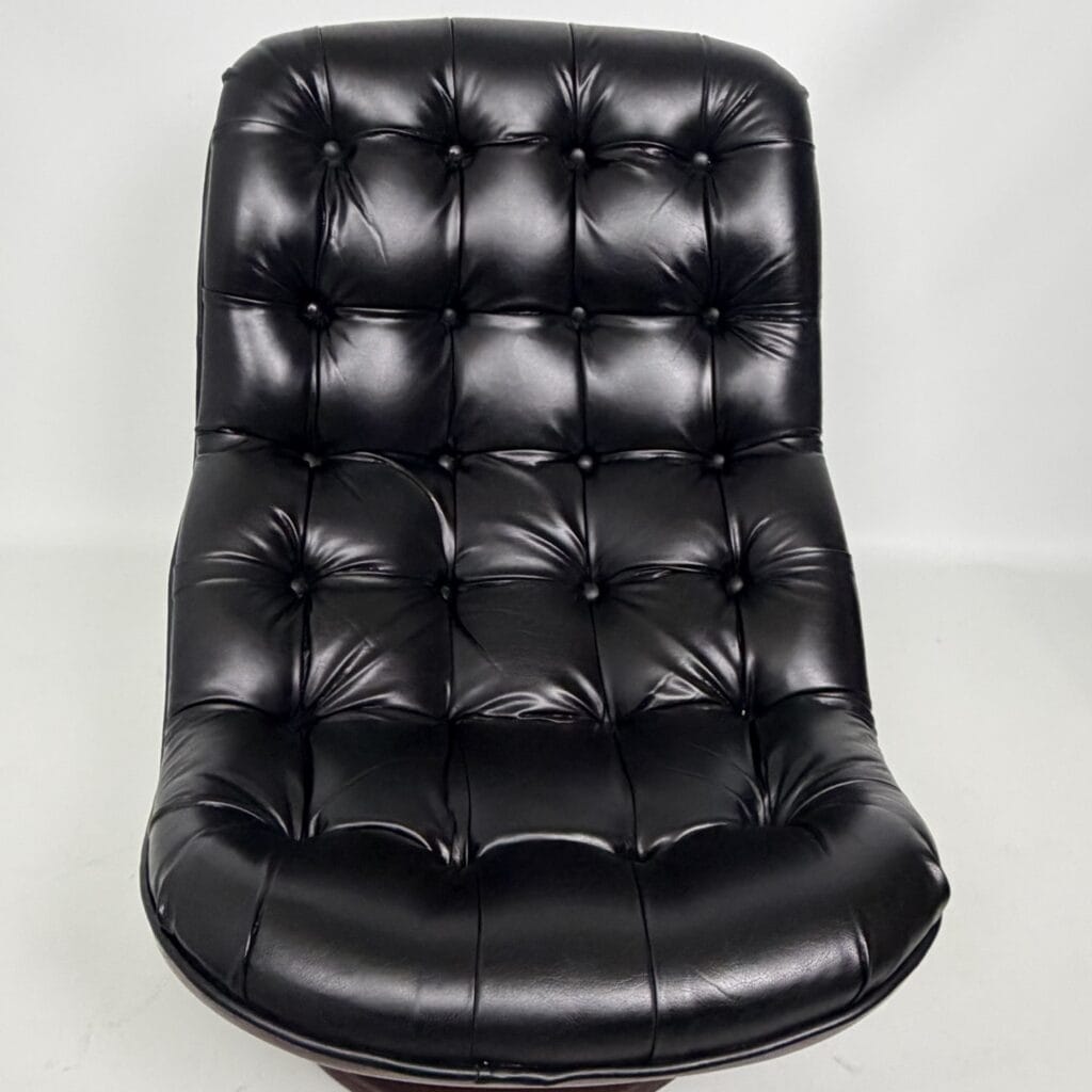Chocolate brown fibreglass base and black leather upholstery