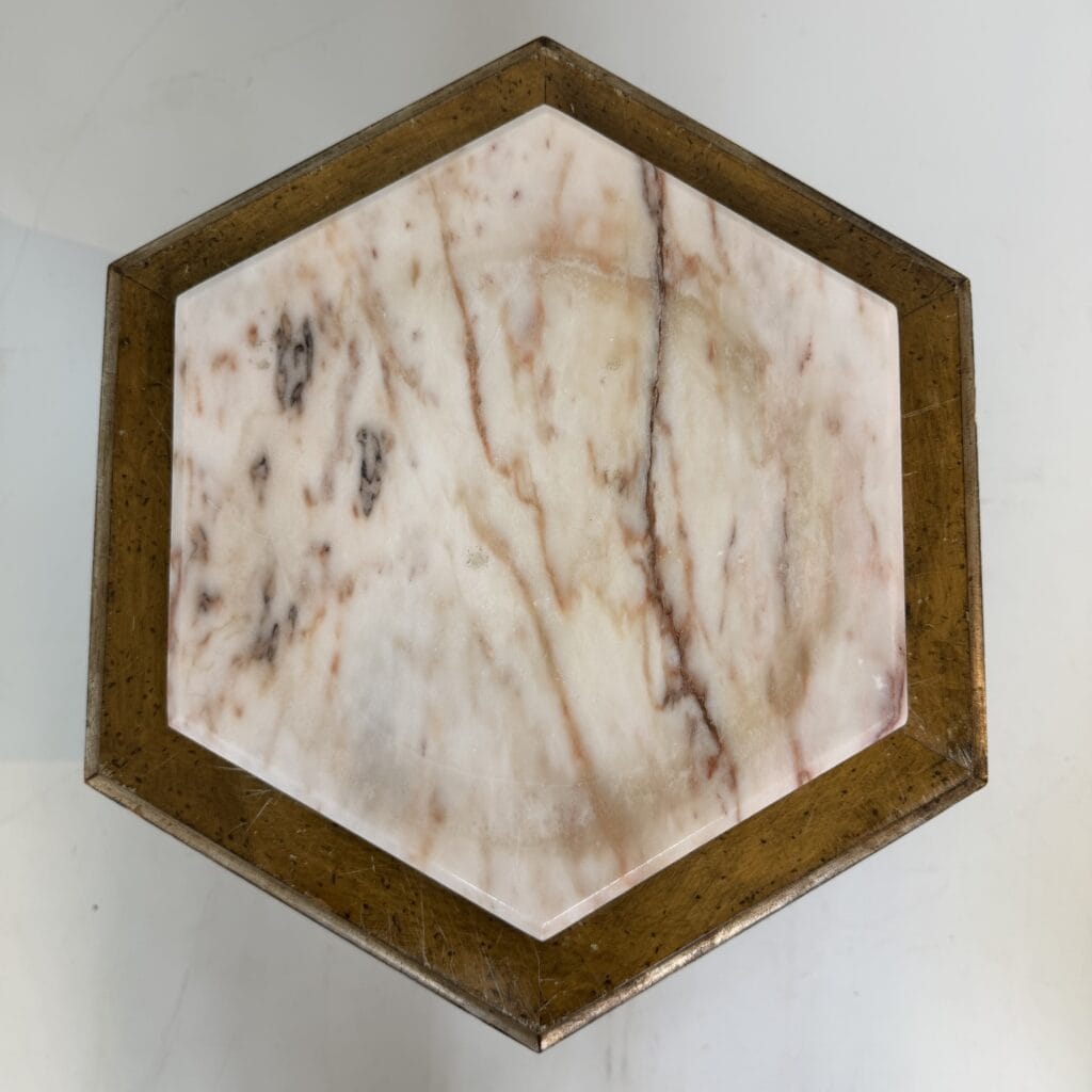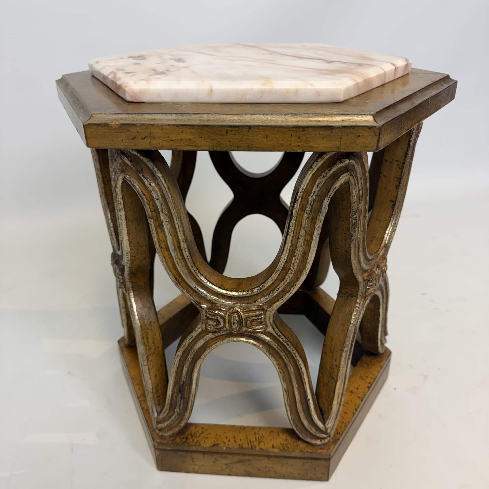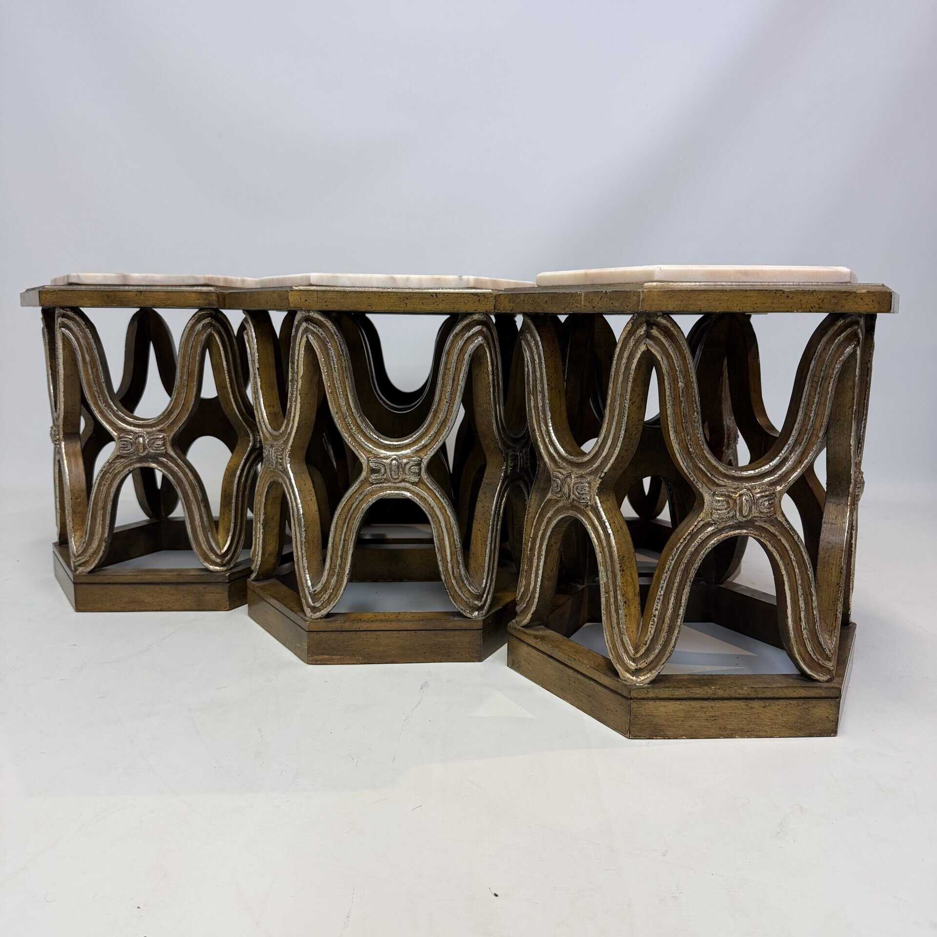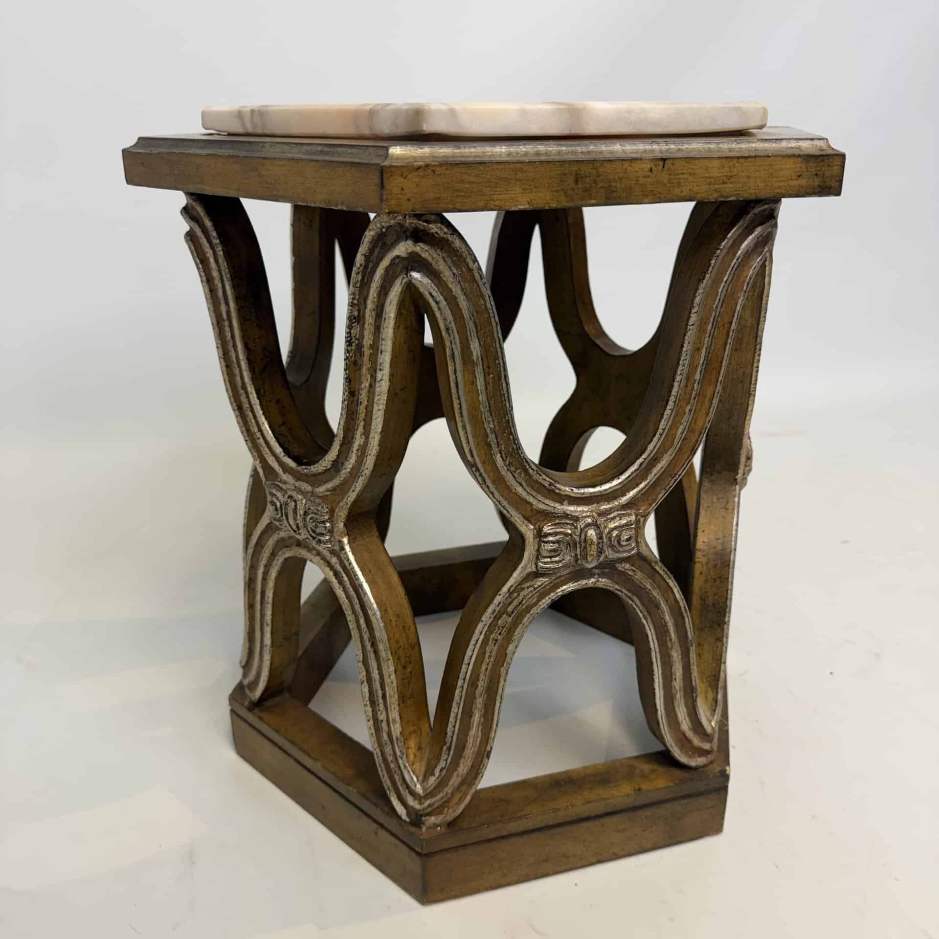 Carved giltwood side tables with marble top