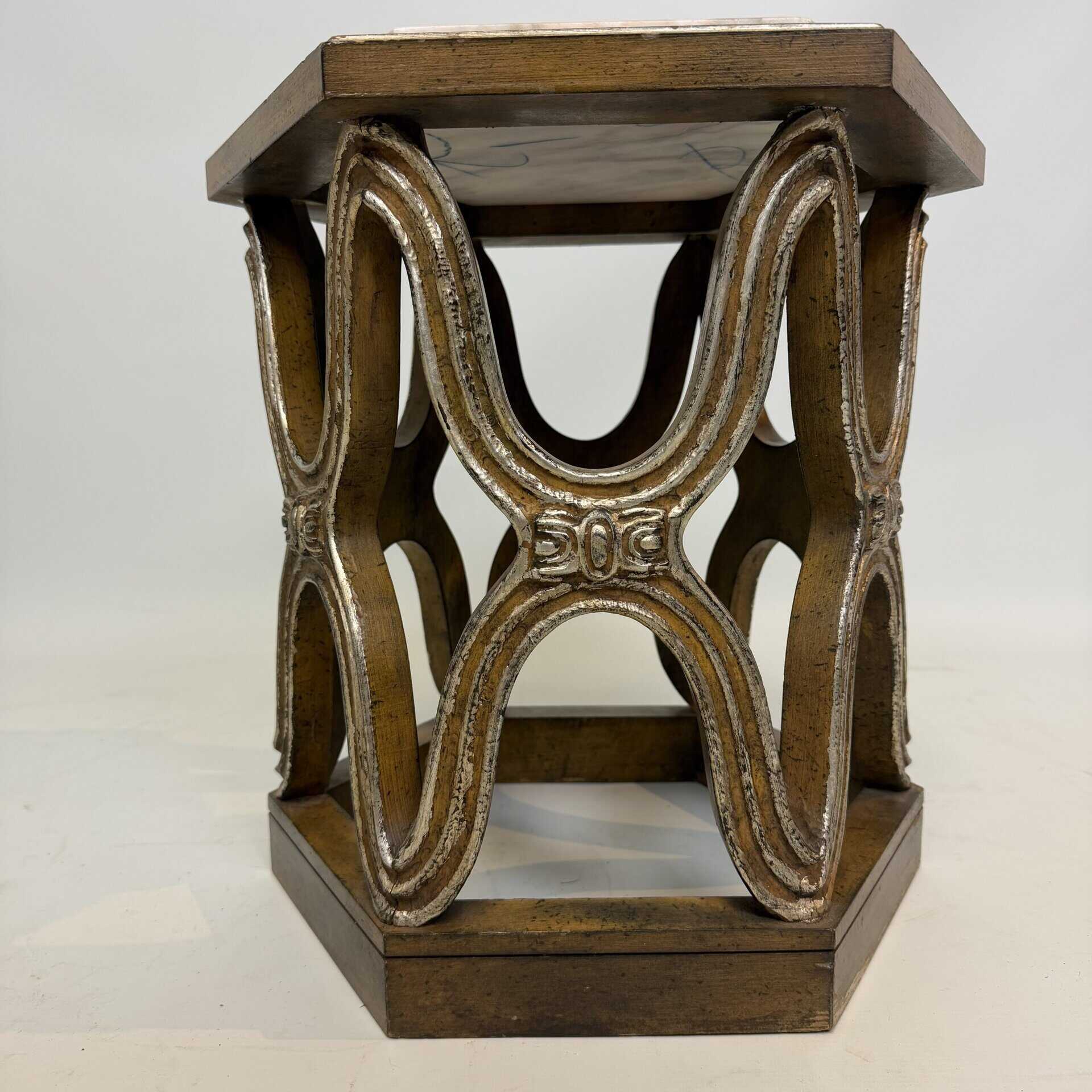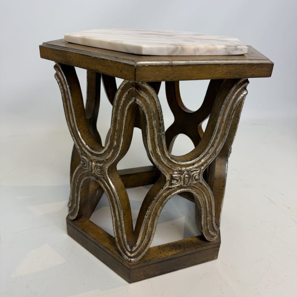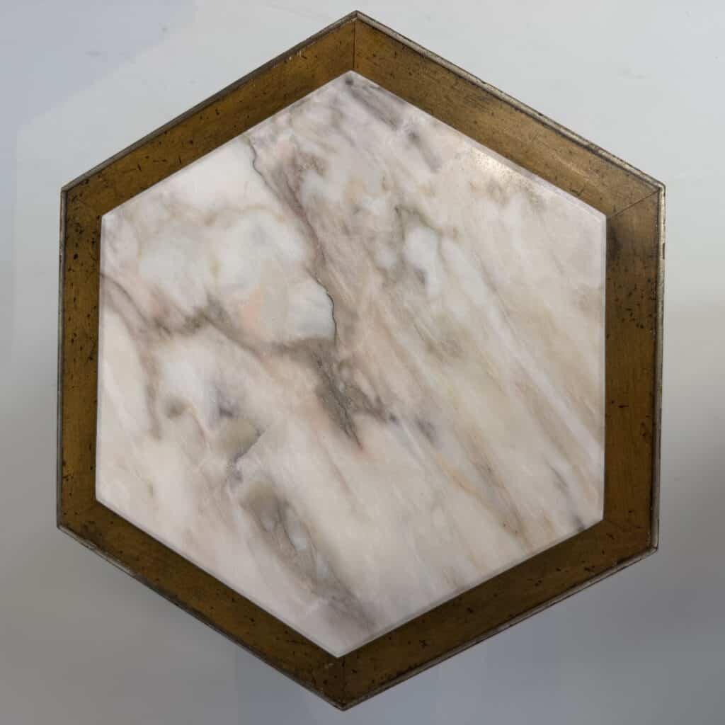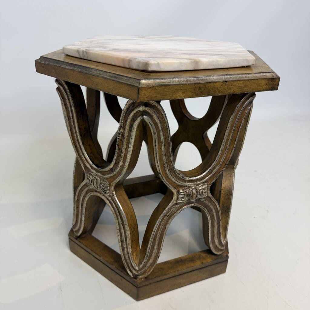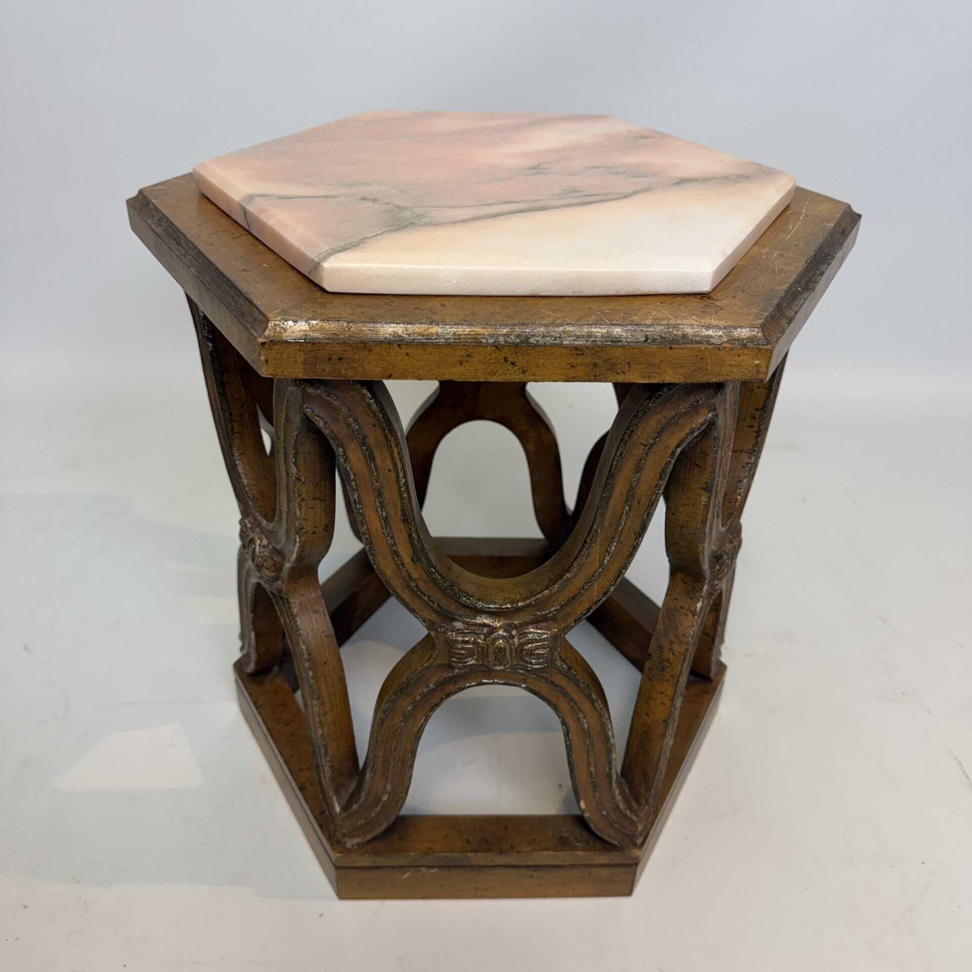 Carved giltwood side tables with marble top