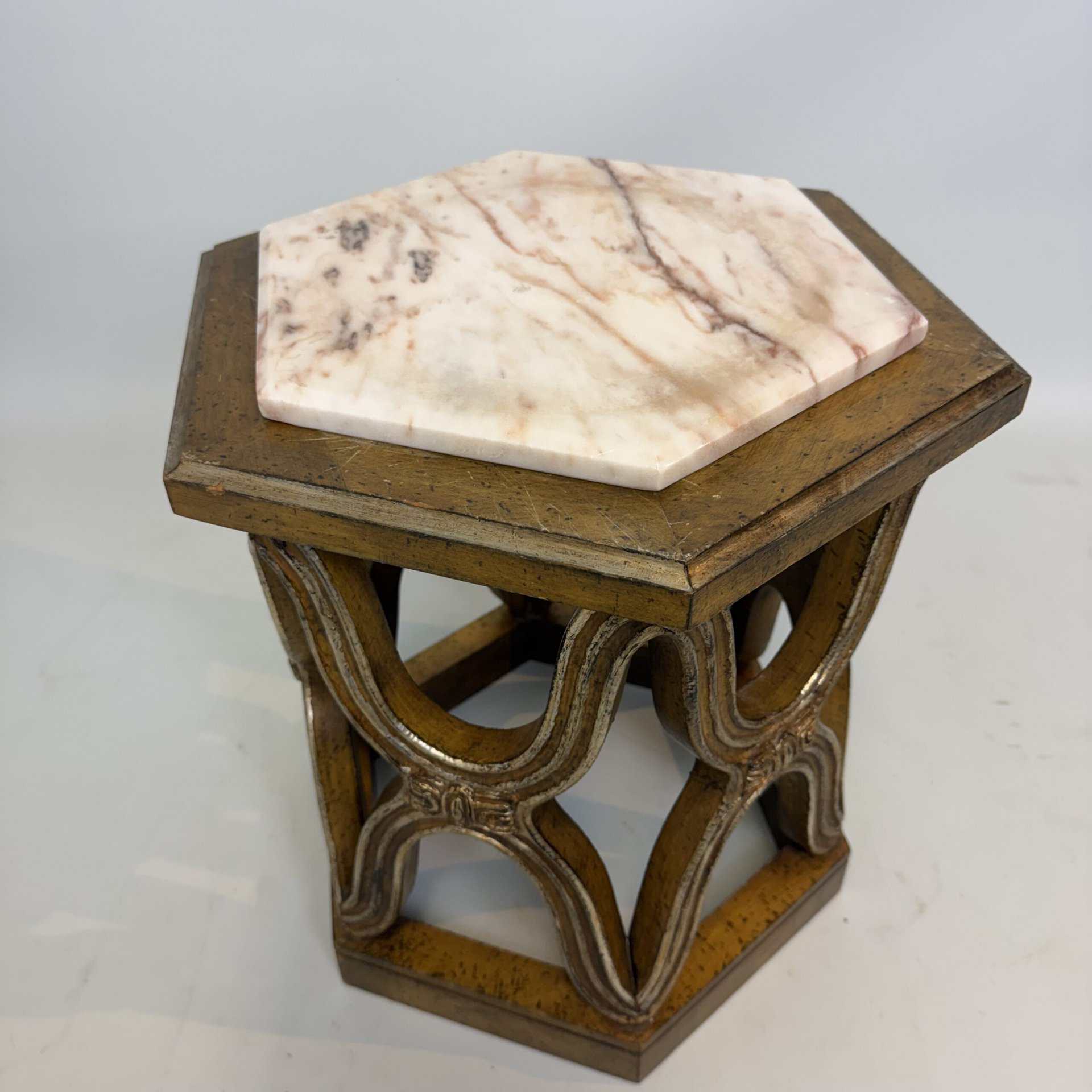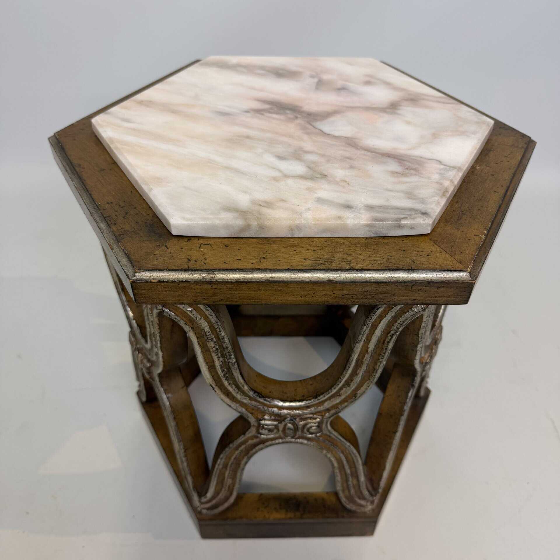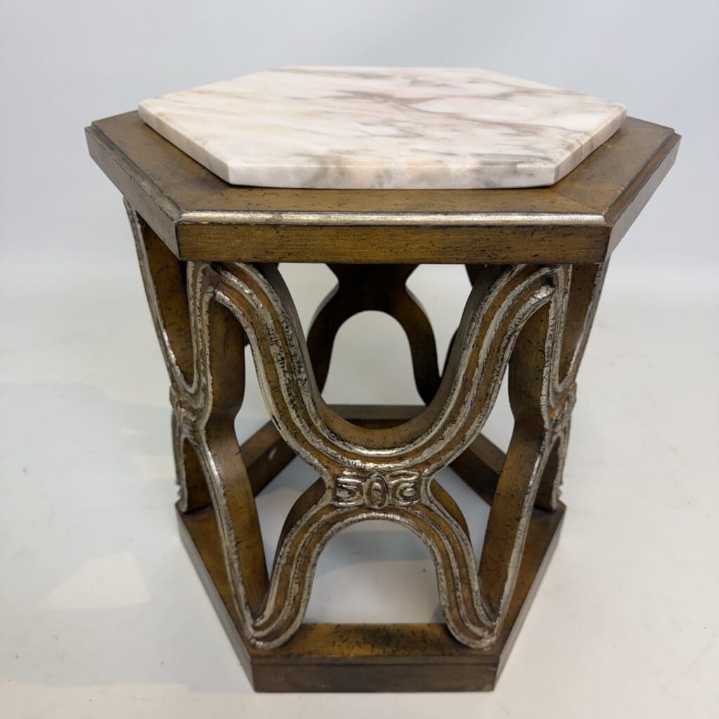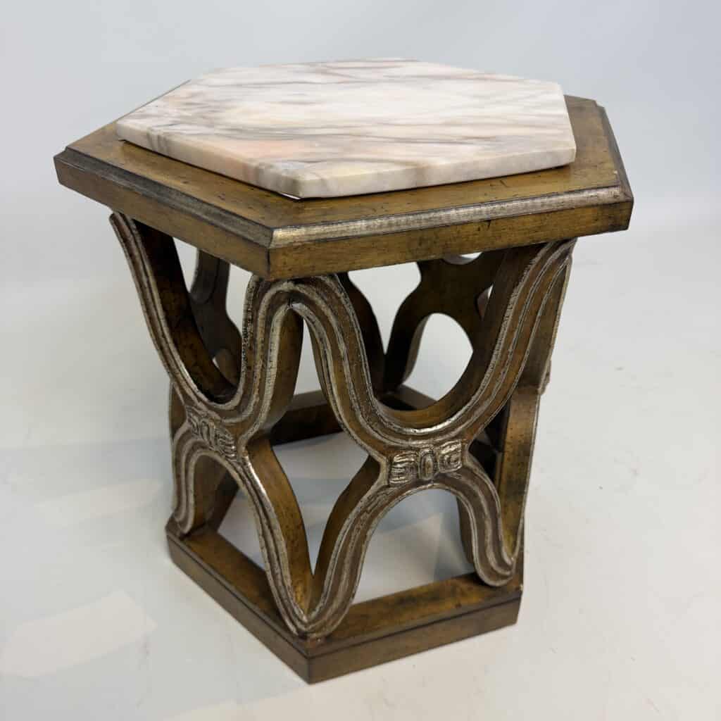 Carved giltwood side tables with marble top